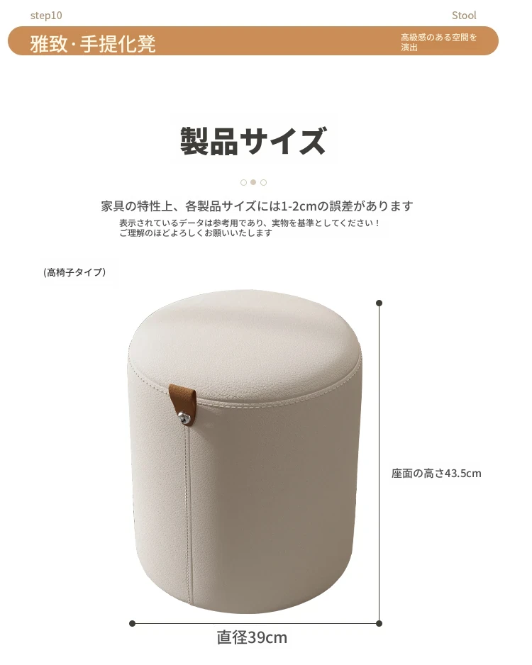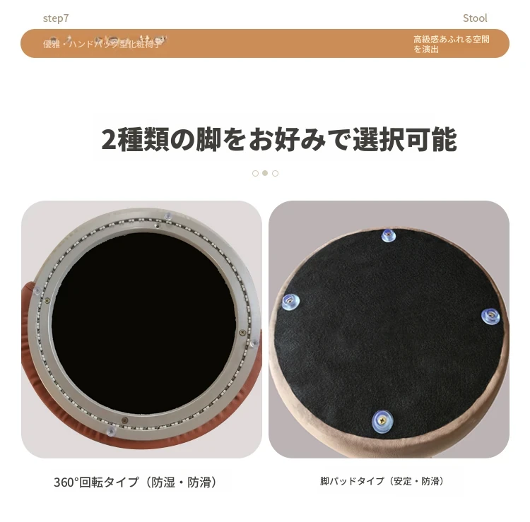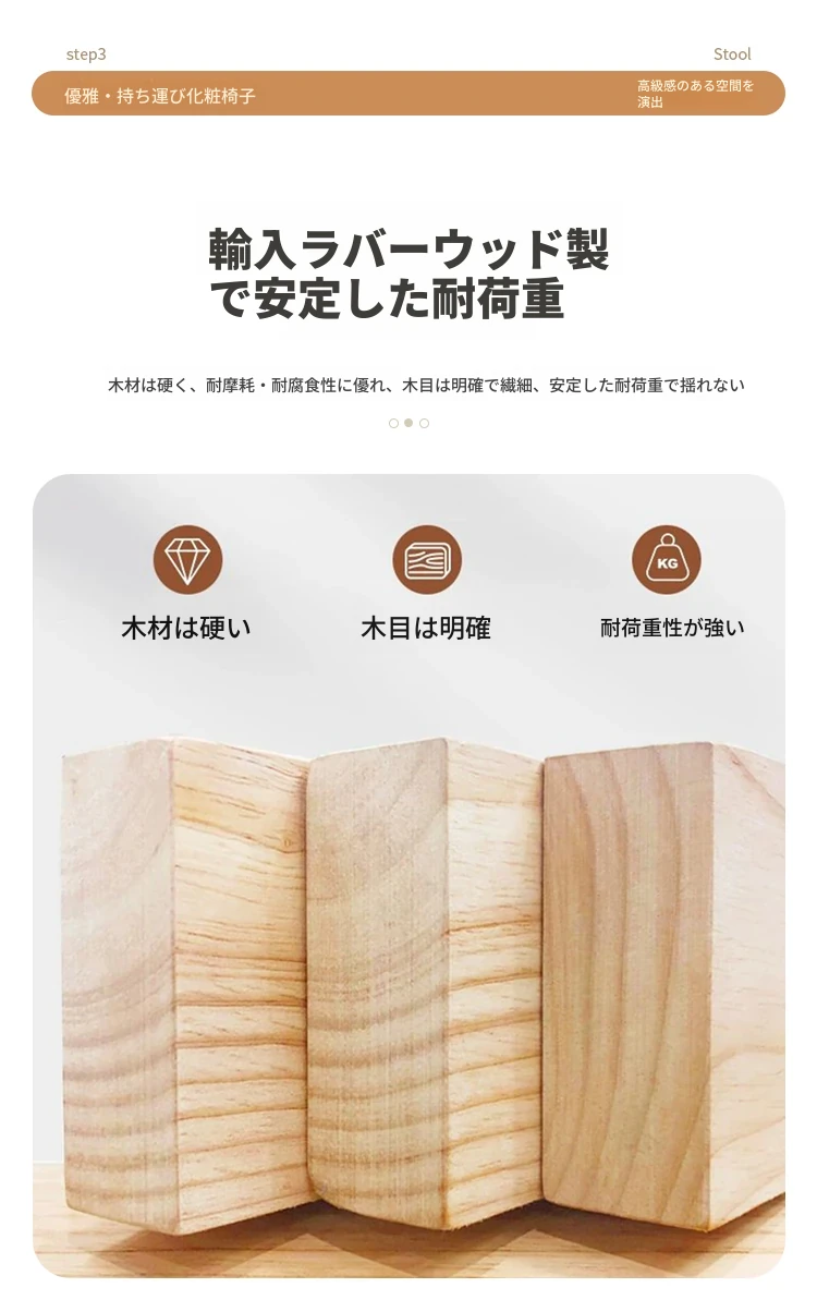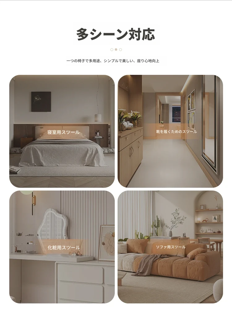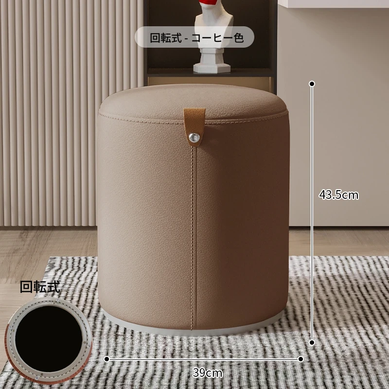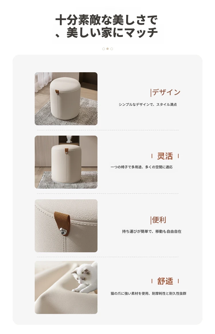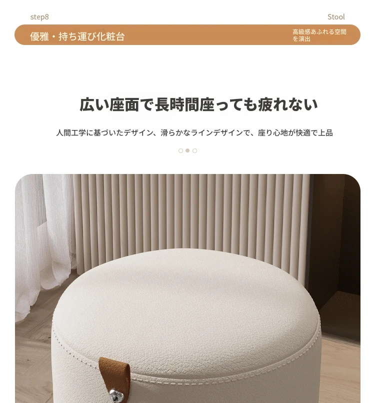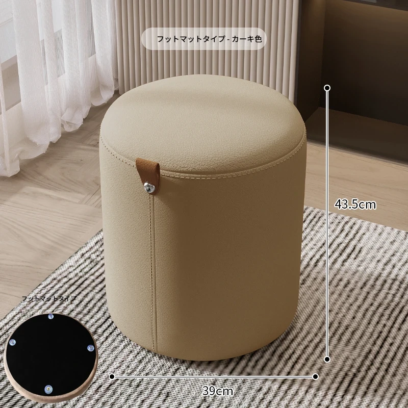 三夢クリーム風化粧台椅子|高級感溢れる2025年新作|女性の寝室にぴったり!|天然木製の丸型デザイン|靴を履く時にも最適な化粧椅子!