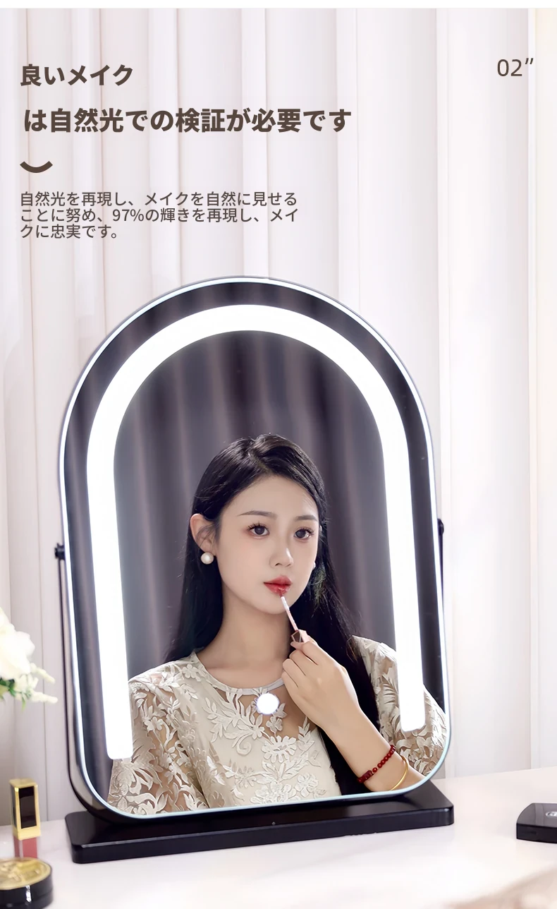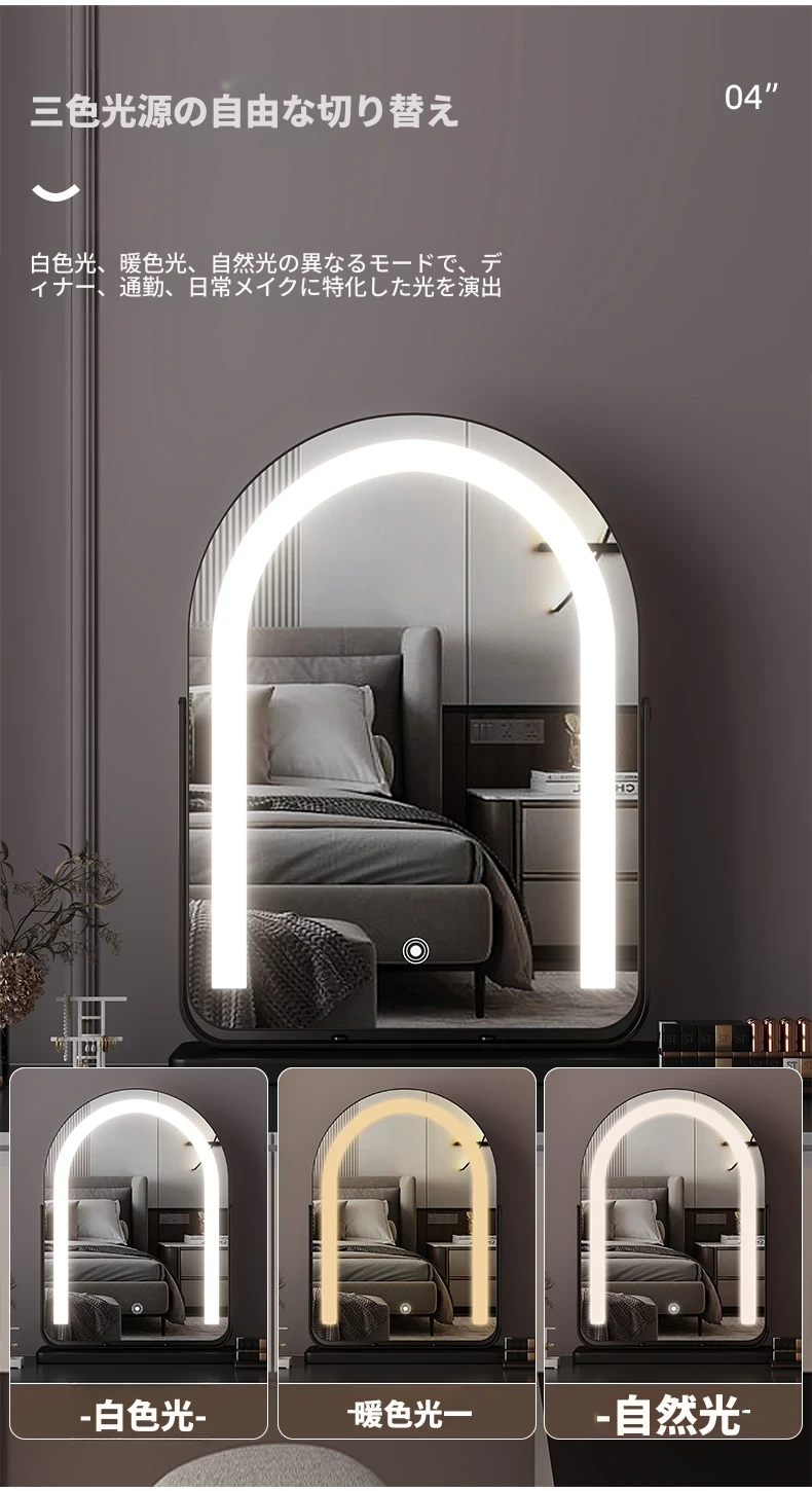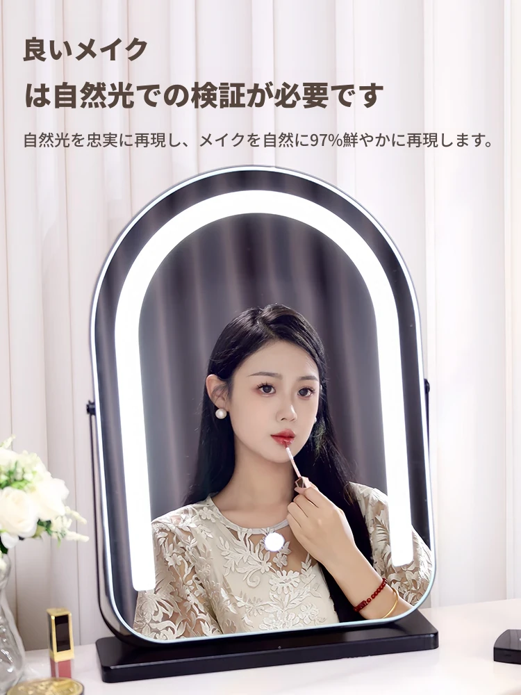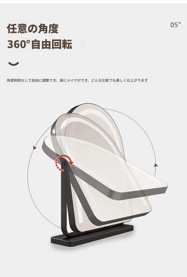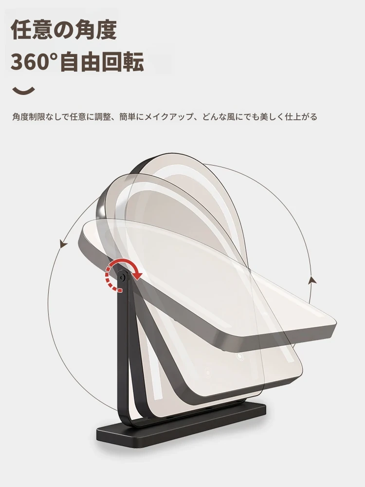 回転式化粧鏡デスクトップライト付き、ラグジュアリーなLEDスマートミラー - 高級感あふれる主寝室のドレッシングテーブル用鏡!美しさを引き立てる完璧なアイテム!