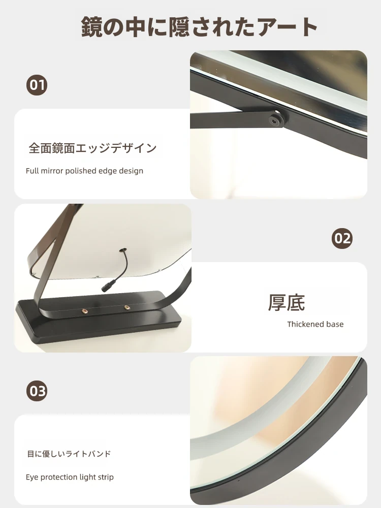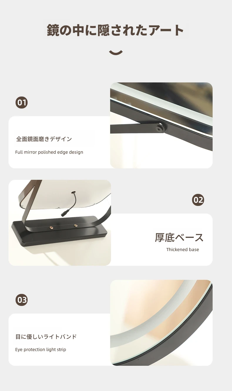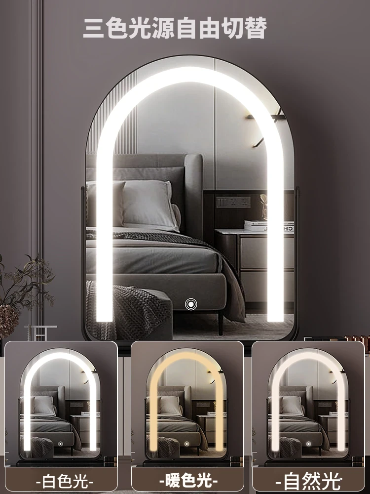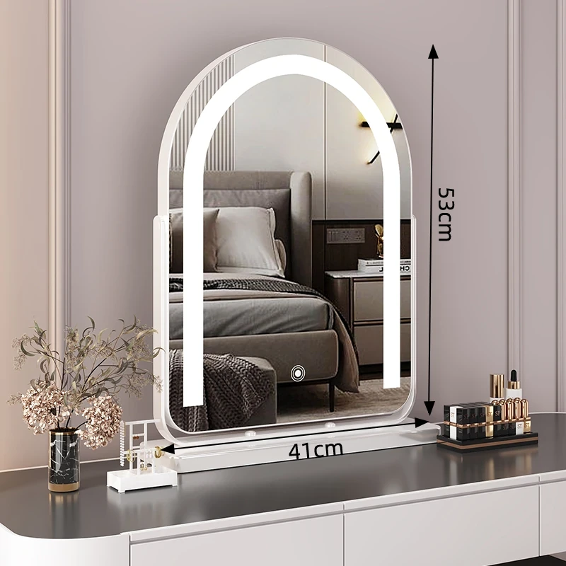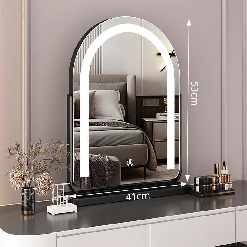 回転式化粧鏡デスクトップライト付き、ラグジュアリーなLEDスマートミラー - 高級感あふれる主寝室のドレッシングテーブル用鏡!美しさを引き立てる完璧なアイテム!