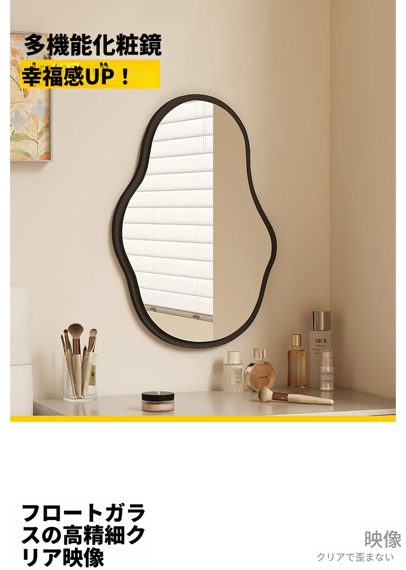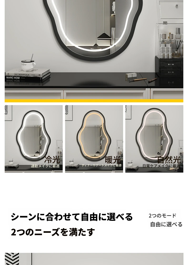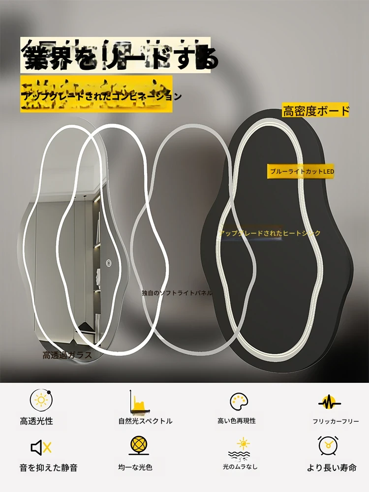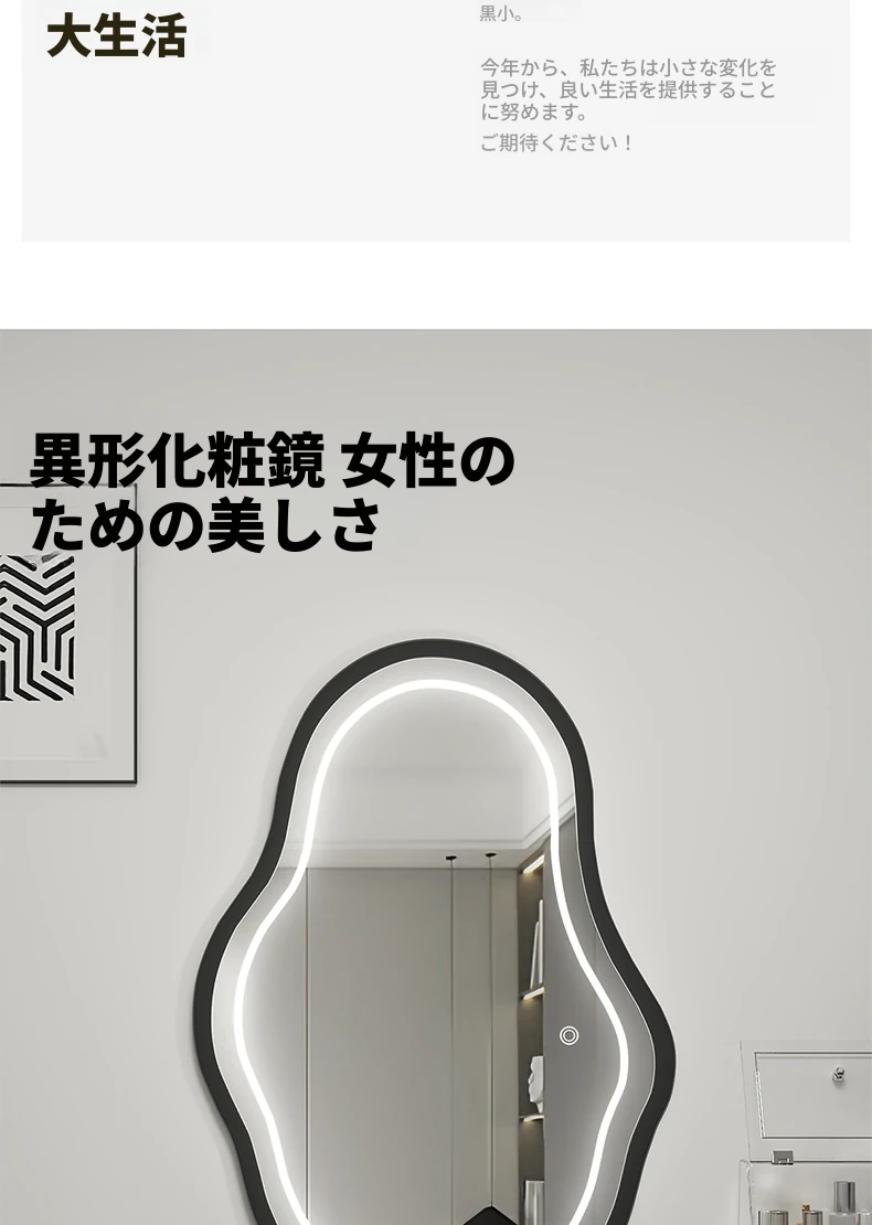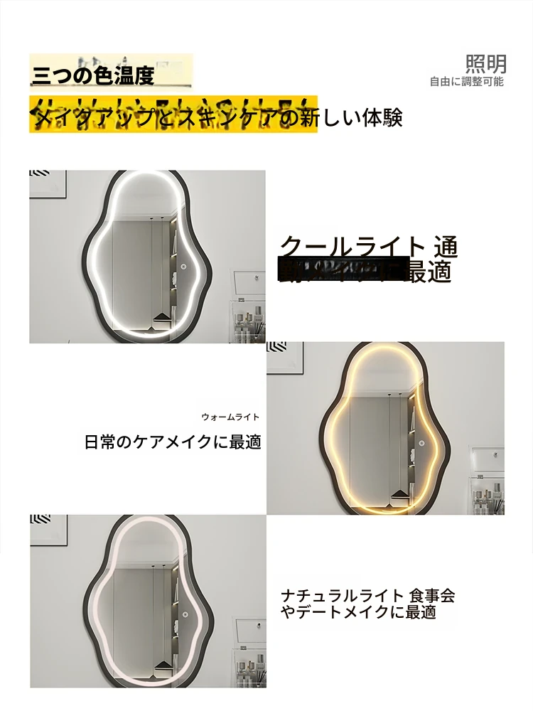 軽奢感あふれる高級感のあるドレッシングテーブル用壁掛けスマートLED化粧鏡!ユニークな形状でおしゃれな照明付き、主寝室にぴったりのアイテムです。自分だけの特別な空間を演出しましょう!