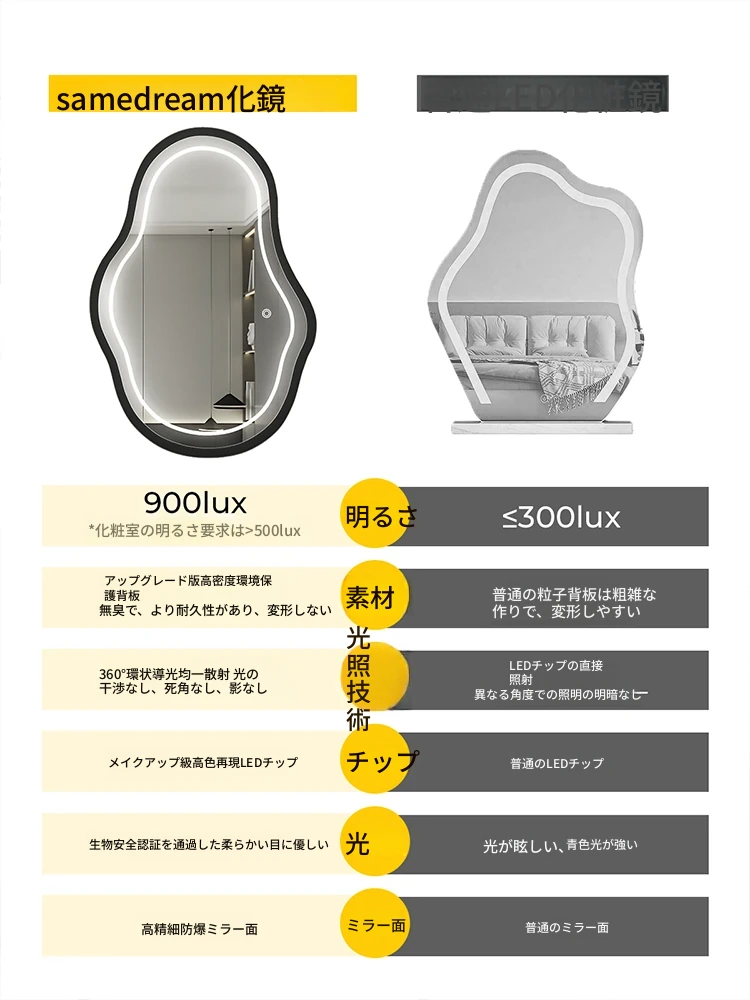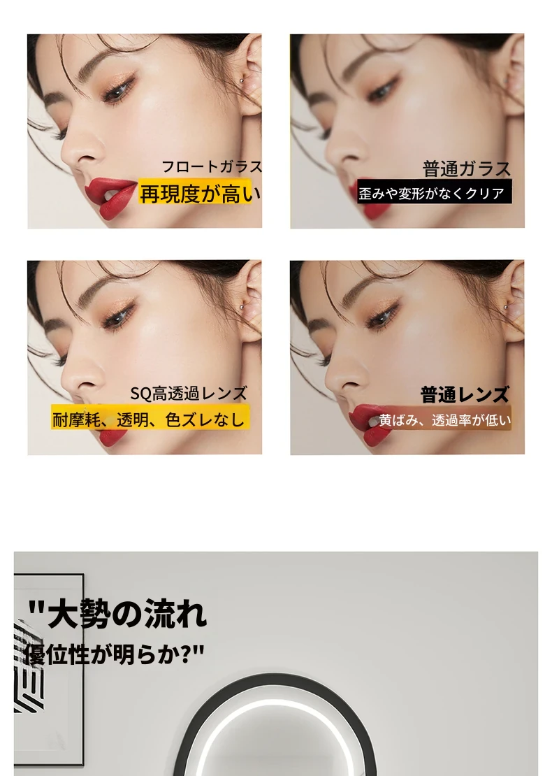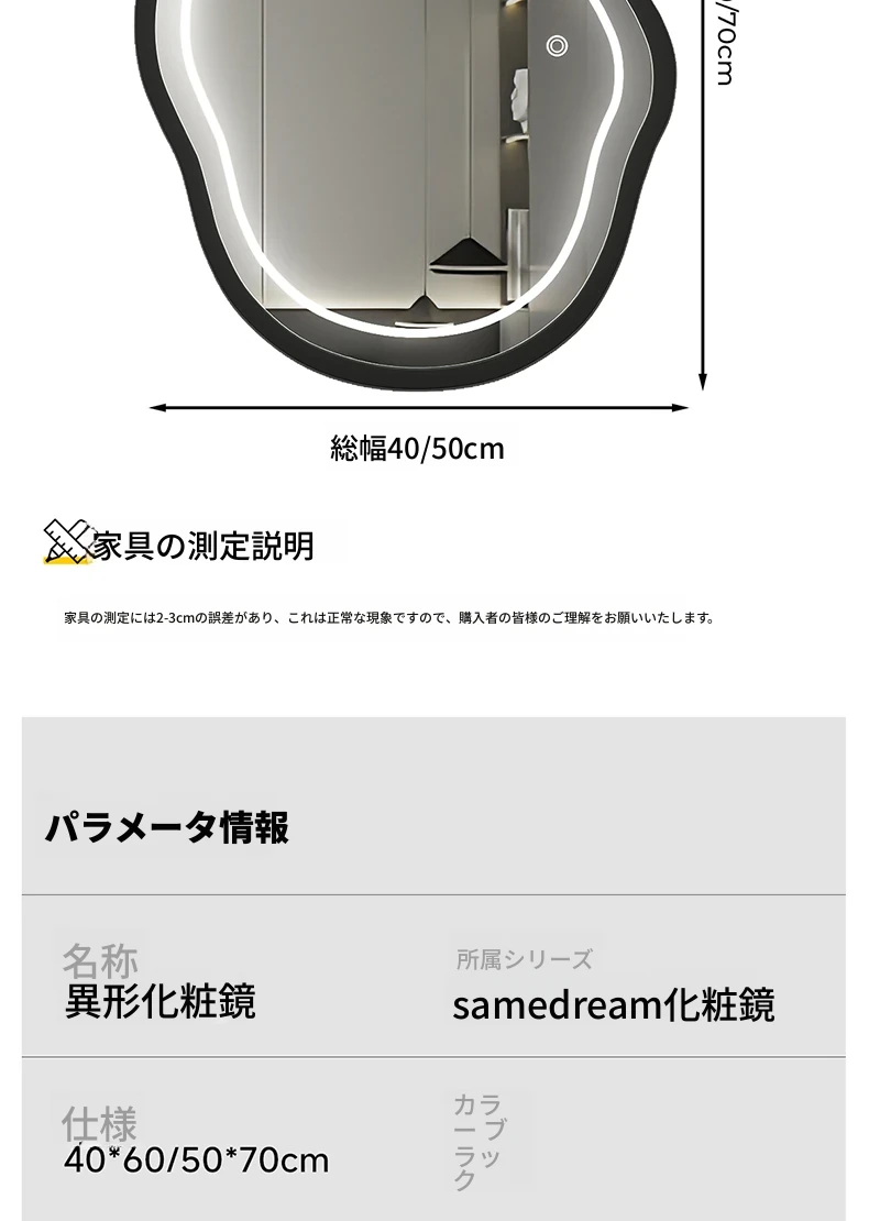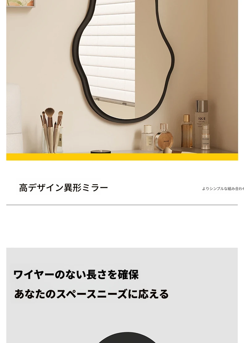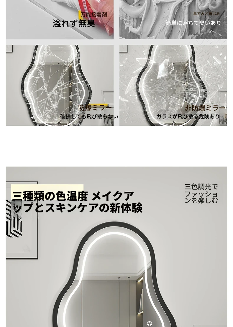 軽奢感あふれる高級感のあるドレッシングテーブル用壁掛けスマートLED化粧鏡!ユニークな形状でおしゃれな照明付き、主寝室にぴったりのアイテムです。自分だけの特別な空間を演出しましょう!