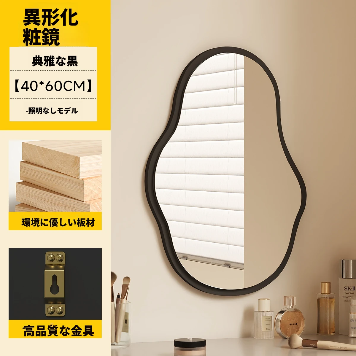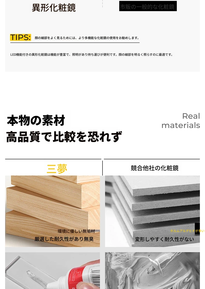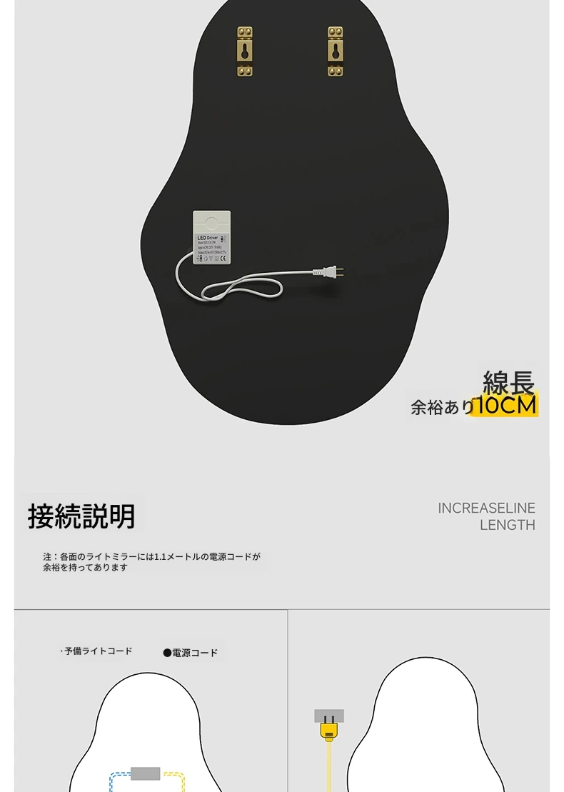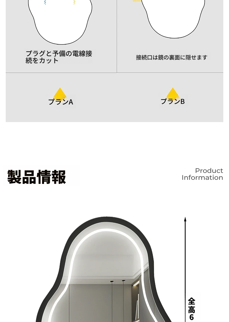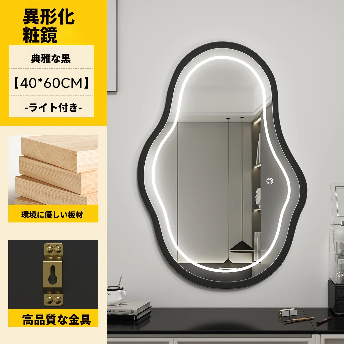 軽奢感あふれる高級感のあるドレッシングテーブル用壁掛けスマートLED化粧鏡!ユニークな形状でおしゃれな照明付き、主寝室にぴったりのアイテムです。自分だけの特別な空間を演出しましょう!