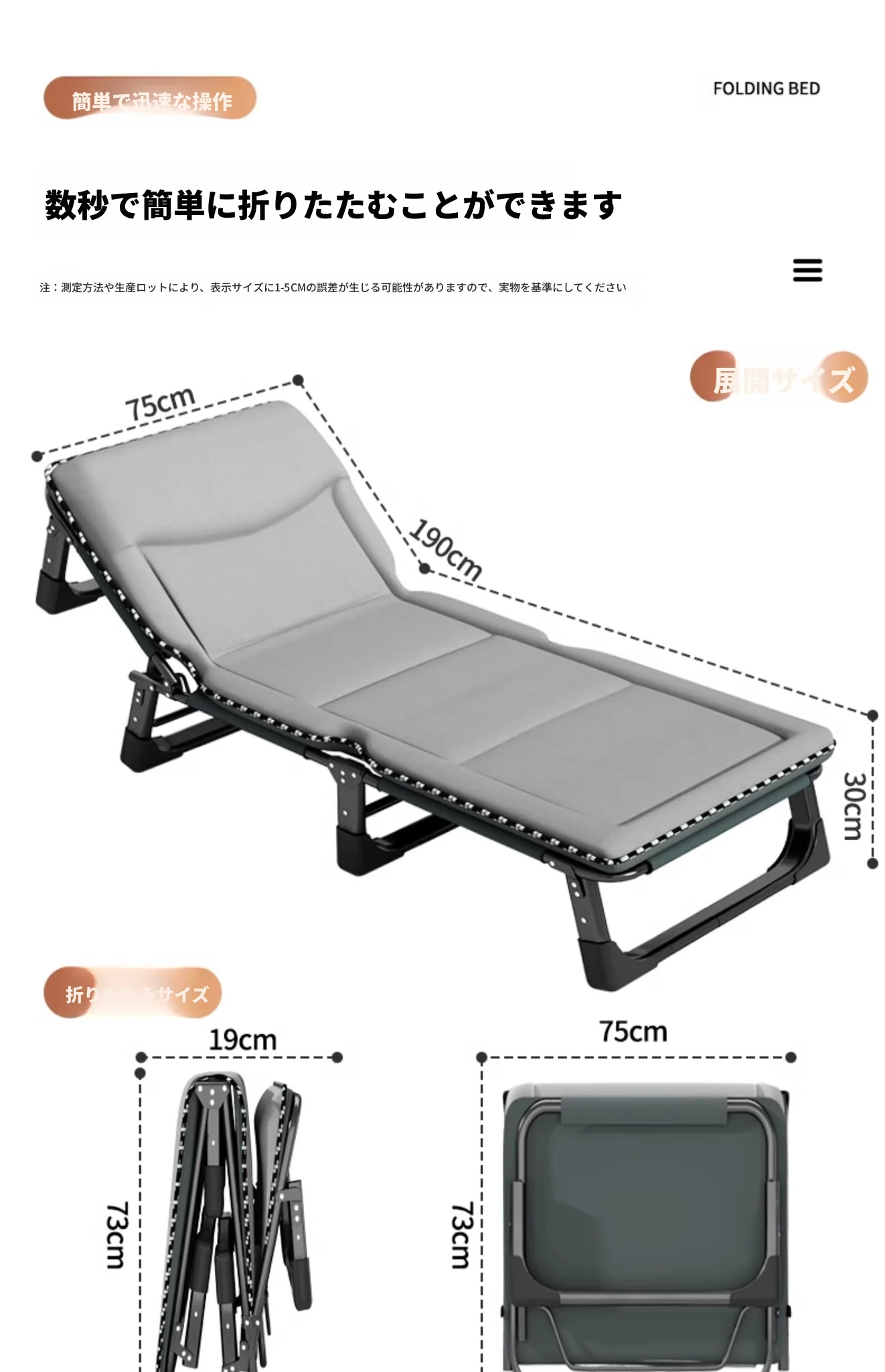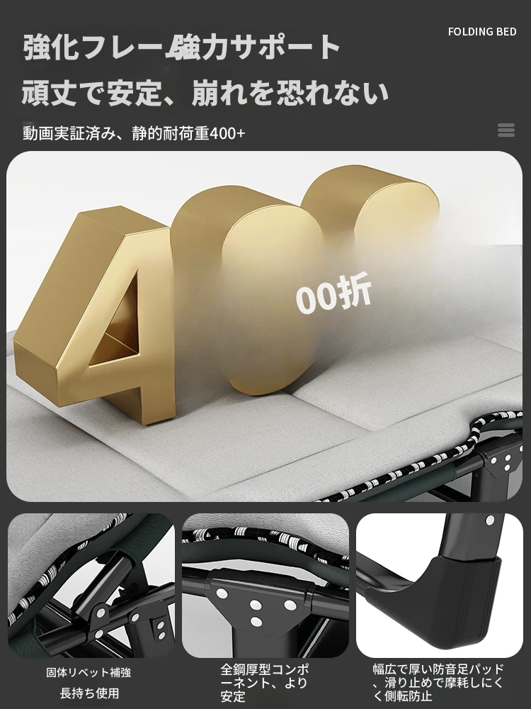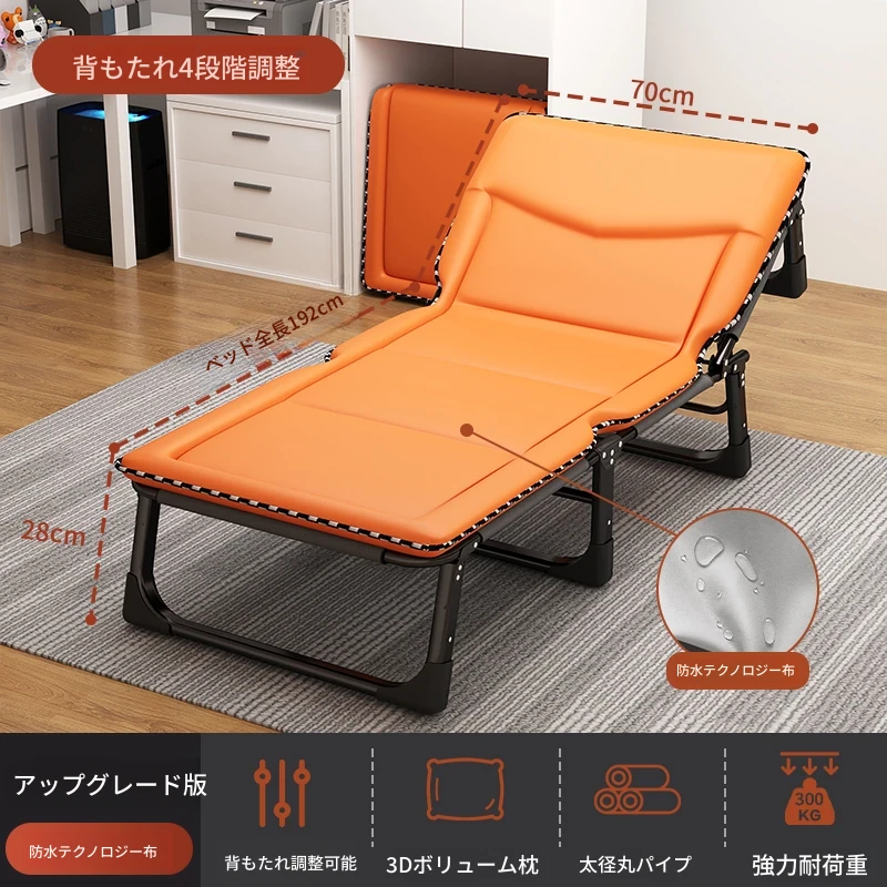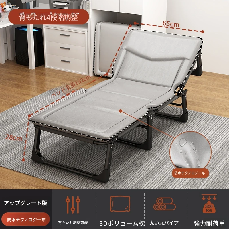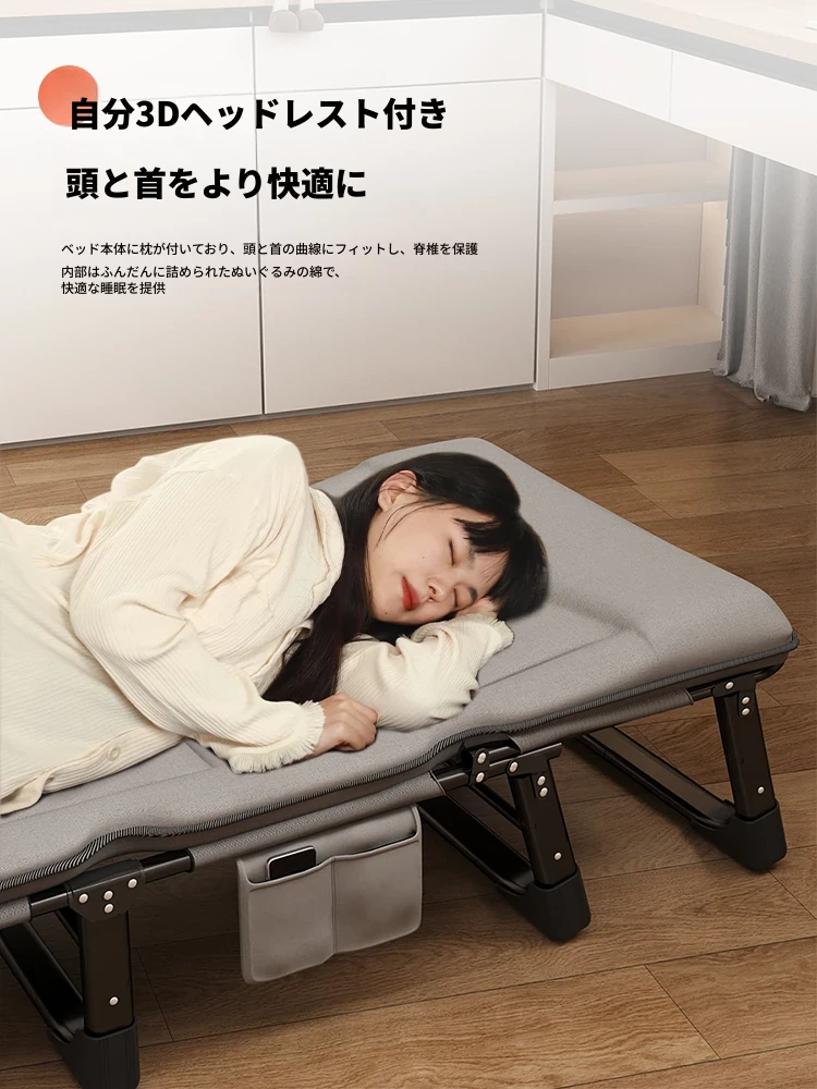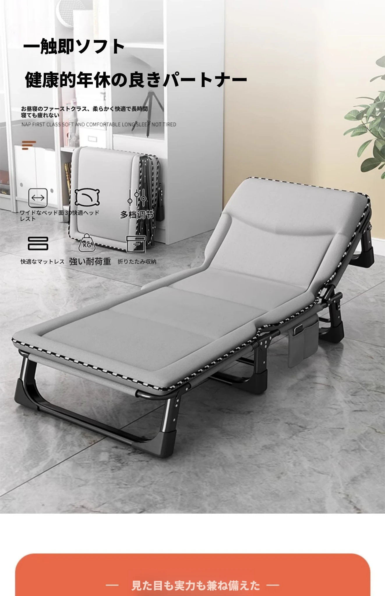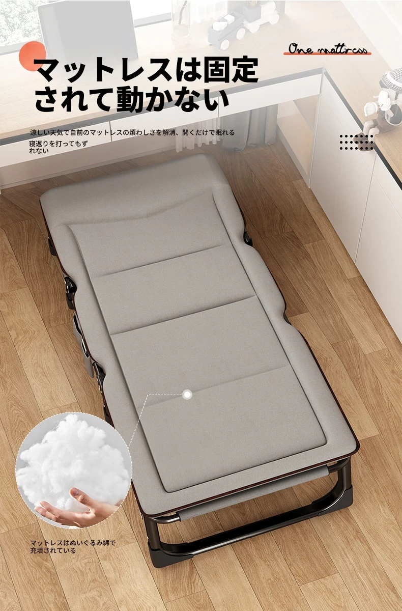 折りたたみシングルベッド - オフィスでの昼寝に最適な大人用携帯型リクライニングチェア!病院の付き添いや家庭での使用にもぴったり。快適さと便利さを兼ね備えた、どこでも使えるマルチユースアイテム!