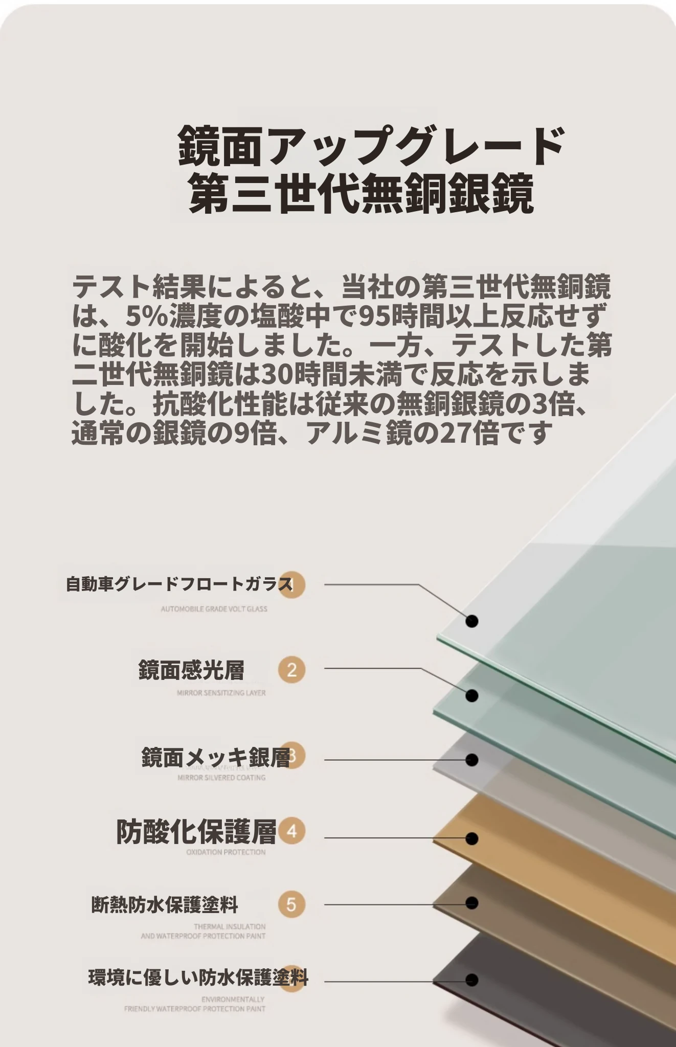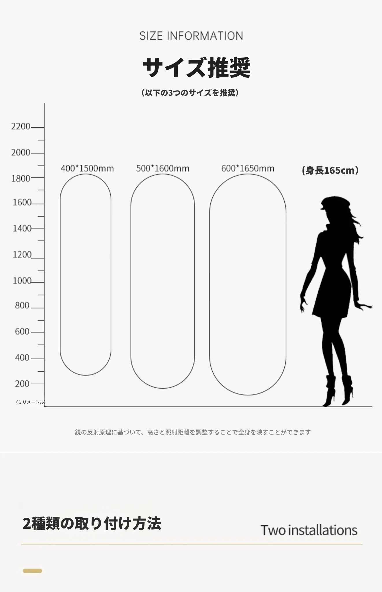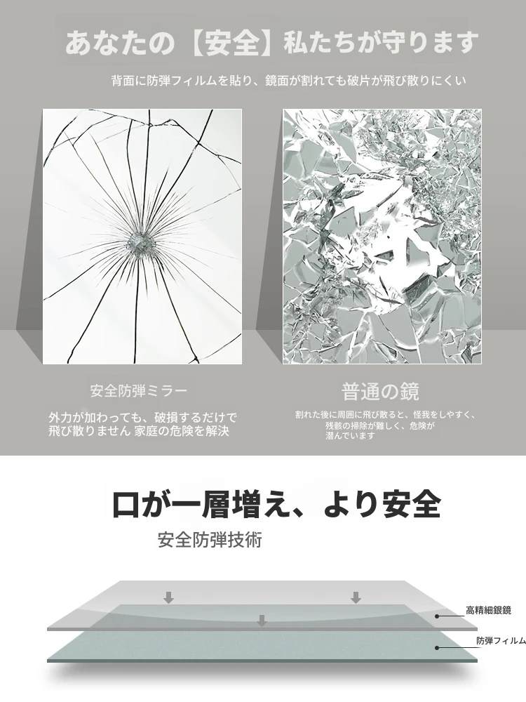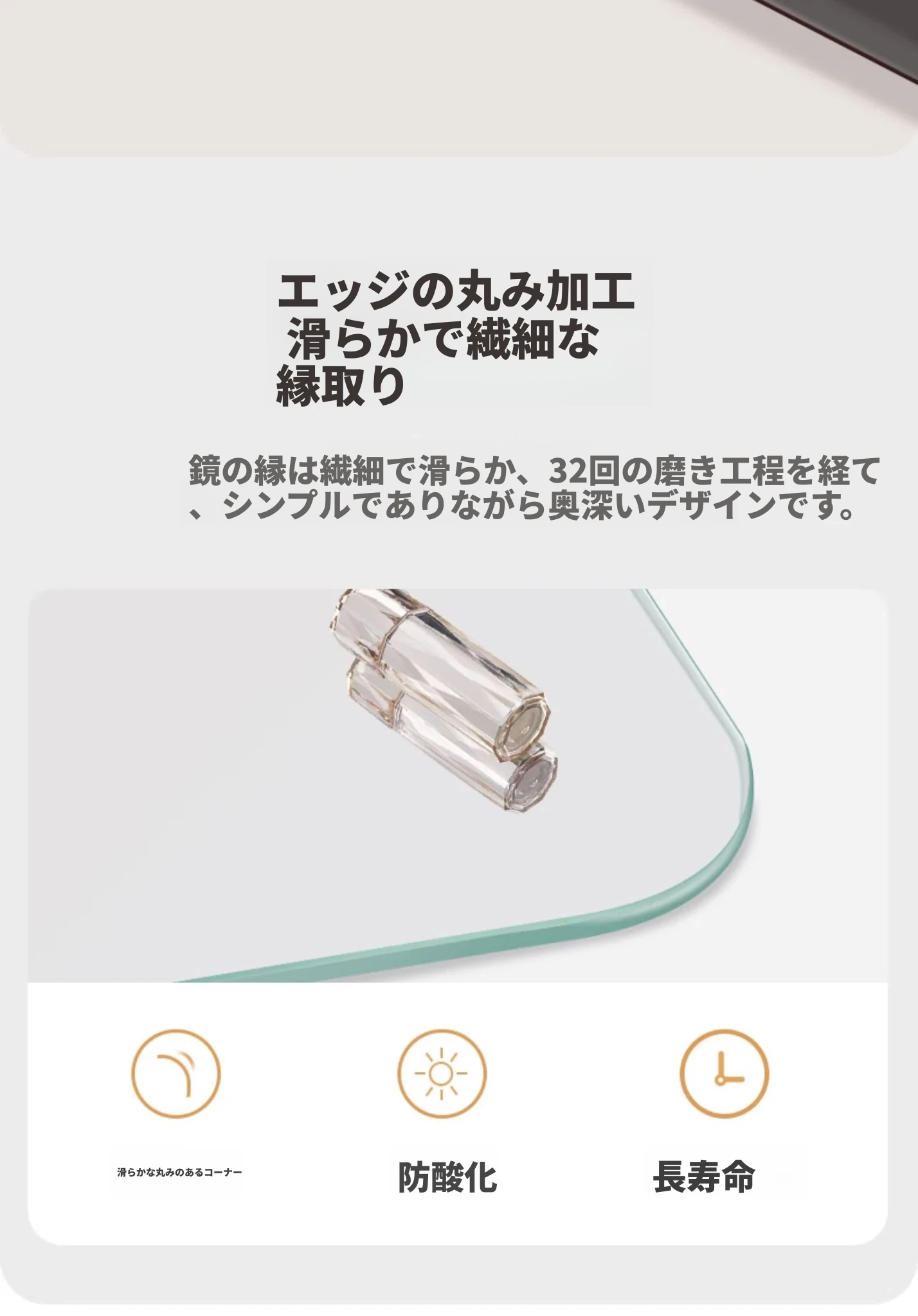 スタイリッシュなフレームレス全身鏡!高級感漂う壁掛けミラーは、自宅のインテリアにぴったり。自己粘着で簡単取り付け、破損防止設計で安全性も抜群。おしゃれな試着スペースを実現します!