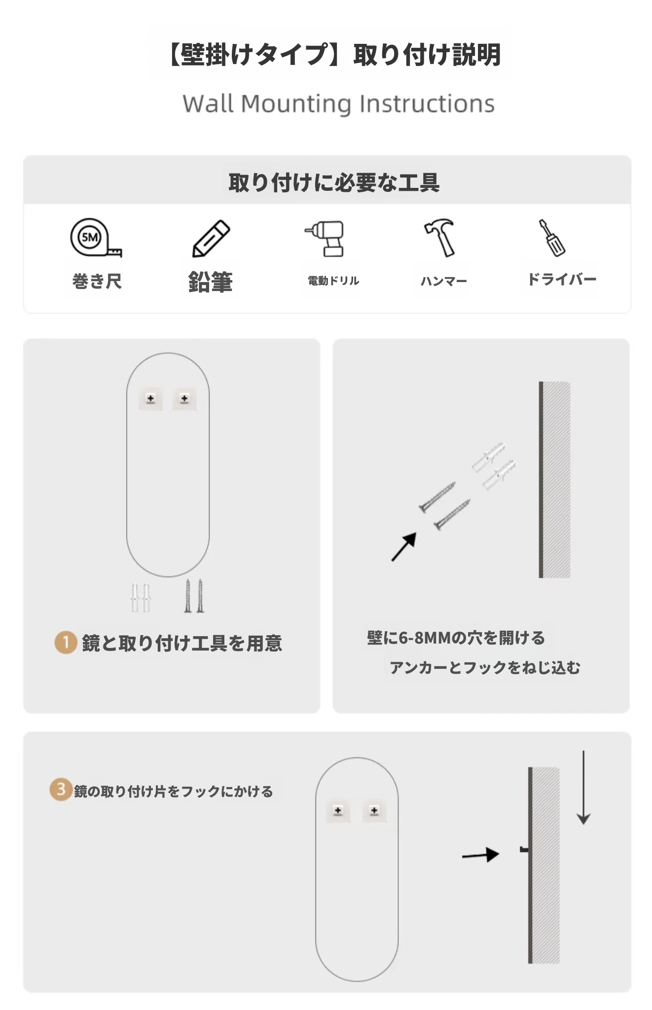 【貼り付け/壁掛け】60*170cm【玄関配送】