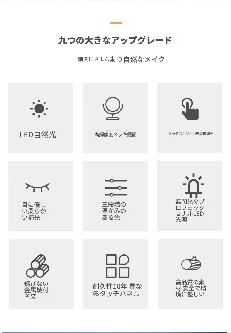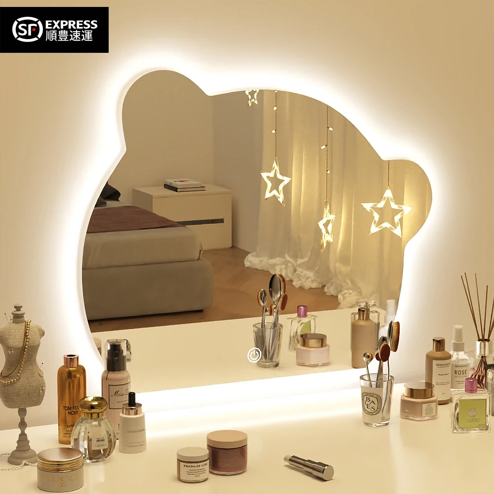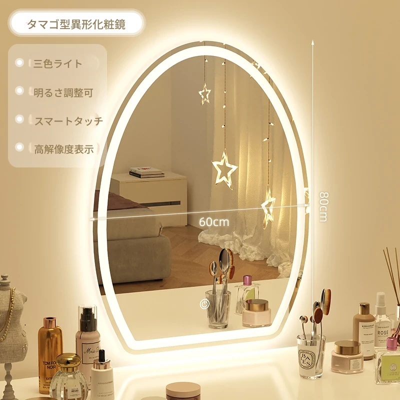 LEDライト付き壁掛けスマートメイクアップミラー - 照明効果で美しさを引き立てる!穴あけ不要のユニークなデザインで、女性の寝室にぴったりのドレッサーミラー。おしゃれなメイク環境を演出します!