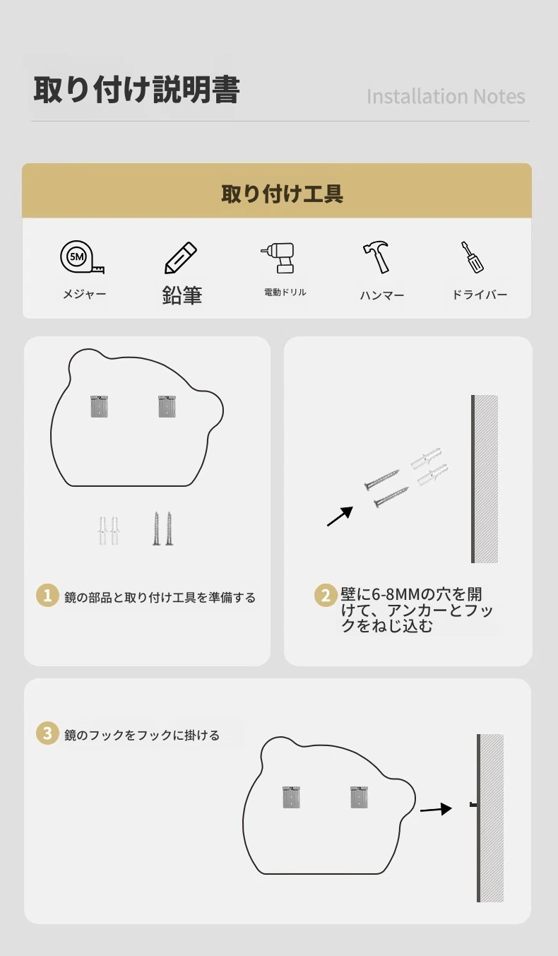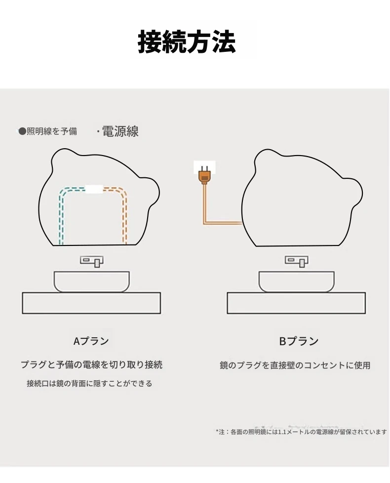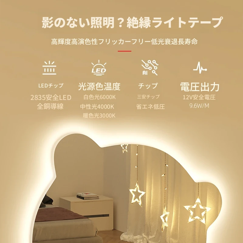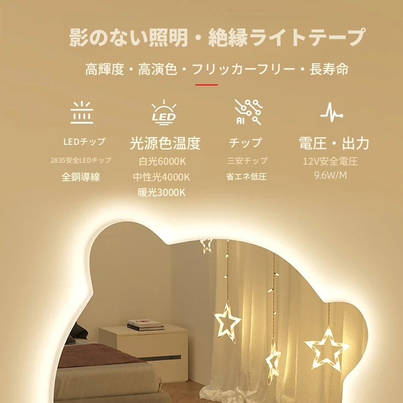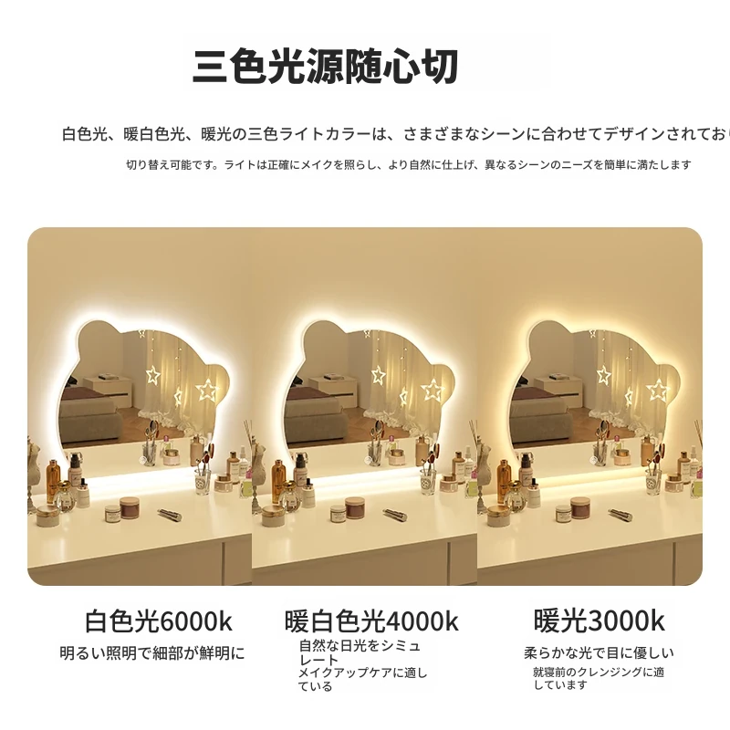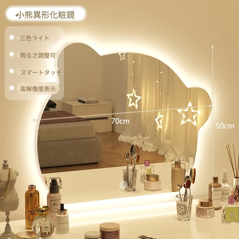 【三色光+無段階調光】50CM*70CM(穴あけ/穴なし)【❤人気のクマモデル❤】