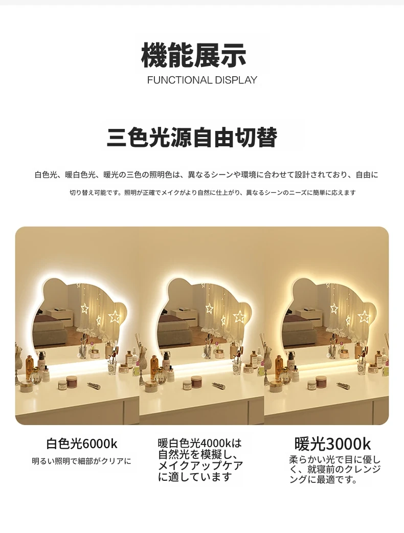 【三色光+無段階調光】70CM*90CM(穴あけ/穴なし)【❤人気のクマモデル❤】