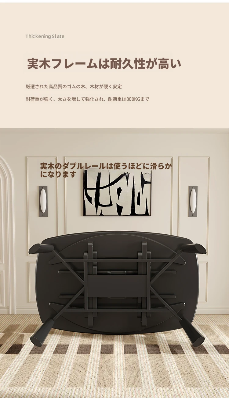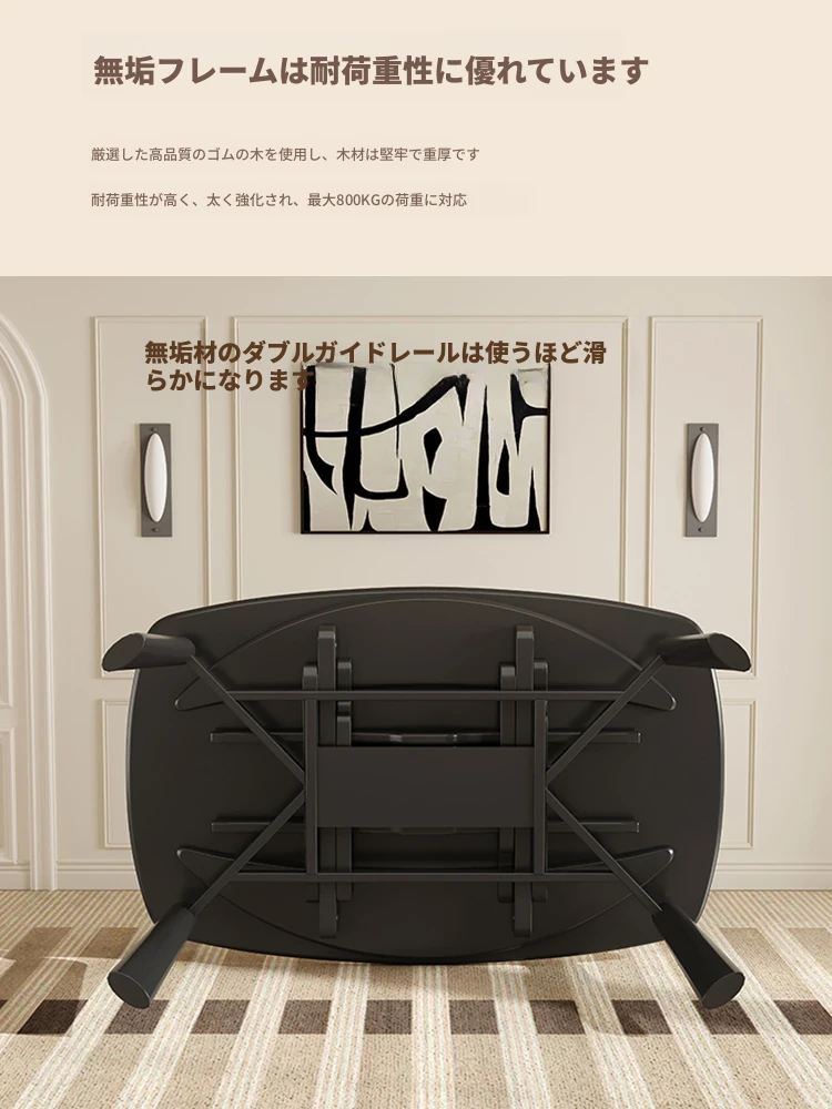 【雪山ホワイトストライプ抗菌ロックプレート+ラバーウッド全木フレーム】伸縮式ダイニングテーブル