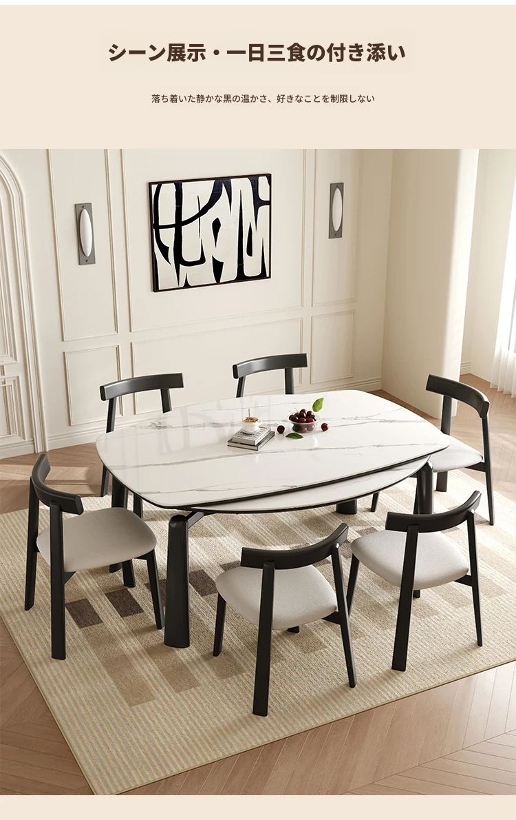 【雪山ホワイトストライプ抗菌ロックプレート+ラバーウッド全木フレーム】伸縮式ダイニングテーブル+水牛椅子*6【雪山ホワイトストライプ抗菌ロックプレート+ラバーウッド全木フレーム】伸縮式ダイニングテーブル+水牛椅子*6