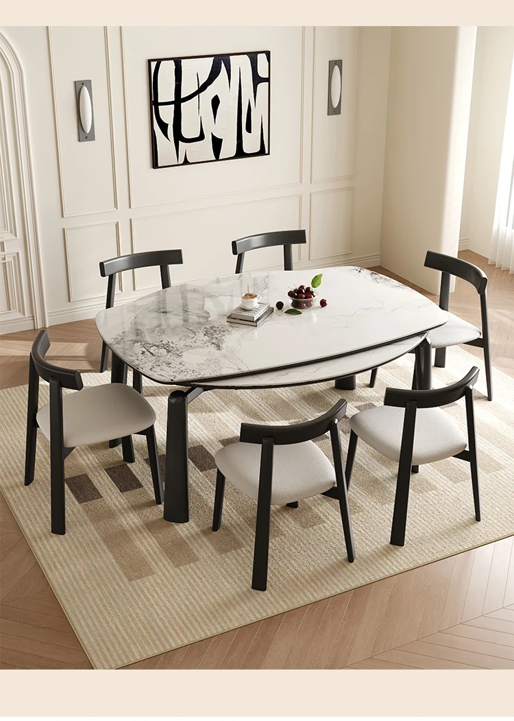 【雪山ホワイトストライプ抗菌ロックプレート+ラバーウッド全木フレーム】伸縮式ダイニングテーブル+水牛椅子*8【雪山ホワイトストライプ抗菌ロックプレート+ラバーウッド全木フレーム】伸縮式ダイニングテーブル+水牛椅子*8