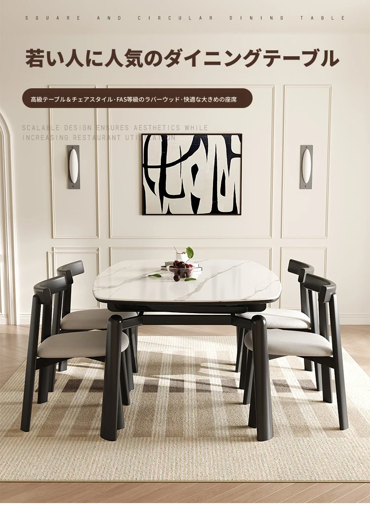 佐慕の伸縮可能なモダン木製円形ダイニングテーブルセット - 家庭向け、小型住宅に最適!シンプルでおしゃれ、2025年新作。あなたのライフスタイルにぴったり!