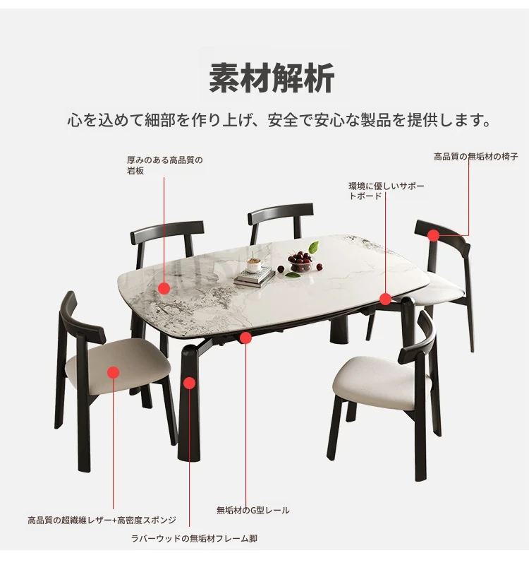 【雪山ホワイトストライプ抗菌ロックプレート+ラバーウッド全木フレーム】伸縮式ダイニングテーブル+角椅子*4【雪山ホワイトストライプ抗菌ロックプレート+ラバーウッド全木フレーム】伸縮式ダイニングテーブル+角椅子*4