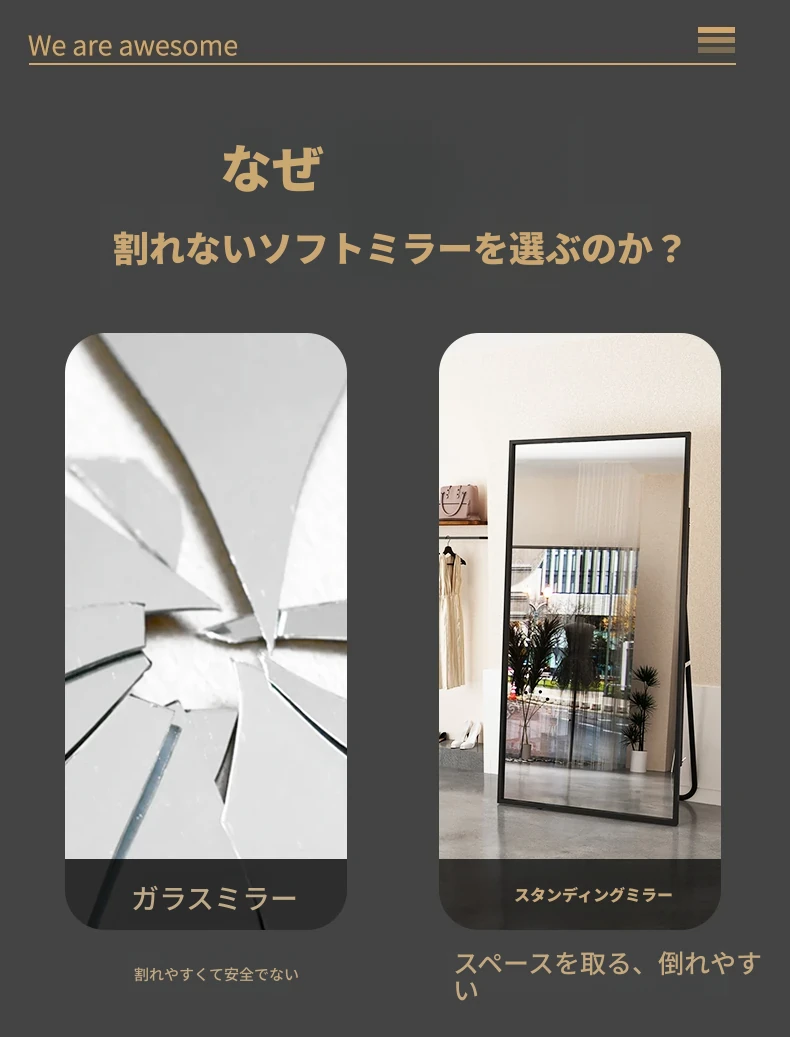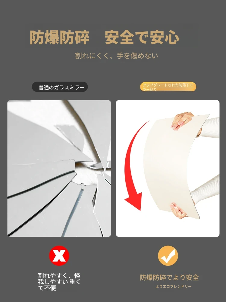 アクリルソフトミラー 自貼り全身鏡 壁掛け試着鏡 家庭用 寝室用 鏡面シートで簡単取り付け!おしゃれなデザインで、どんな部屋にもぴったりフィット!お手入れも簡単で、毎日のコーディネートを楽しもう!