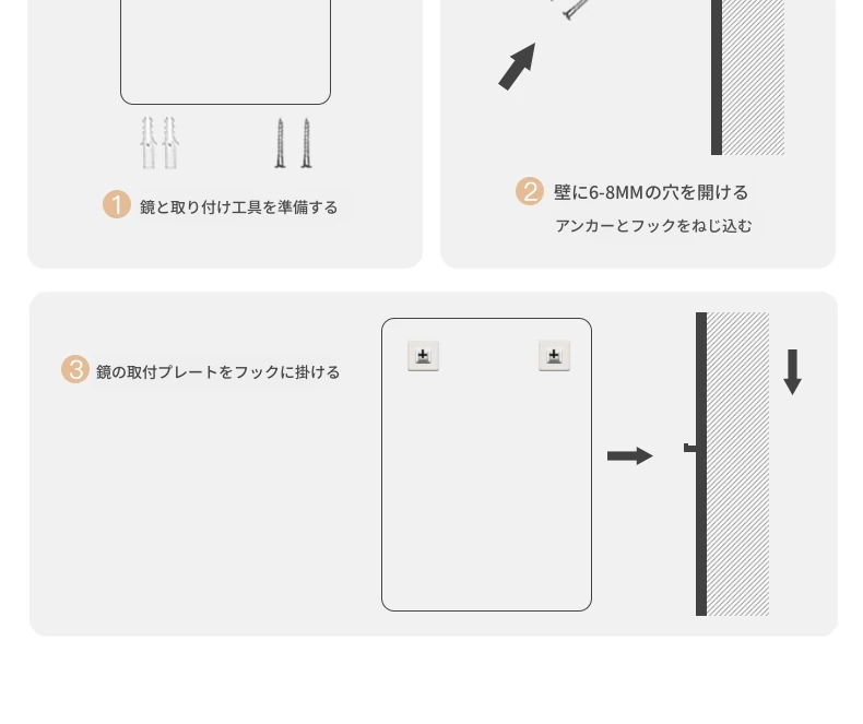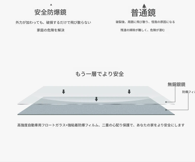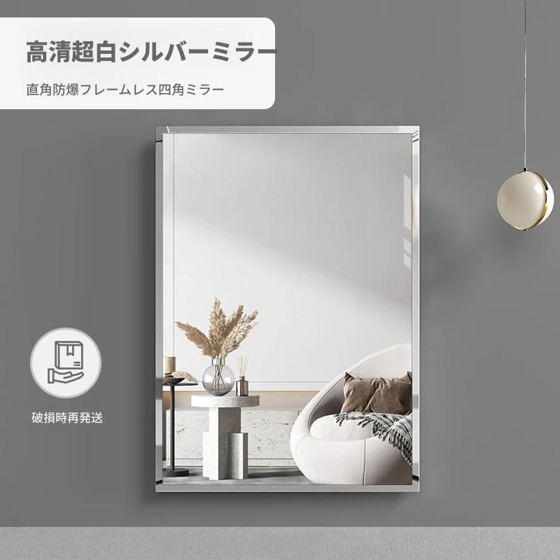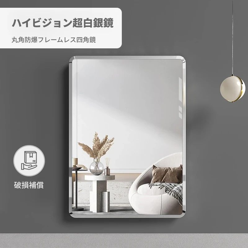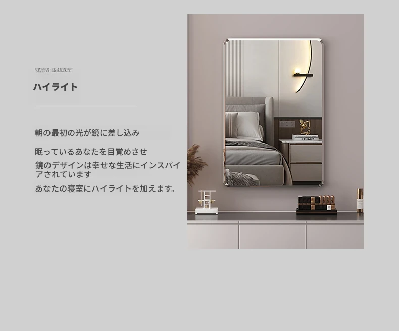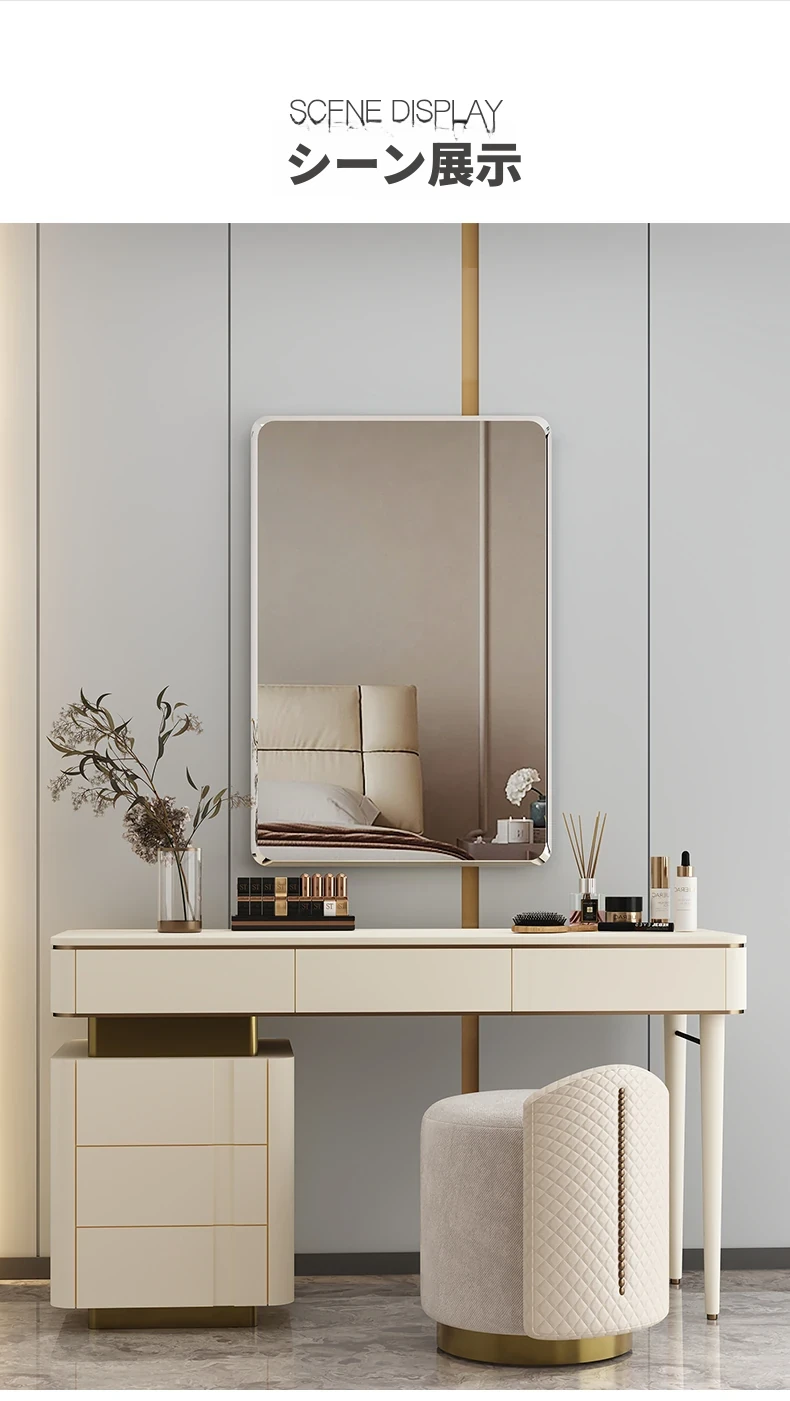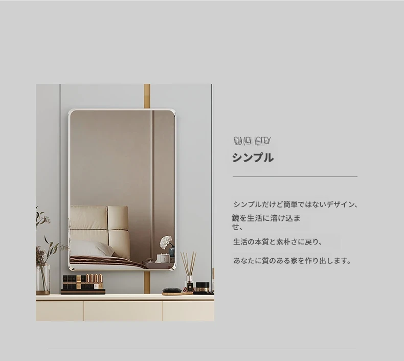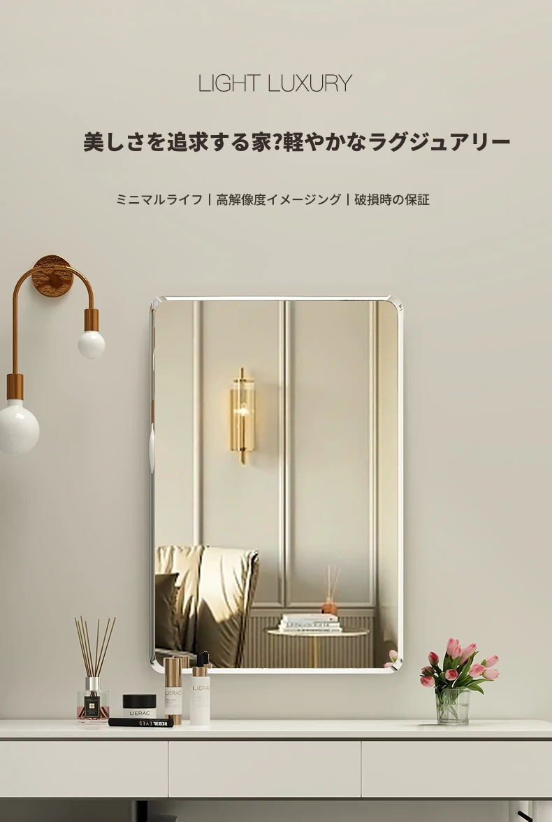 自粘式軽奢華化粧鏡 - おしゃれな壁掛けミラーで、簡単に取り付け可能!穴を開けずに、洗練されたデザインで寝室やドレッサーを演出。シンプルで美しいガラスミラーで、毎日のメイクアップを特別な時間に!