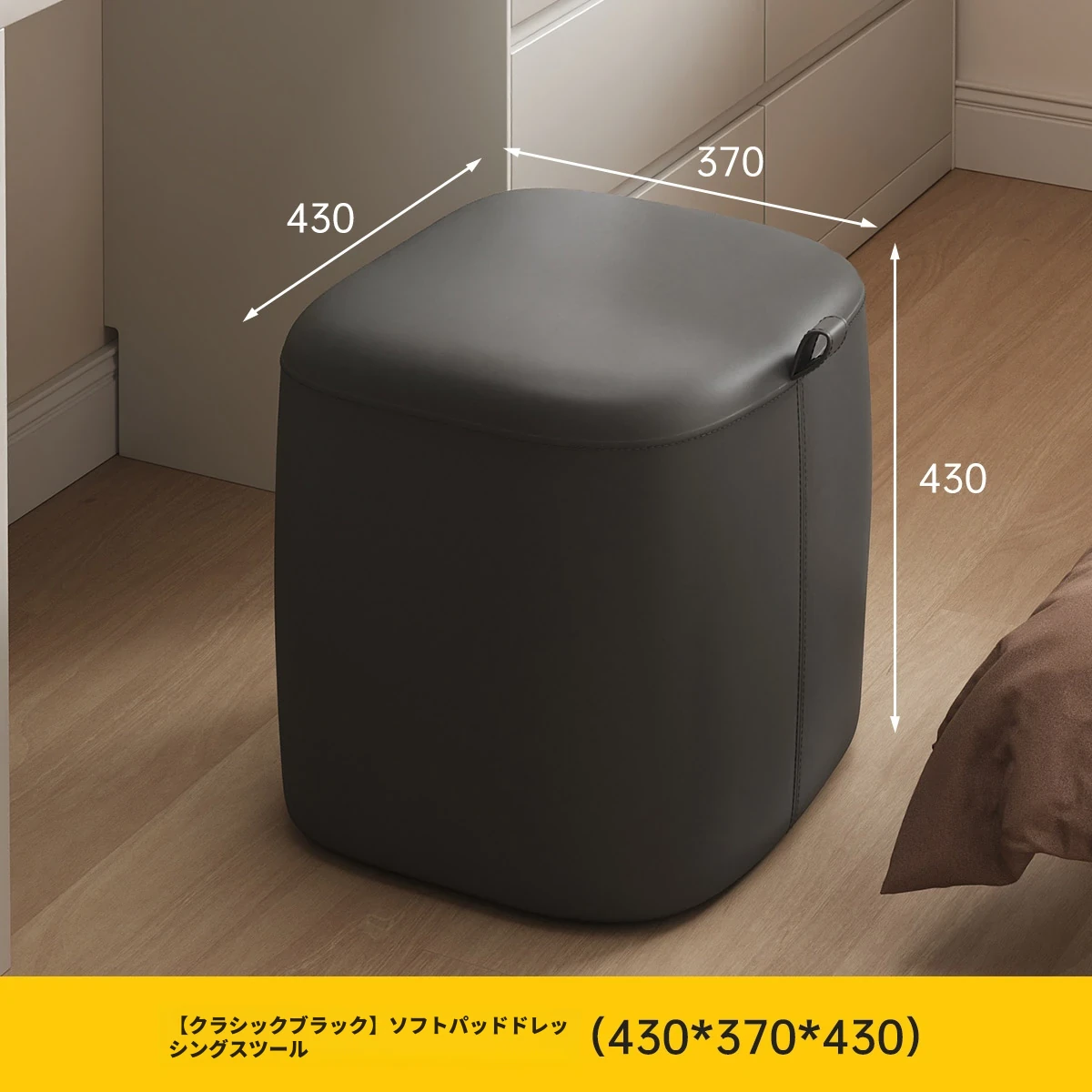 クラシックブラックオーガニックレザー-ソフトパッキングドレッシングスツール