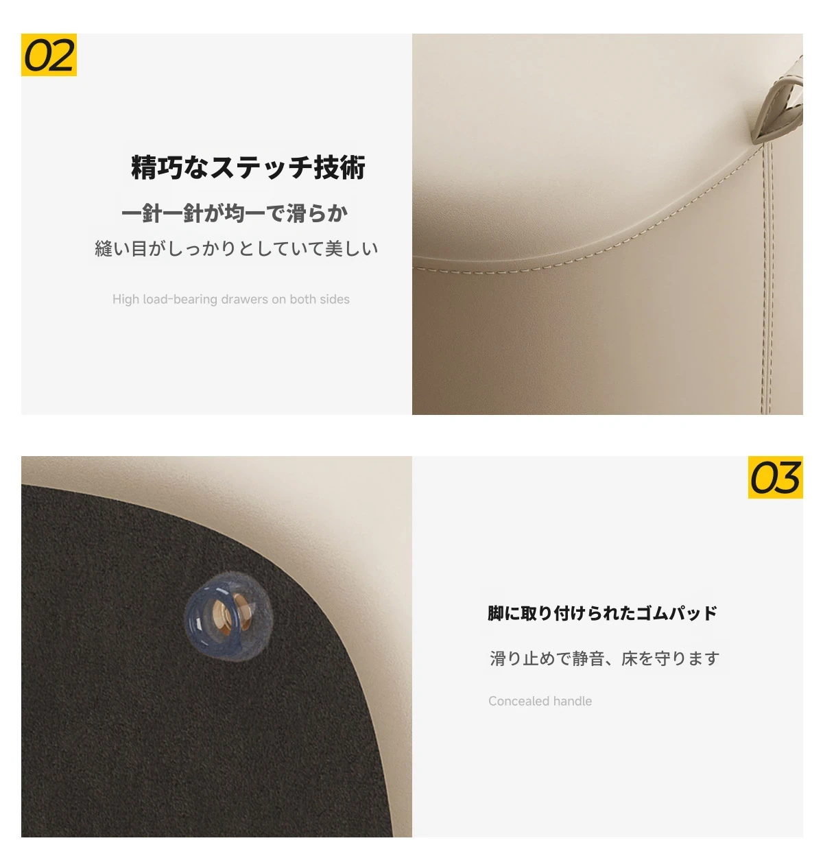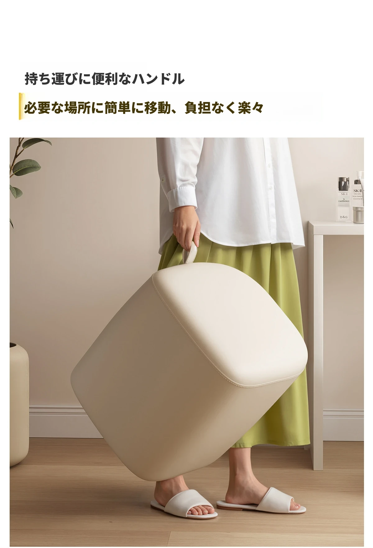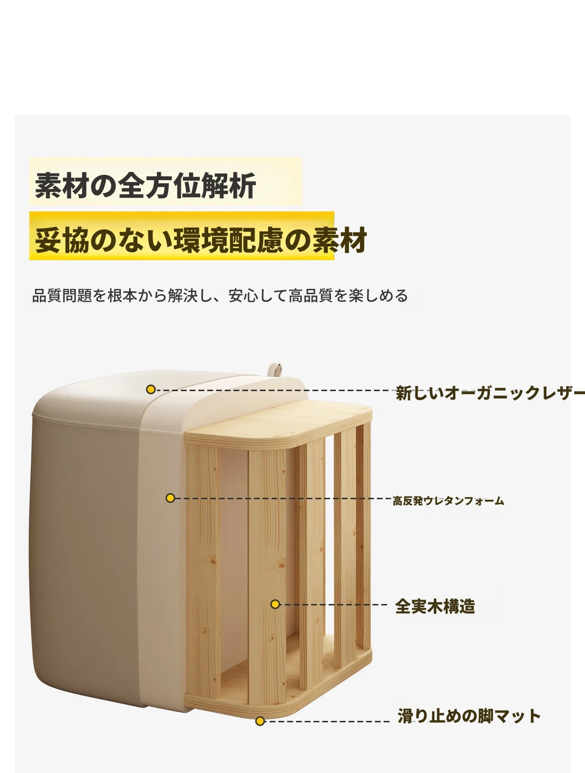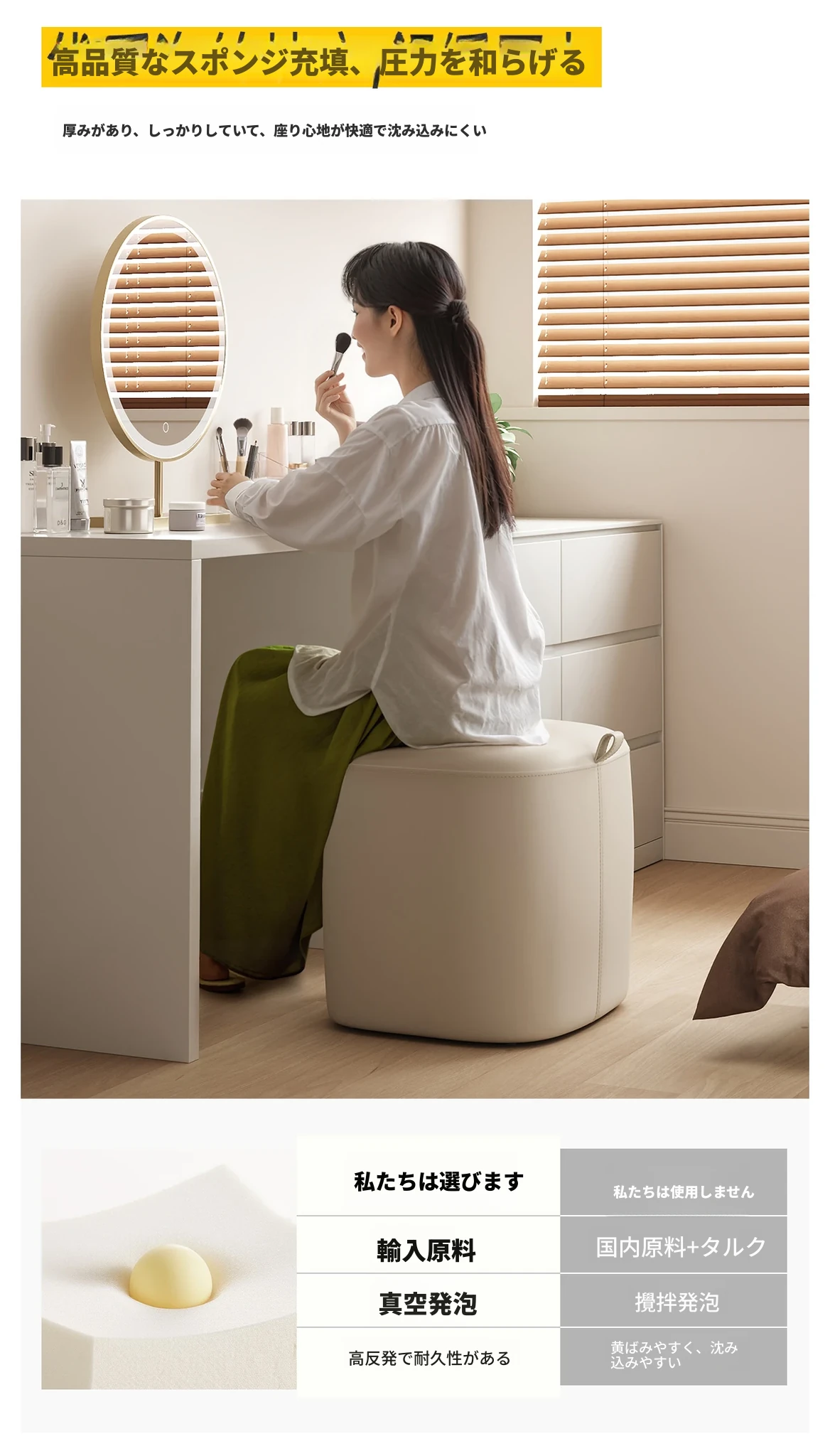クリーム色オーガニックレザー-ソフトパッキングドレッシングスツール