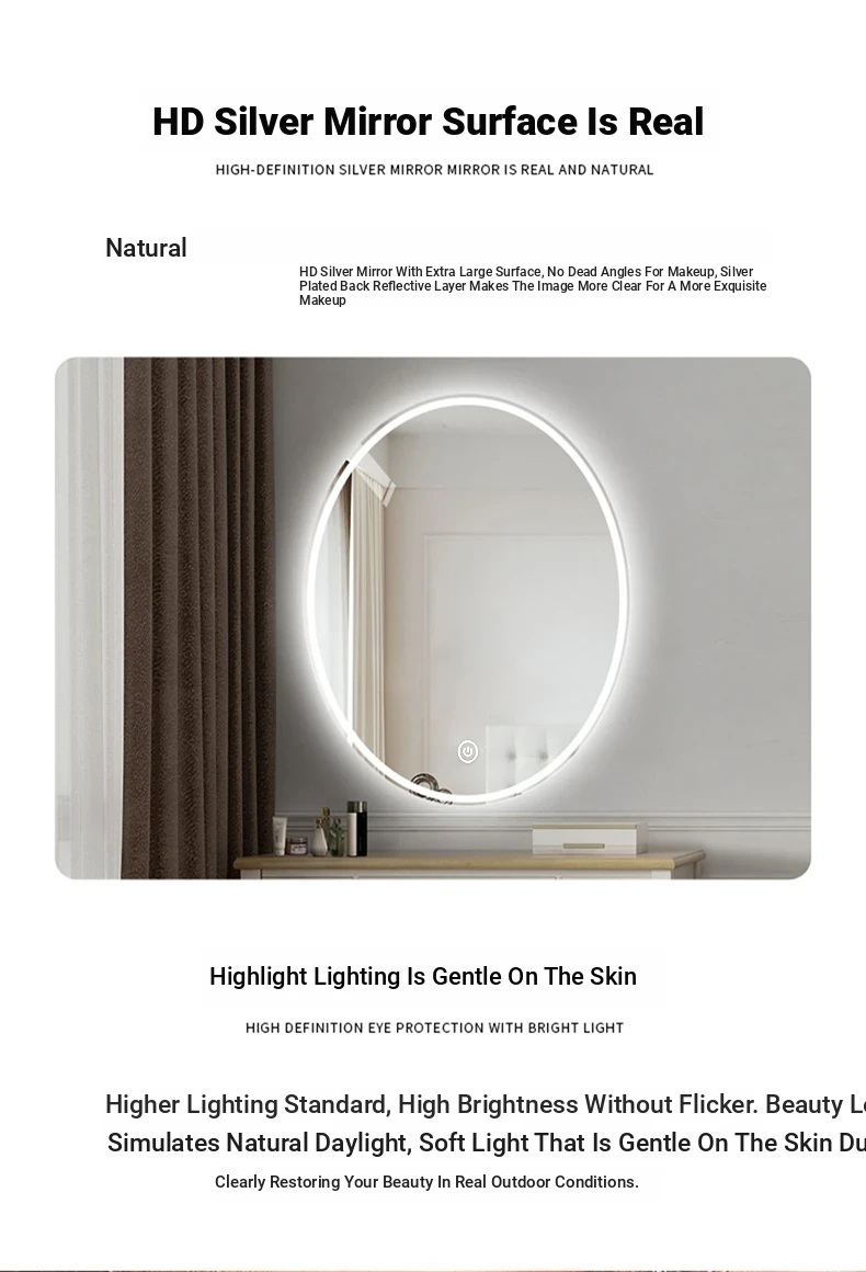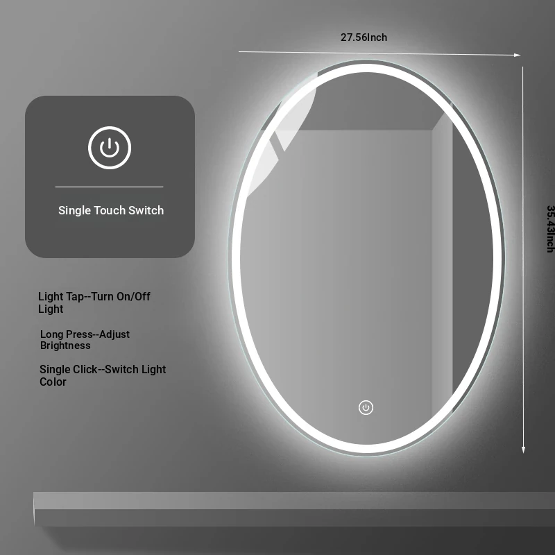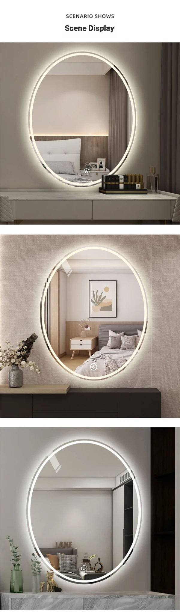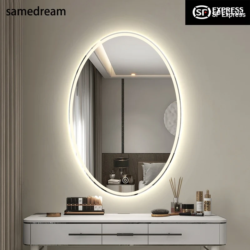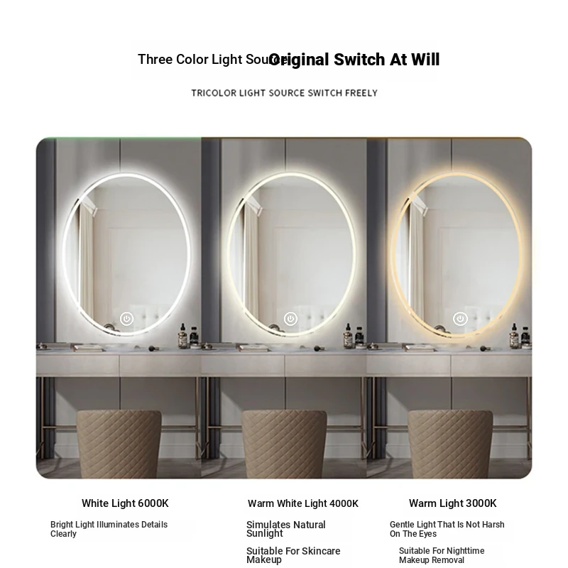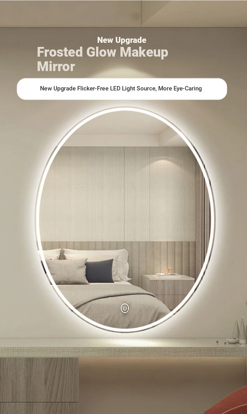 Smart LED Lighted Wall-Mounted Vanity Mirror - Oval Shaped Makeup Mirror for Bedrooms, Perfect for Flawless Beauty Routine and Elegant Décor.