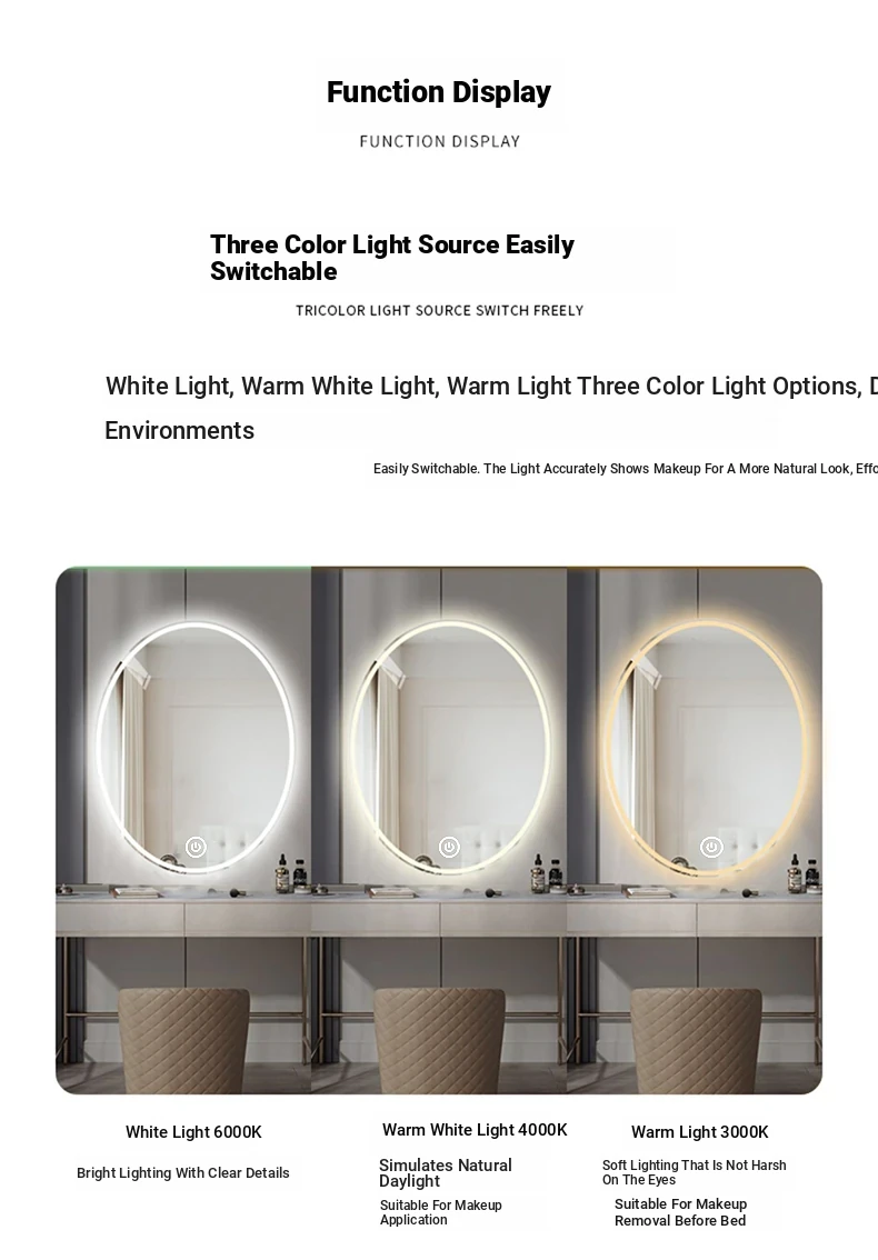 (Not included in the installation) [Punch/no punch] 19.69in*27.56in (three color light + brightness adjustable)
