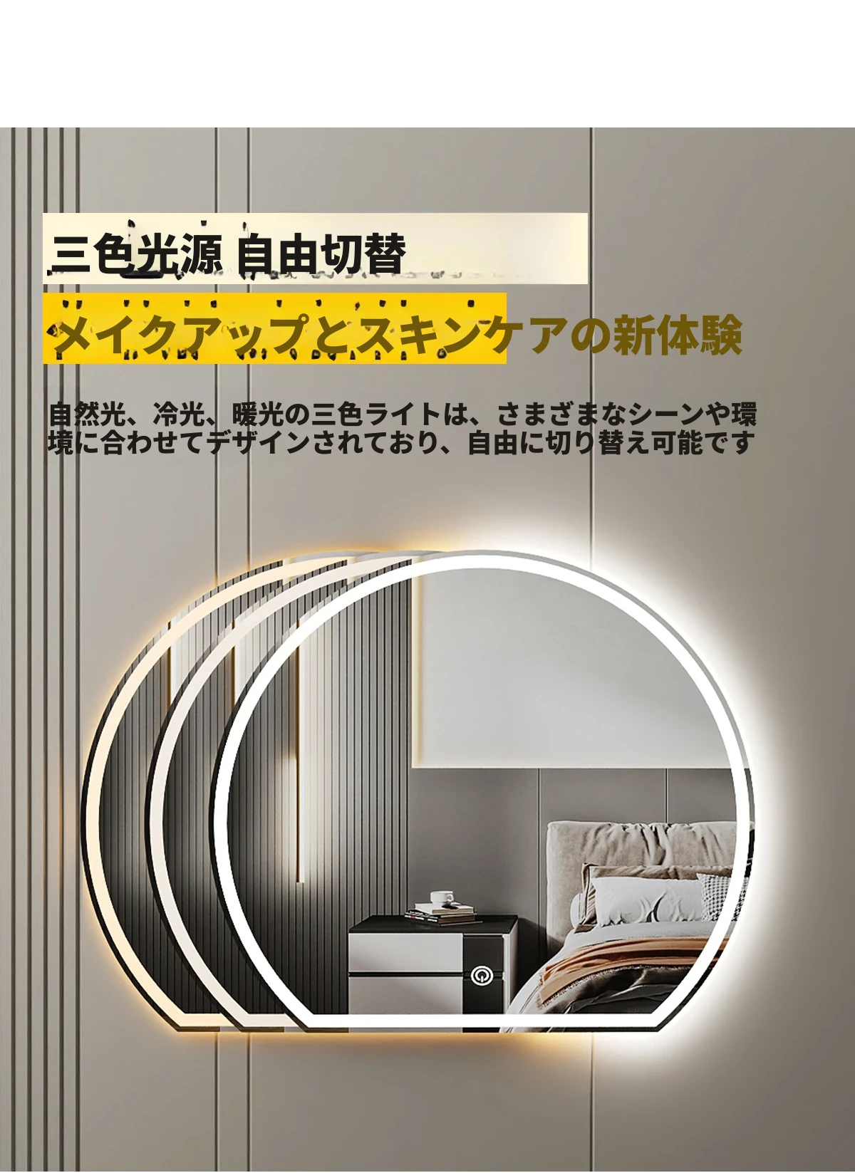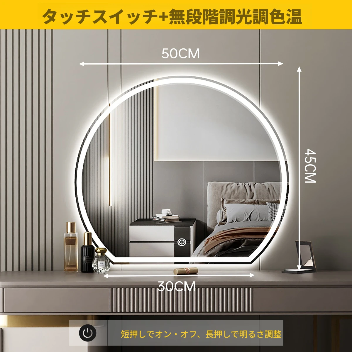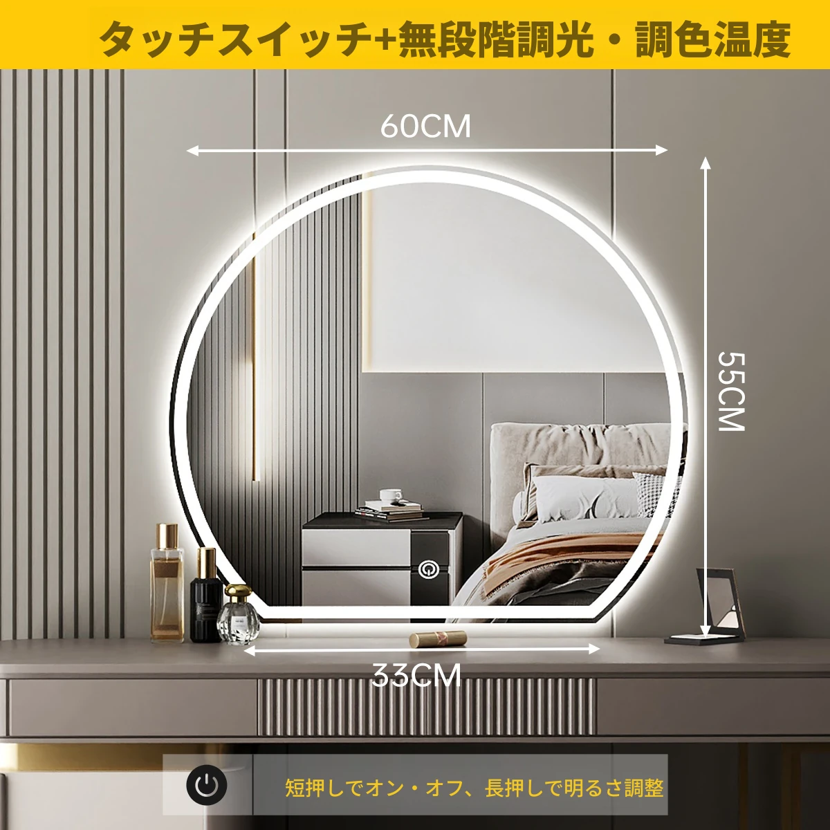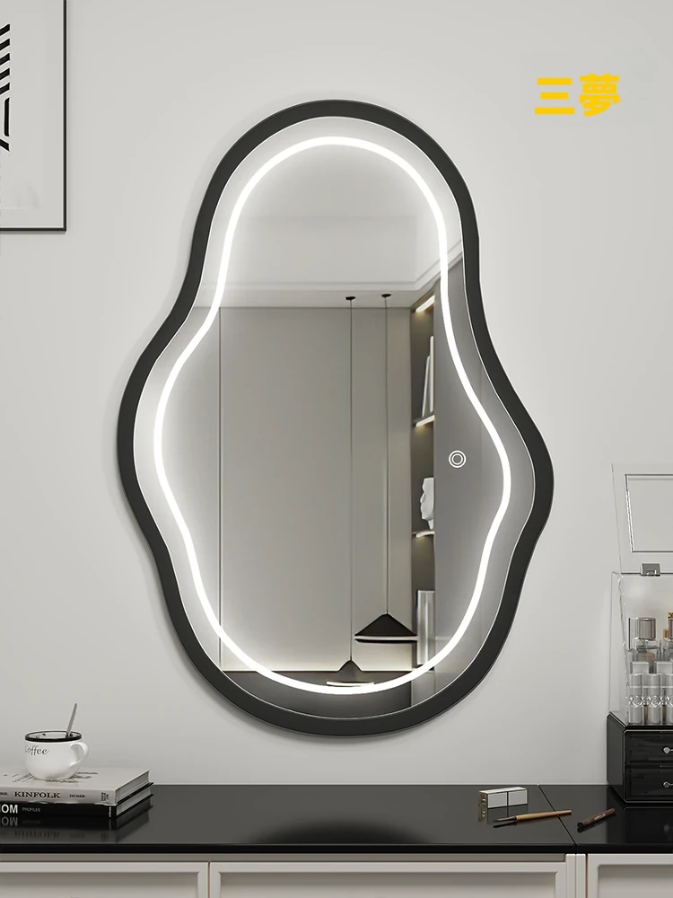 スマート化粧鏡 LEDライト付きドレッサー鏡 - 壁掛け・卓上兼用!主寝室にぴったりのスタイリッシュなデザインで、異形の美しさを演出。あなたのメイクを完璧にサポートします!