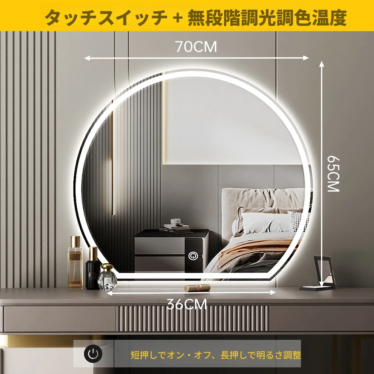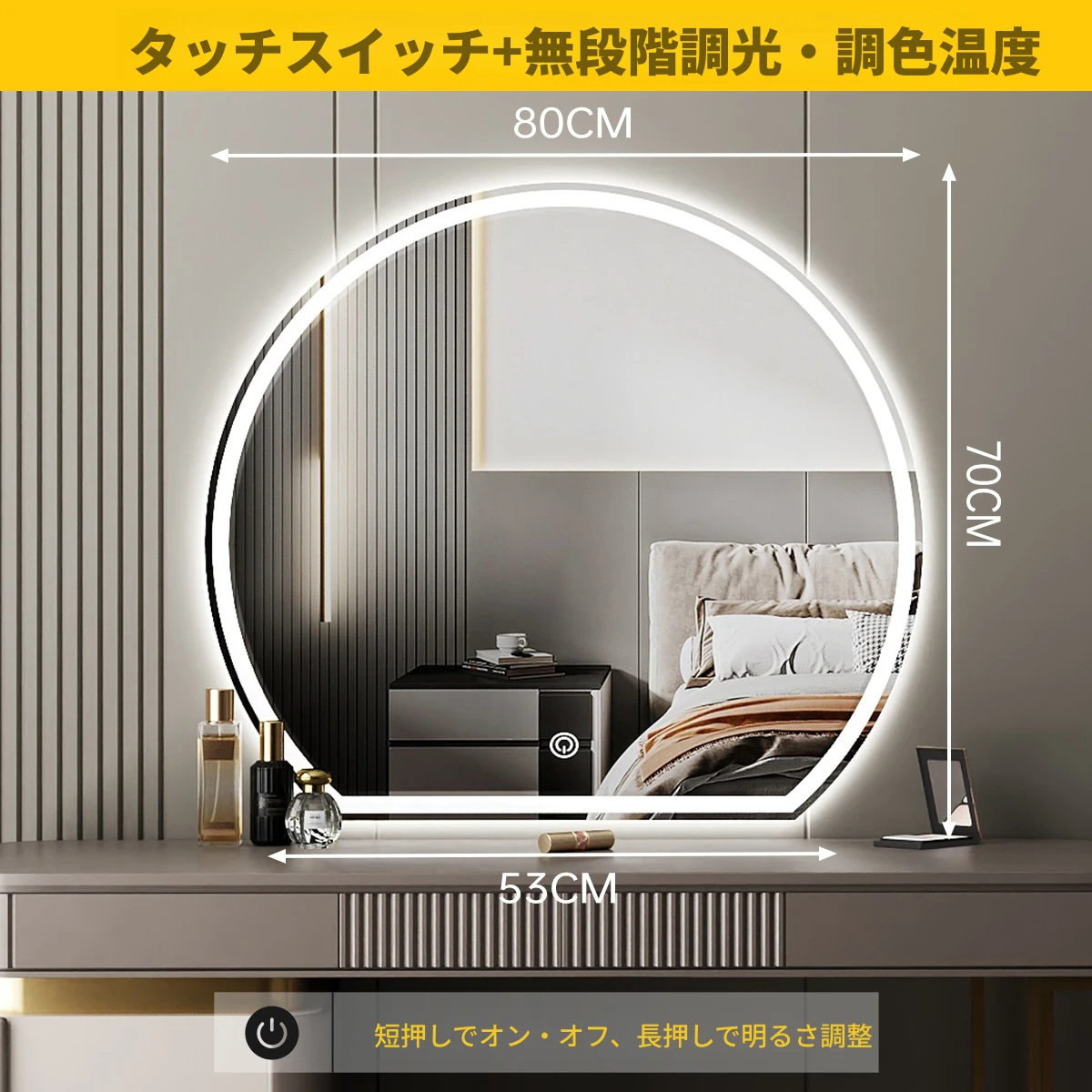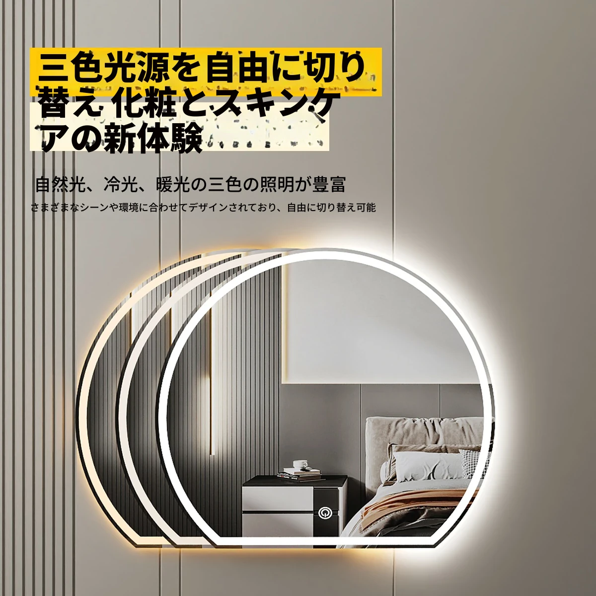 スマート化粧鏡 LEDライト付きドレッサー鏡 - 壁掛け・卓上兼用!主寝室にぴったりのスタイリッシュなデザインで、異形の美しさを演出。あなたのメイクを完璧にサポートします!