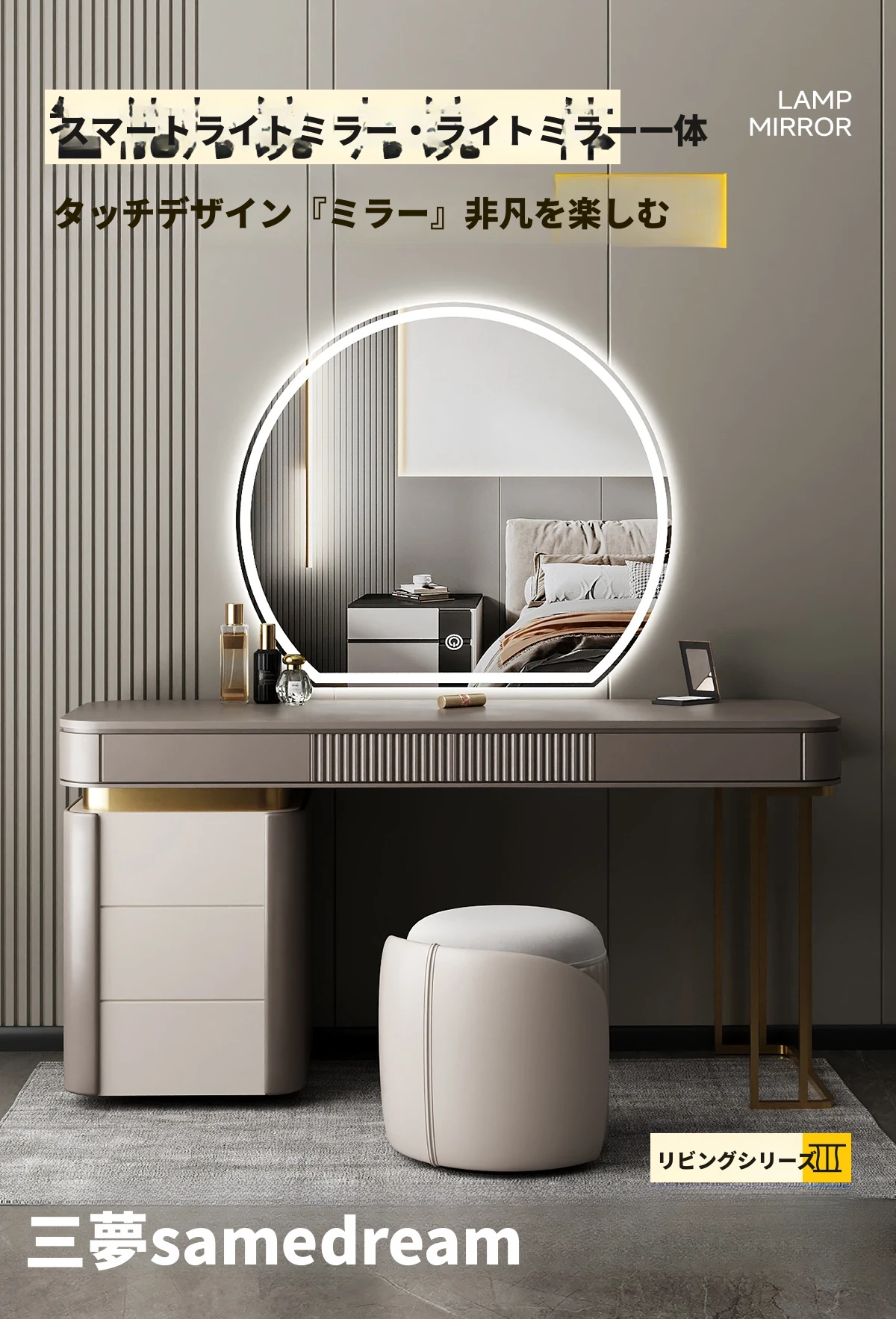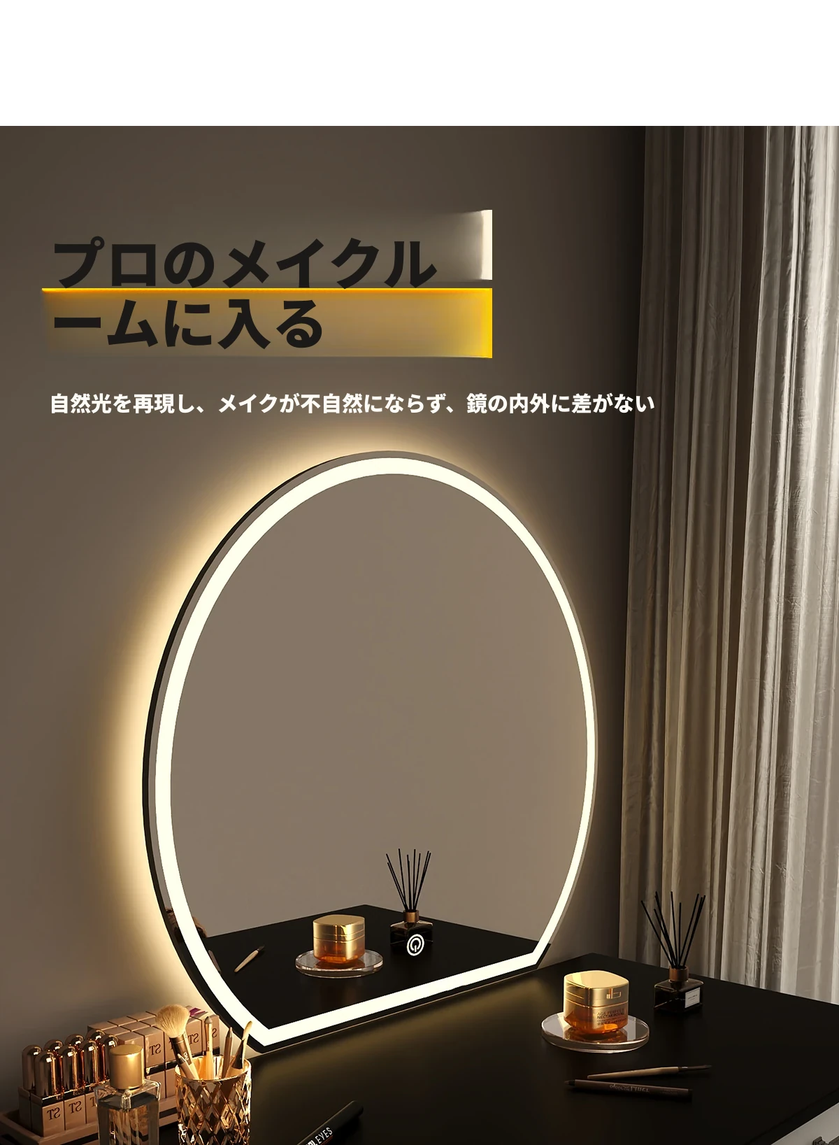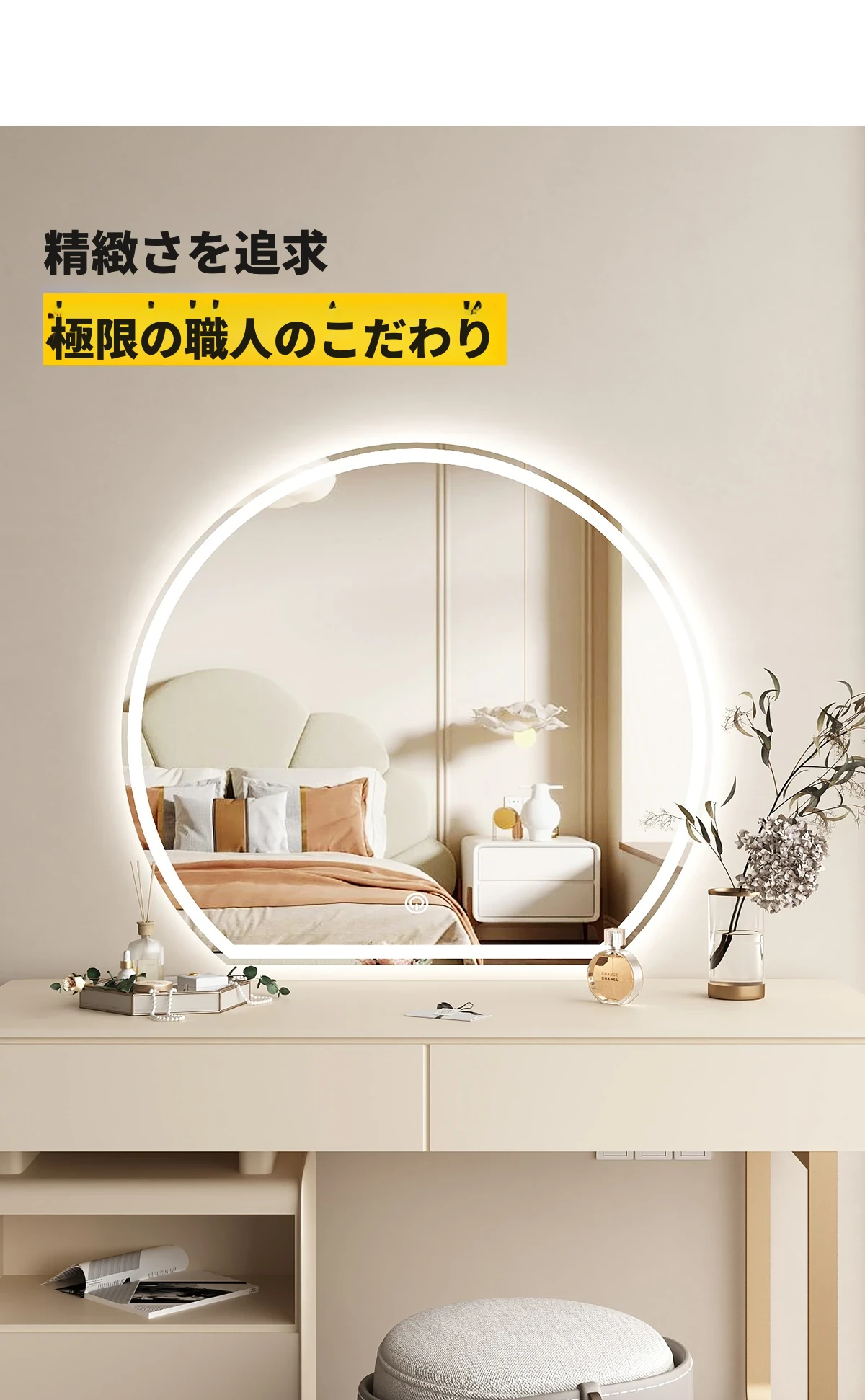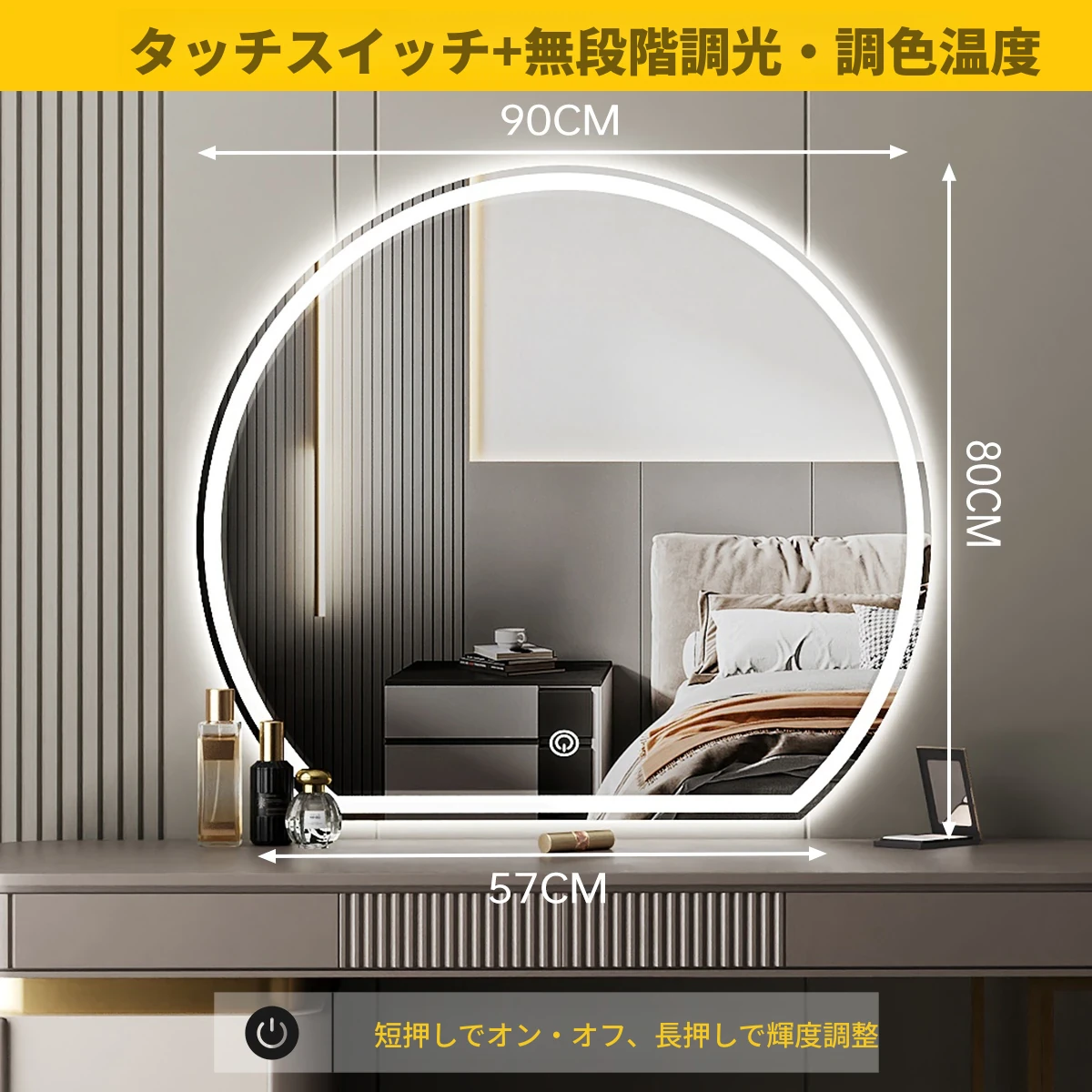 スマート化粧鏡 LEDライト付きドレッサー鏡 - 壁掛け・卓上兼用!主寝室にぴったりのスタイリッシュなデザインで、異形の美しさを演出。あなたのメイクを完璧にサポートします!