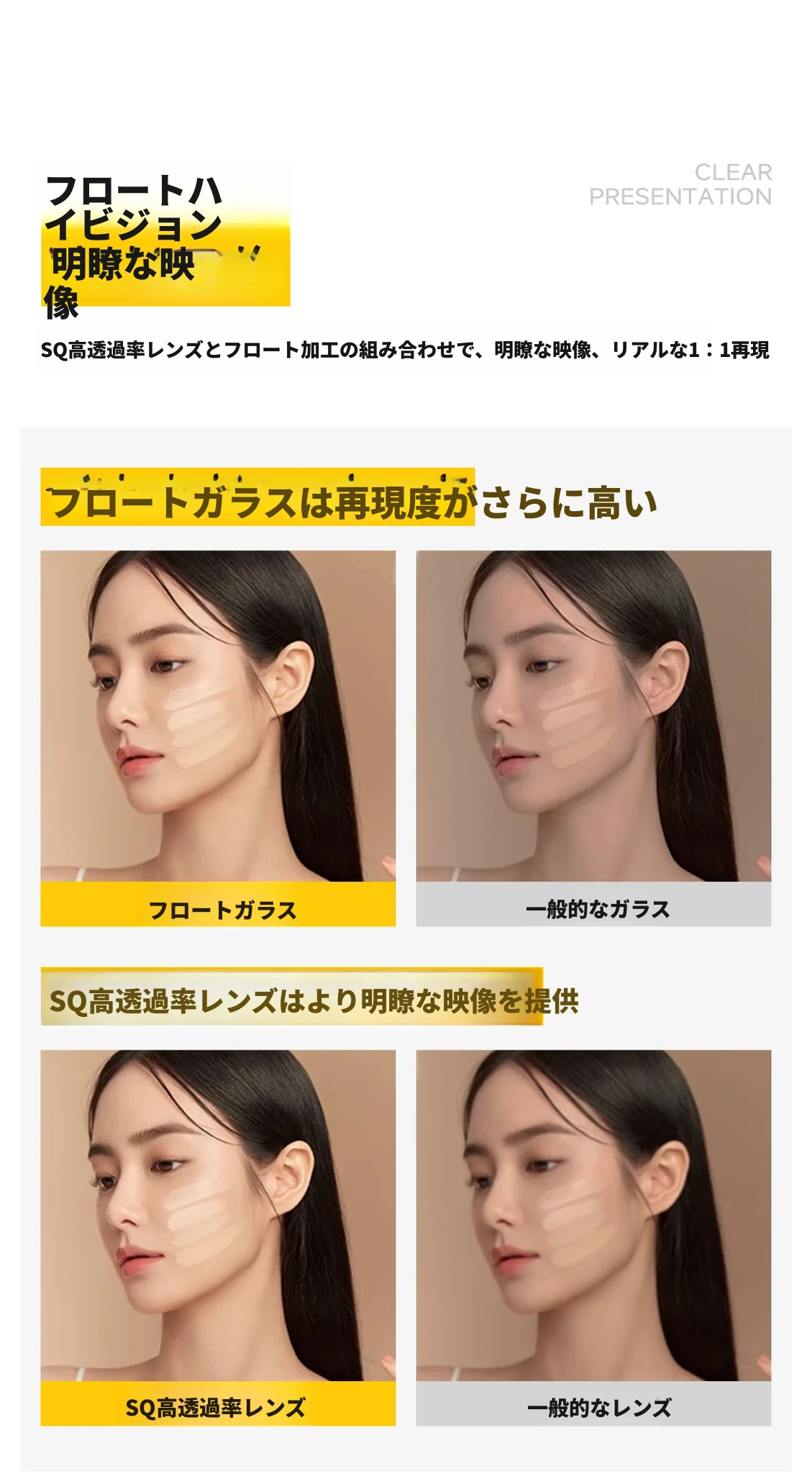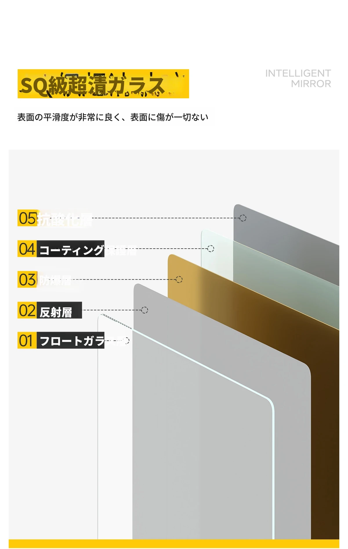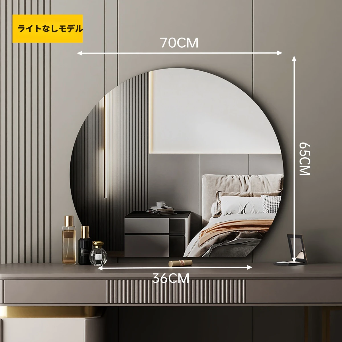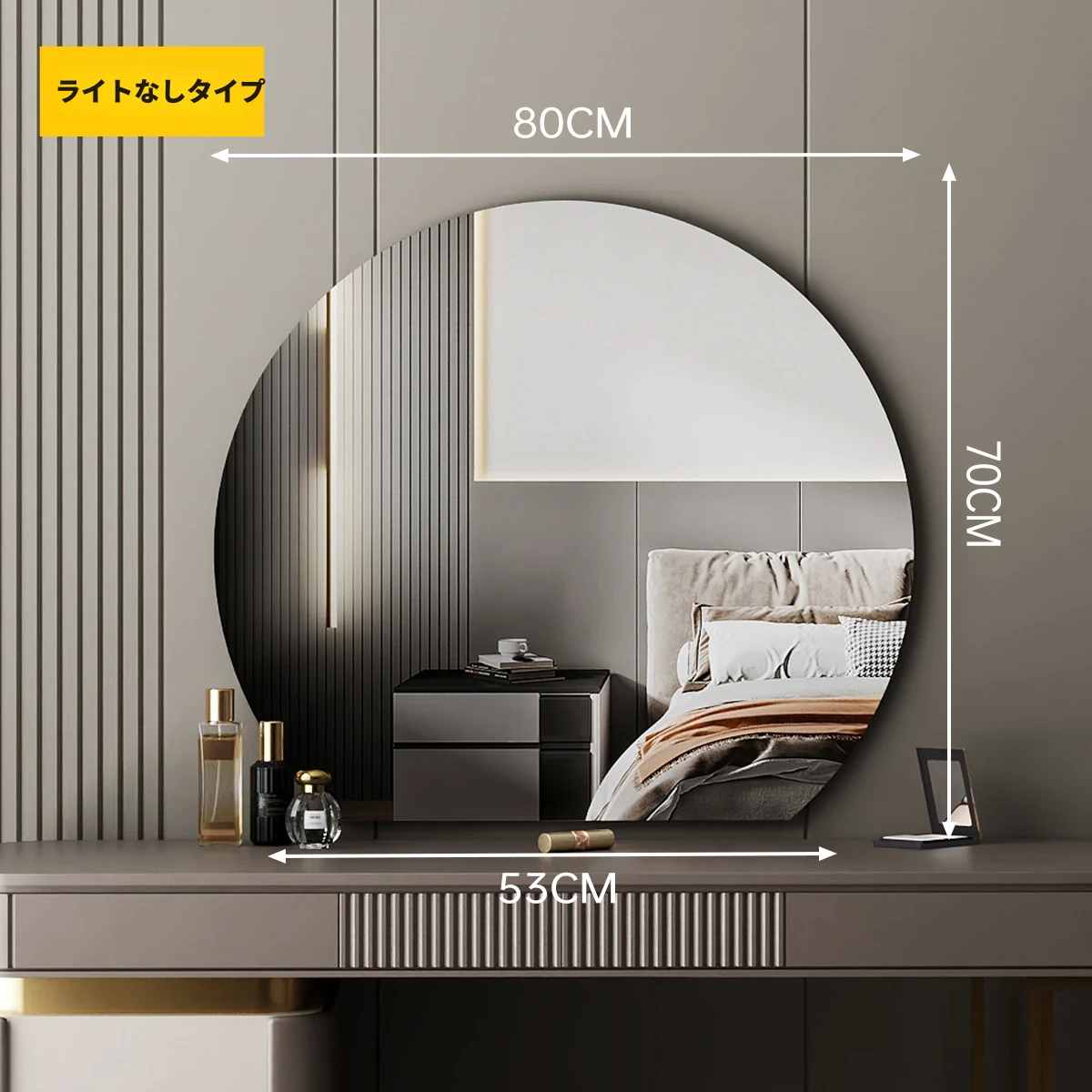 【ライトなし】80cm高解像度ミラー(穴あけ不要)