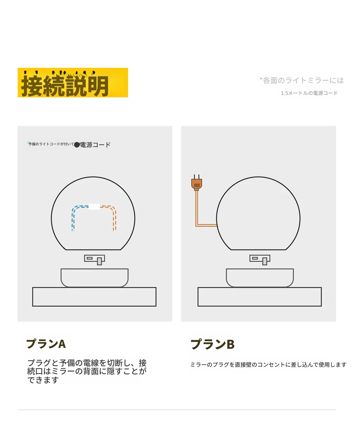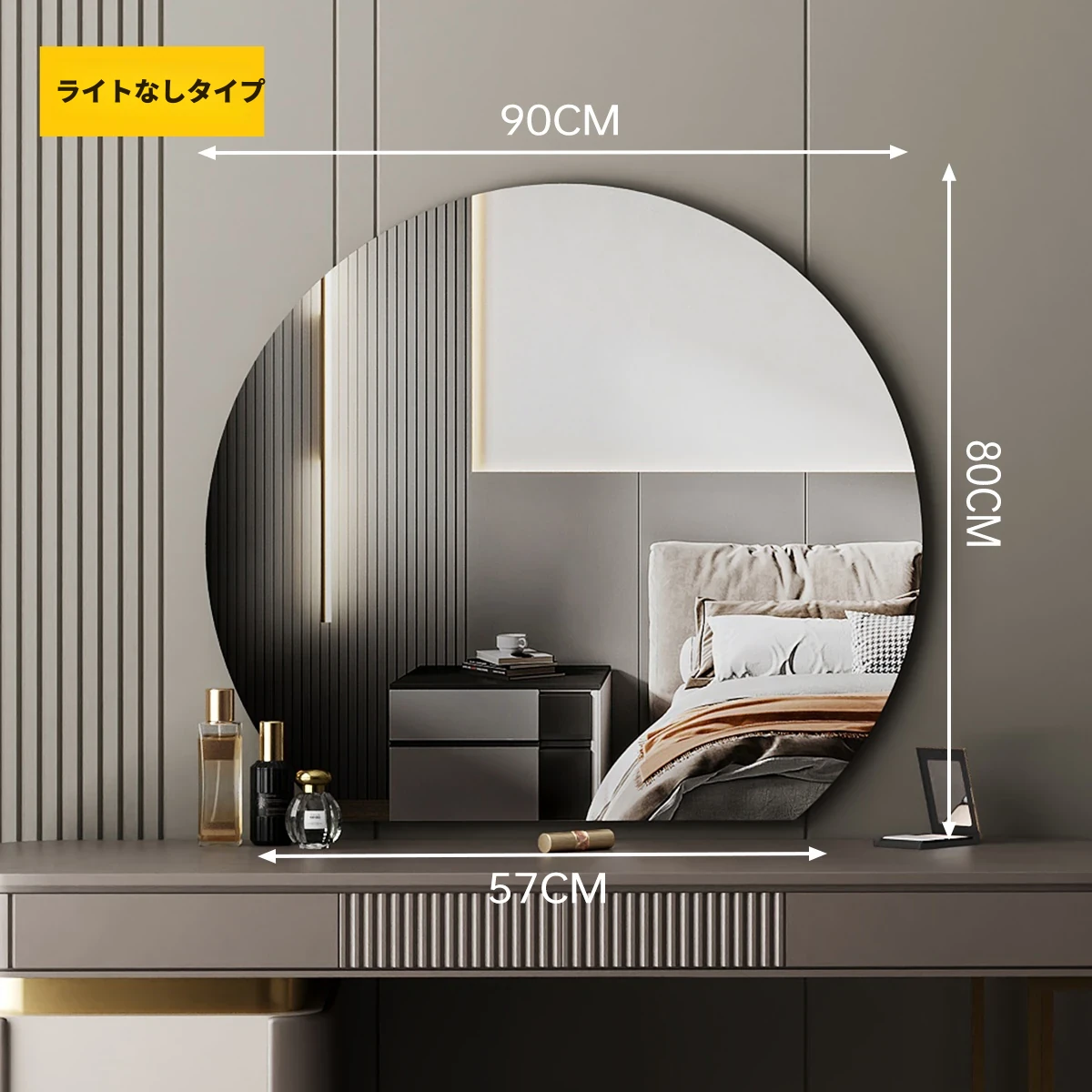 【ライトなし】90cm高解像度ミラー(穴あけ不要)