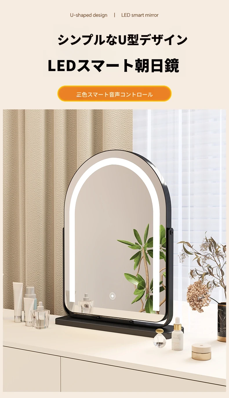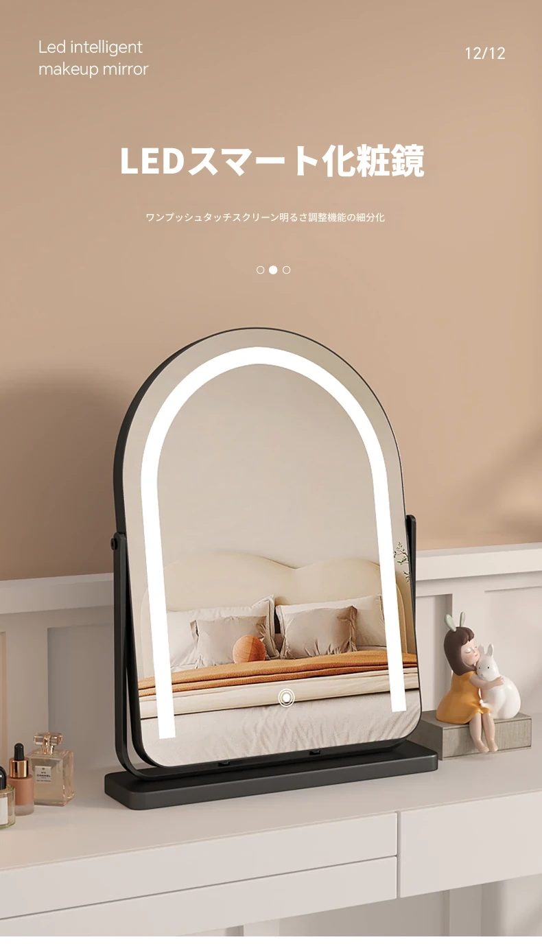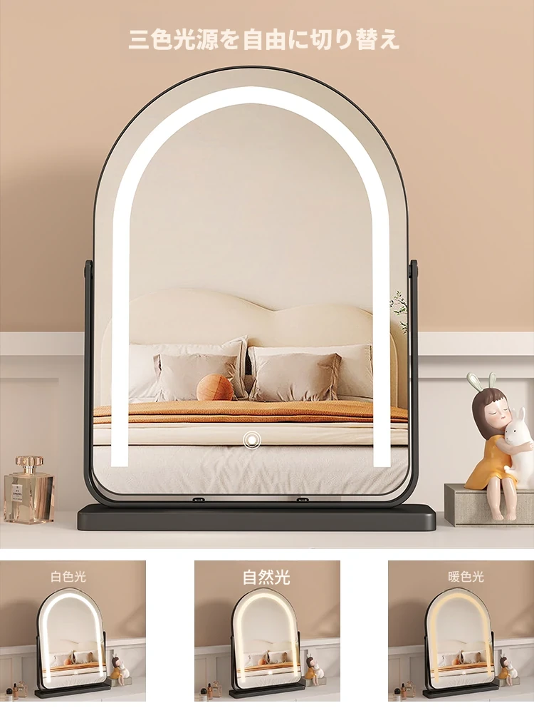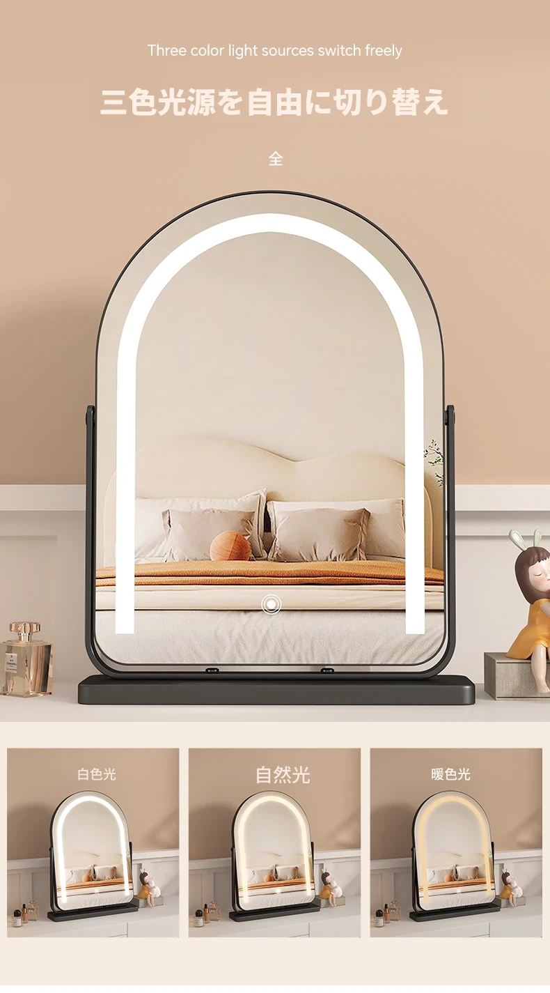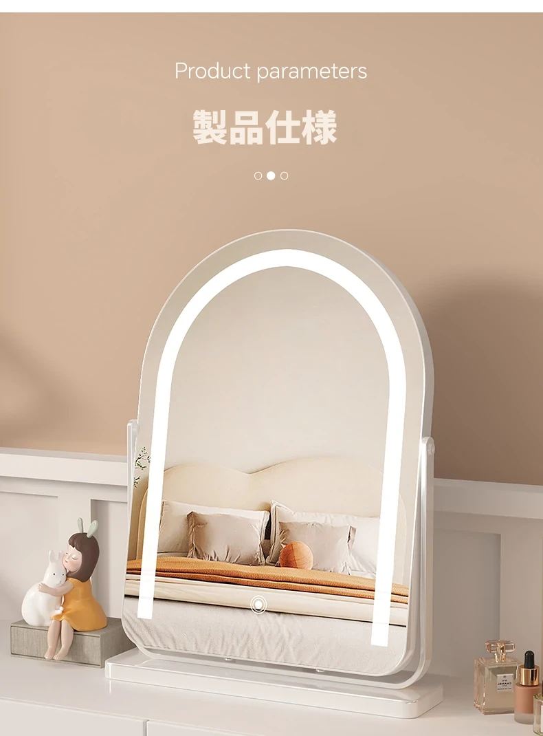 異形デザインの卓上化粧鏡 LEDライト付き!高級感あふれるスマートミラーで、主寝室のメイクアップを華やかに。おしゃれで機能的なアイテムで、毎日のビューティータイムを特別なものに。