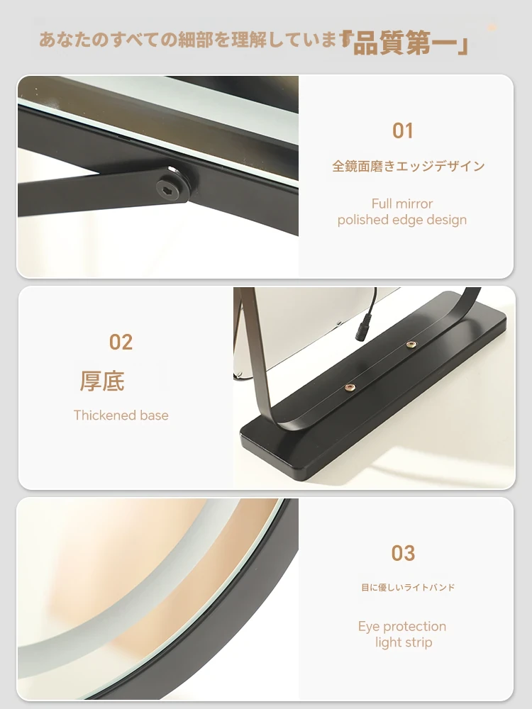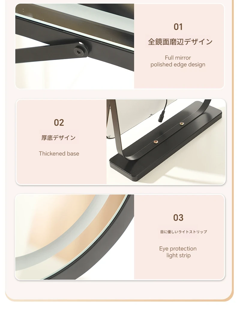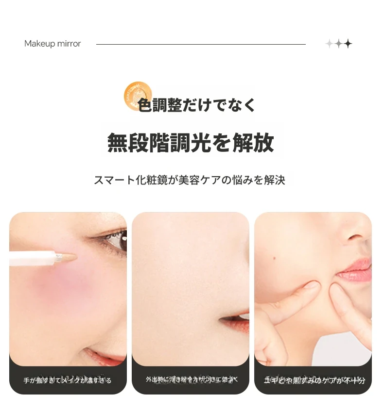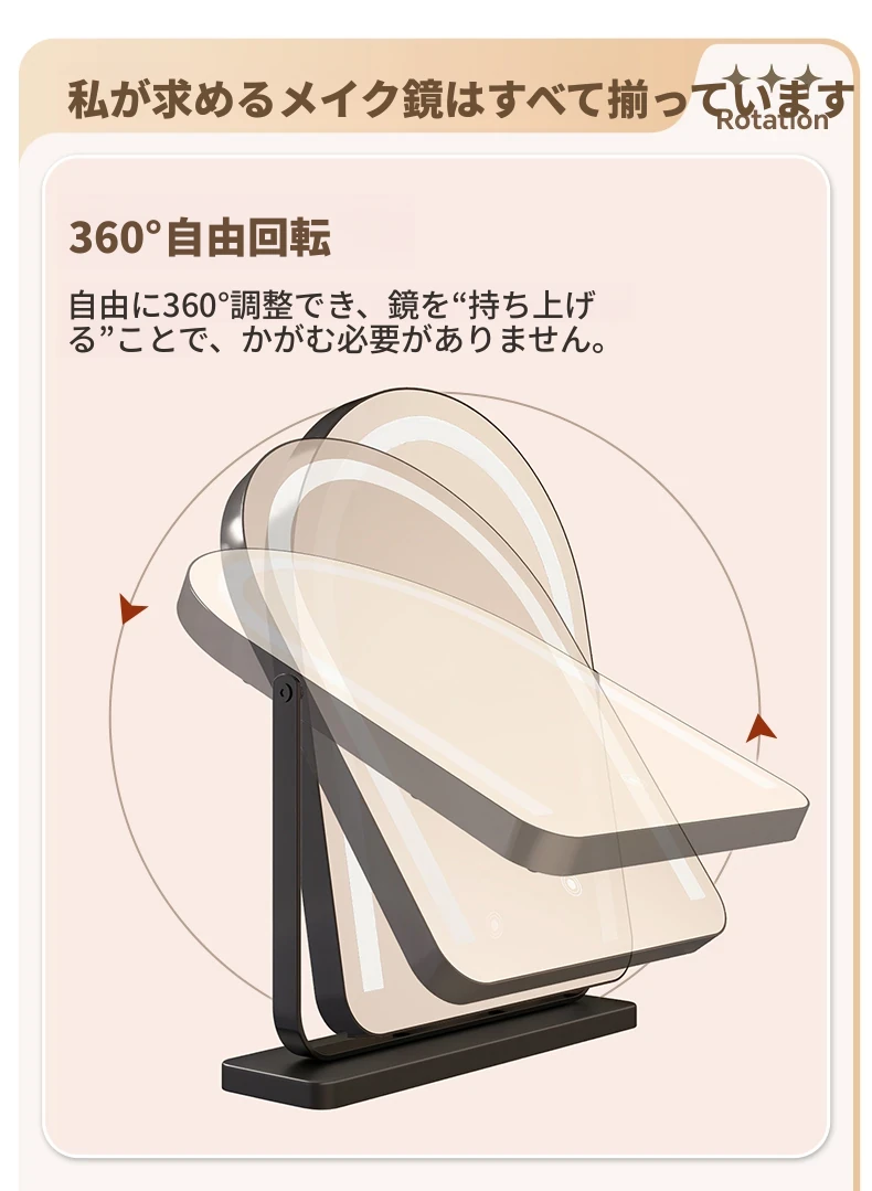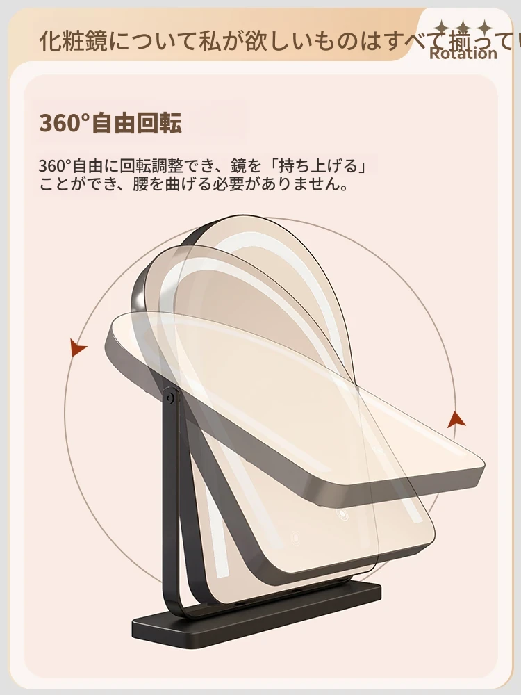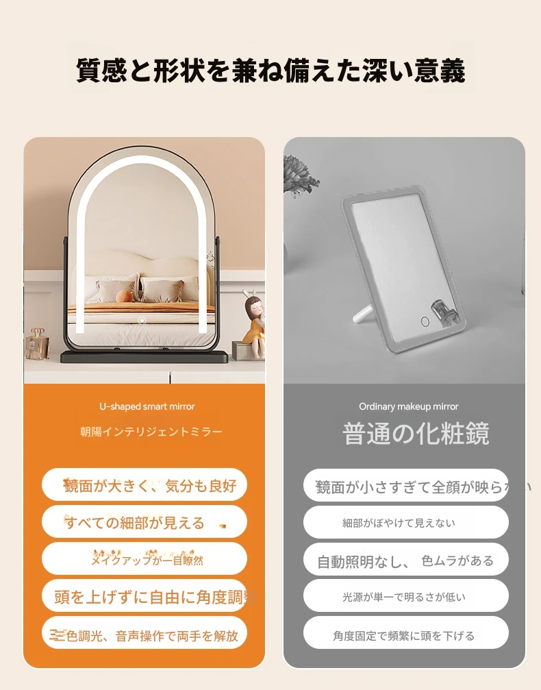 異形デザインの卓上化粧鏡 LEDライト付き!高級感あふれるスマートミラーで、主寝室のメイクアップを華やかに。おしゃれで機能的なアイテムで、毎日のビューティータイムを特別なものに。