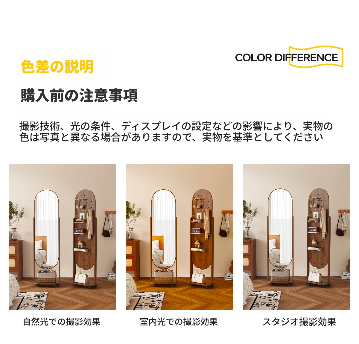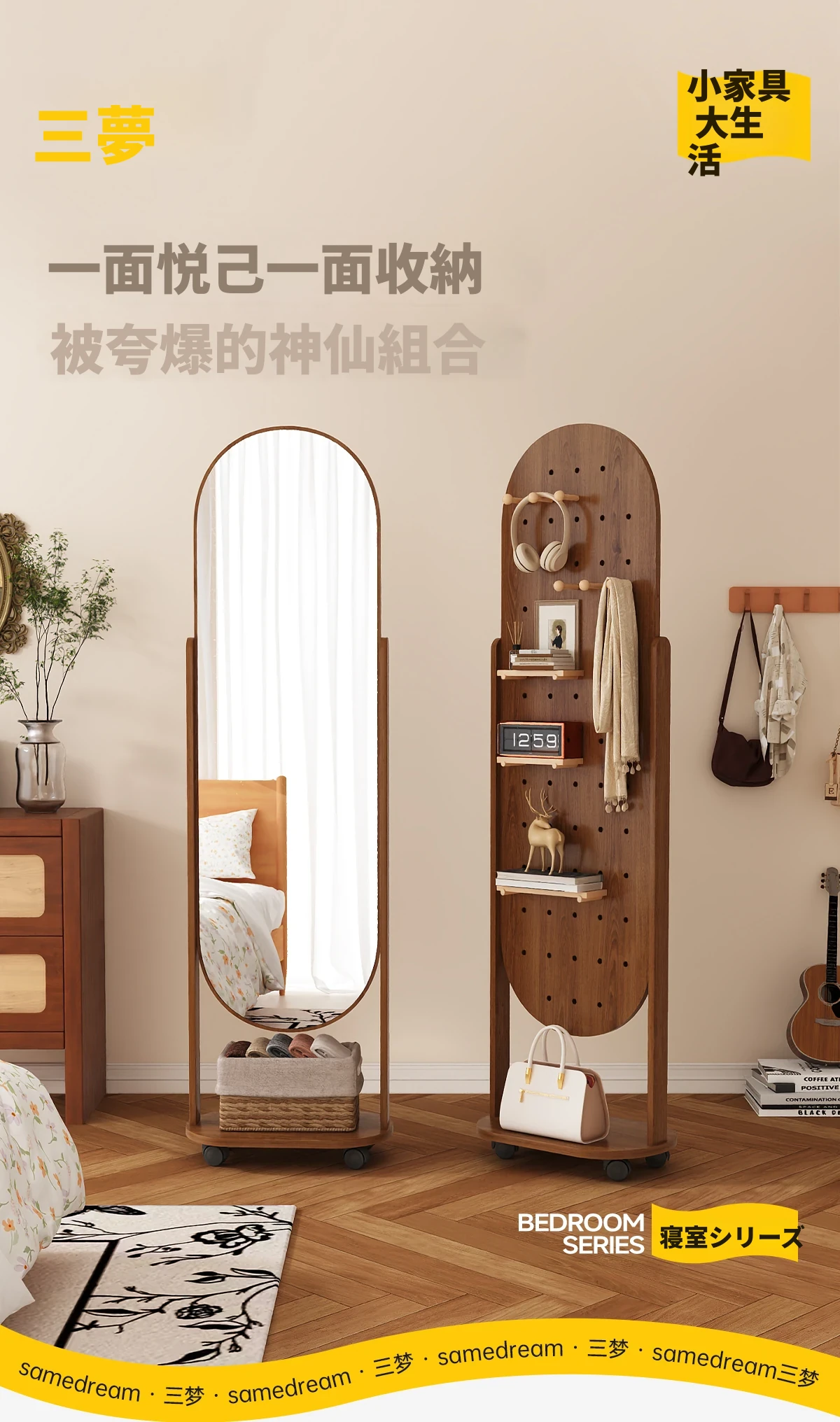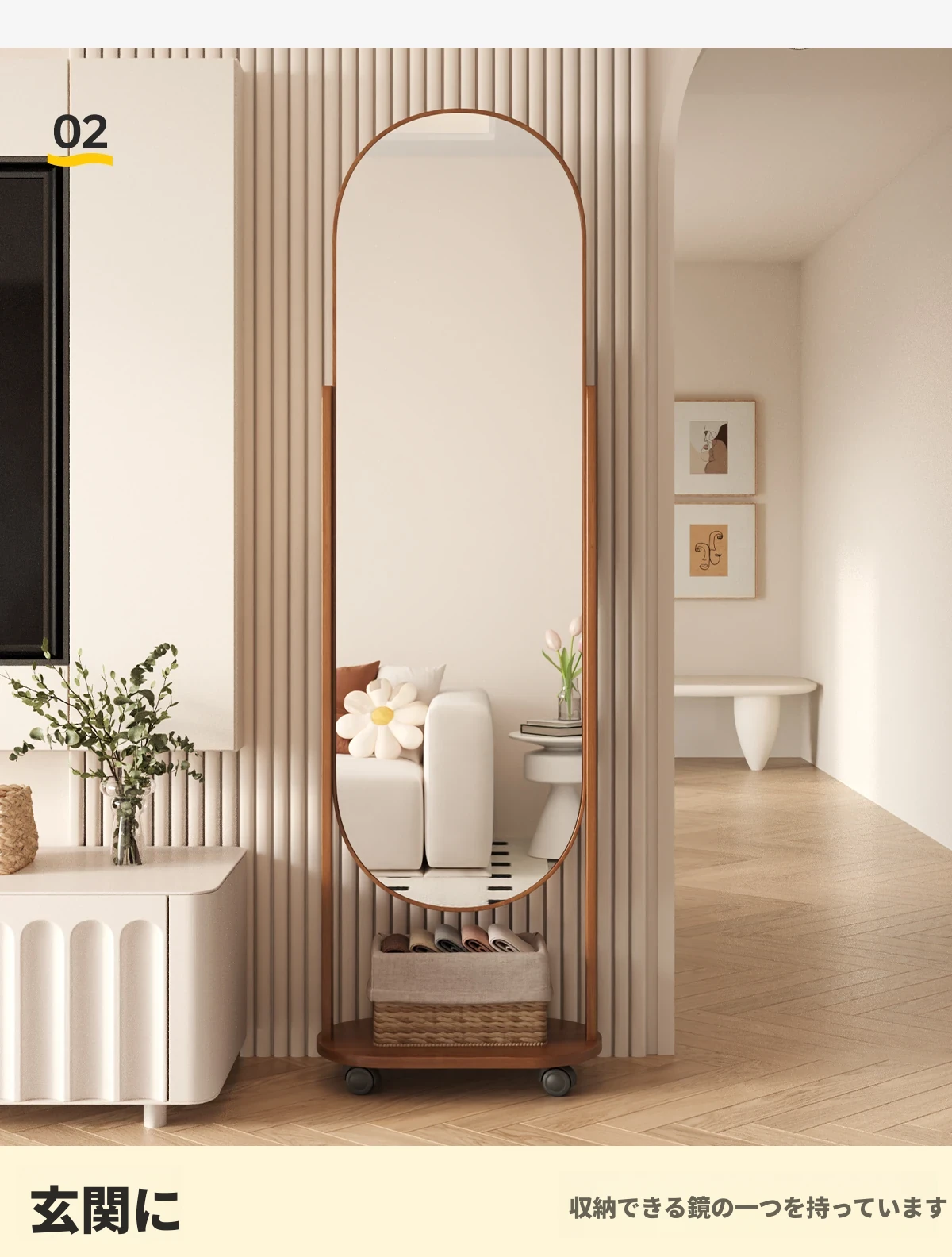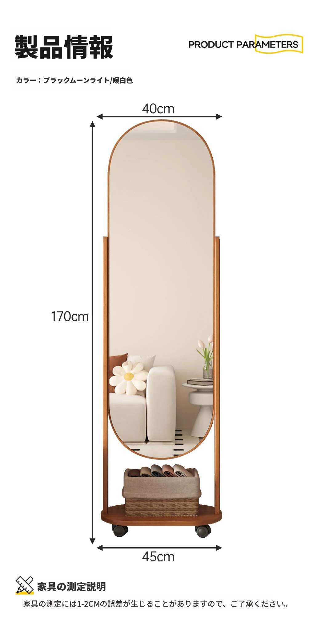 移動可能なドットボード全身鏡!衣類ハンガー付きのスタイリッシュな鏡で、あなたの寝室をおしゃれに演出。360度回転でどこでも試着可能、便利な衣服収納スペース付き!自宅で簡単にスタイリングを楽しもう!