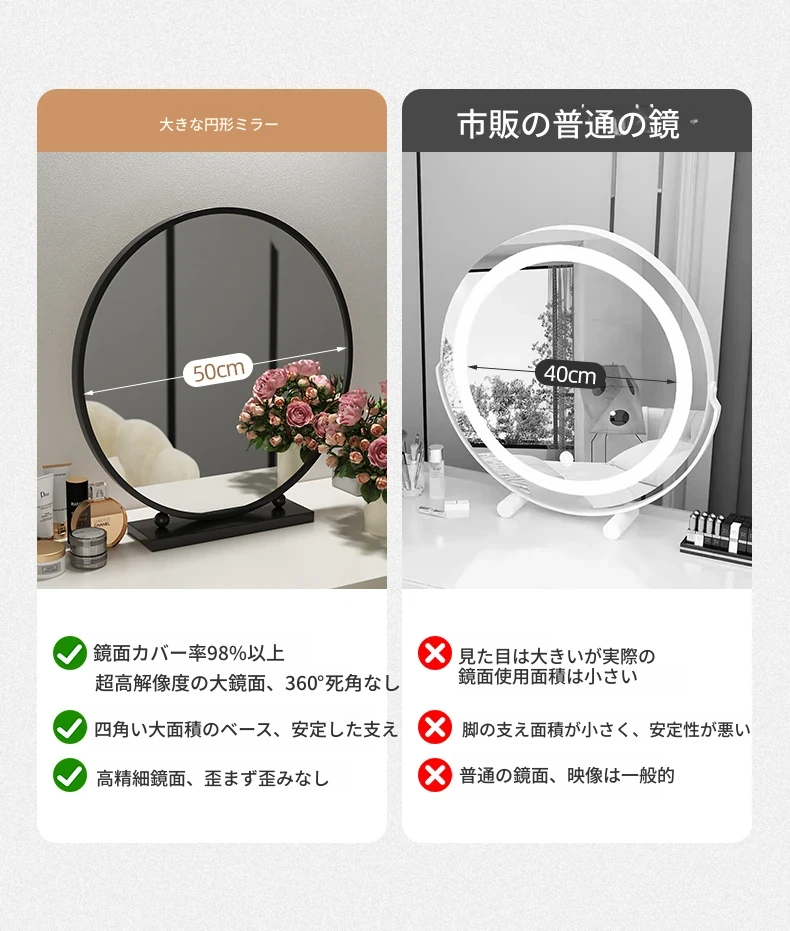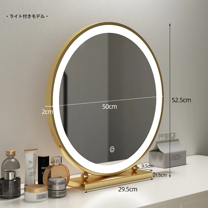 50CM【ゴールドライト付き固定電源タイプ】超大鏡面(三色ライト)