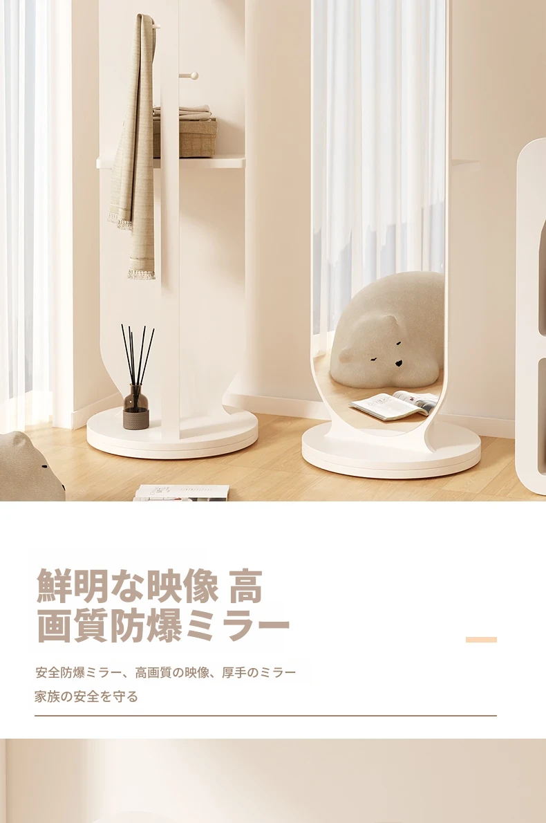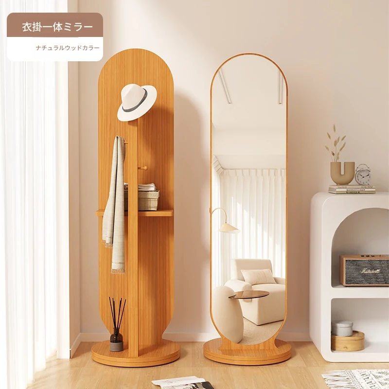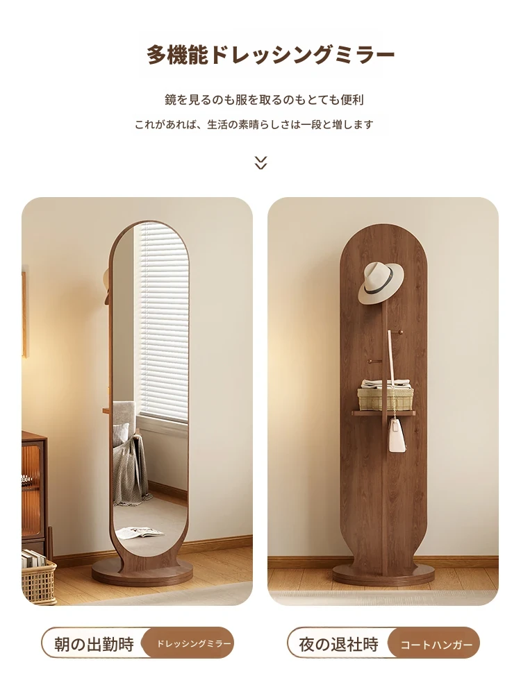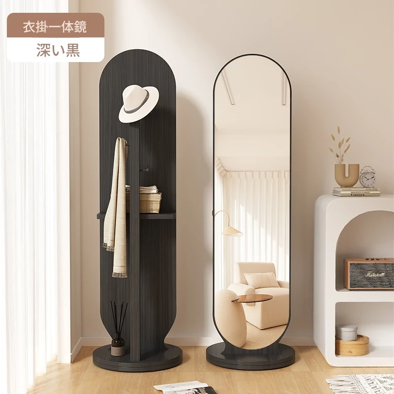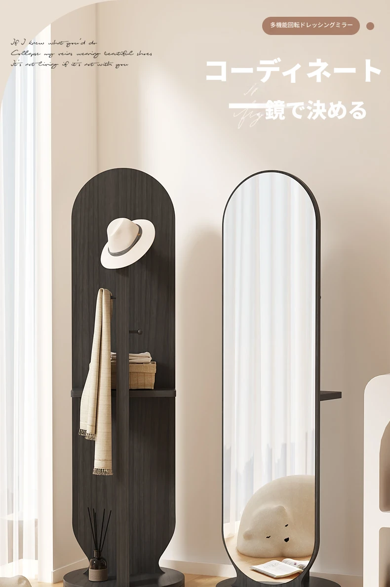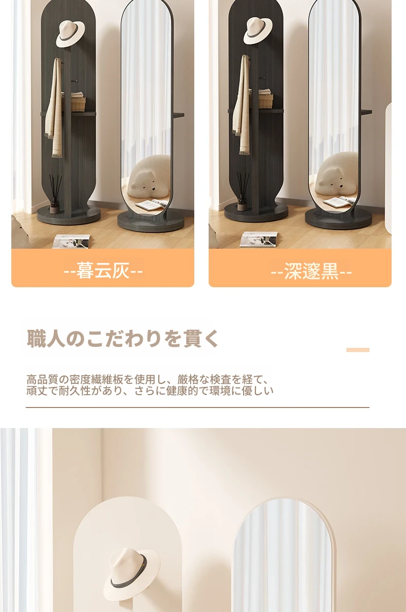 三夢の回転式全身鏡&ハンガーラック一体型!おしゃれで機能的な寝室用衣類キャビネット。移動も簡単、試着も楽々!あなたのスタイルを引き立てる必須アイテムです。
