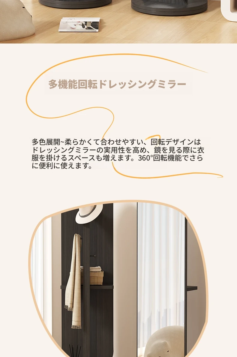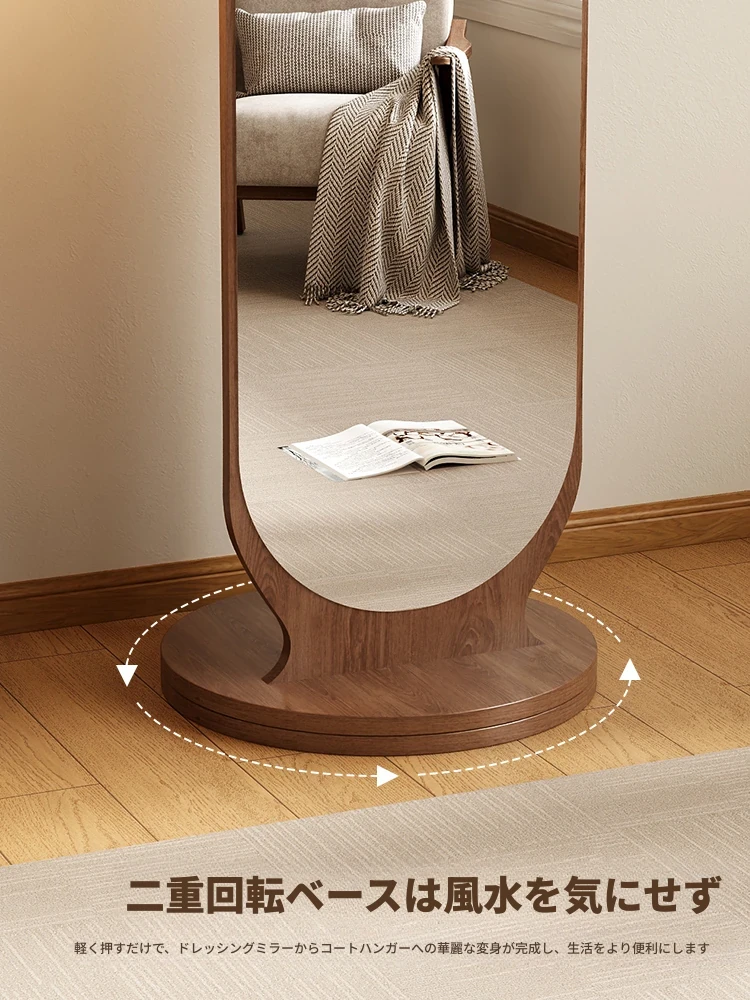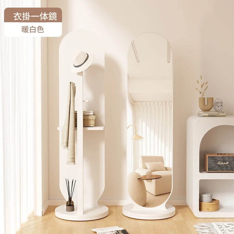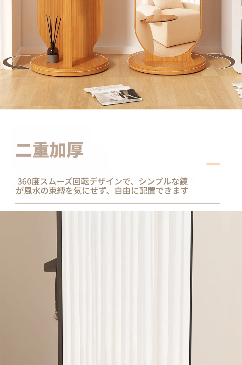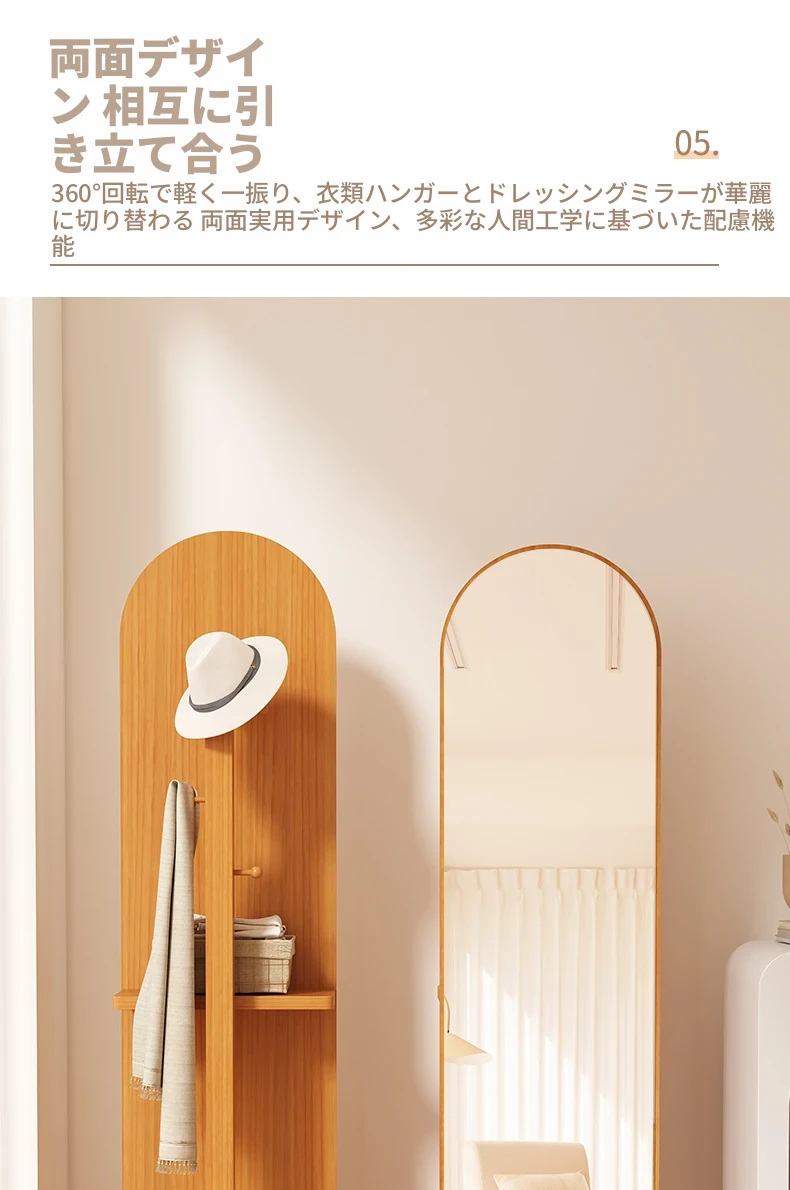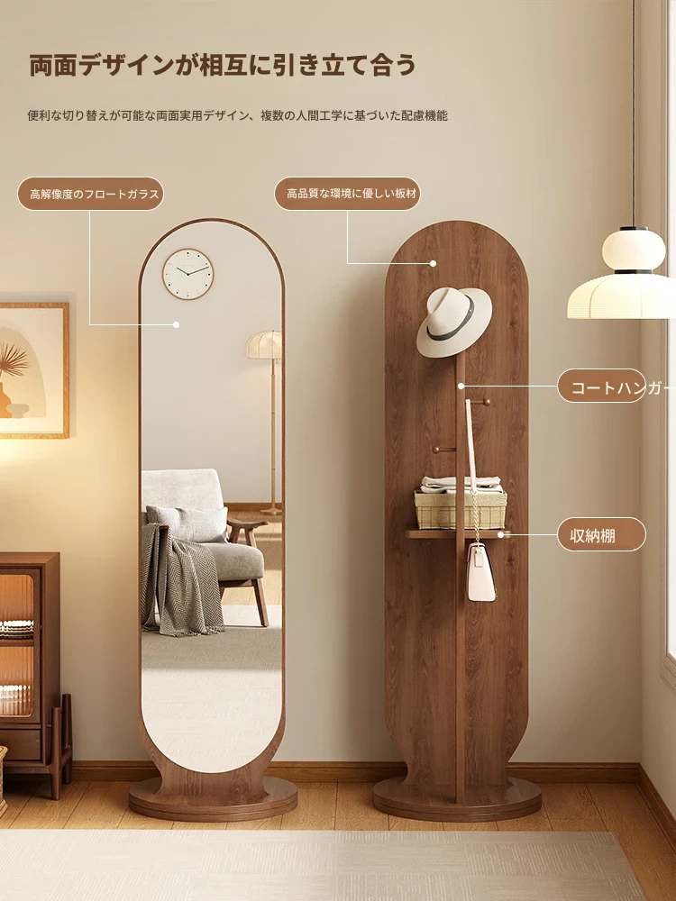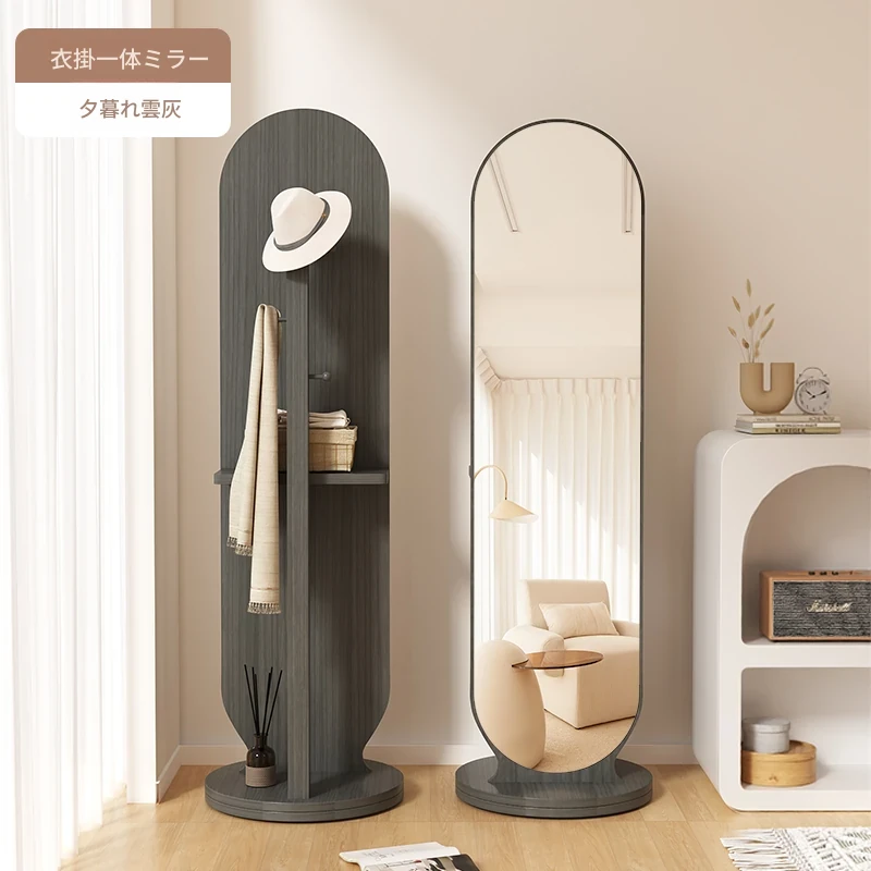 三夢の回転式全身鏡&ハンガーラック一体型!おしゃれで機能的な寝室用衣類キャビネット。移動も簡単、試着も楽々!あなたのスタイルを引き立てる必須アイテムです。