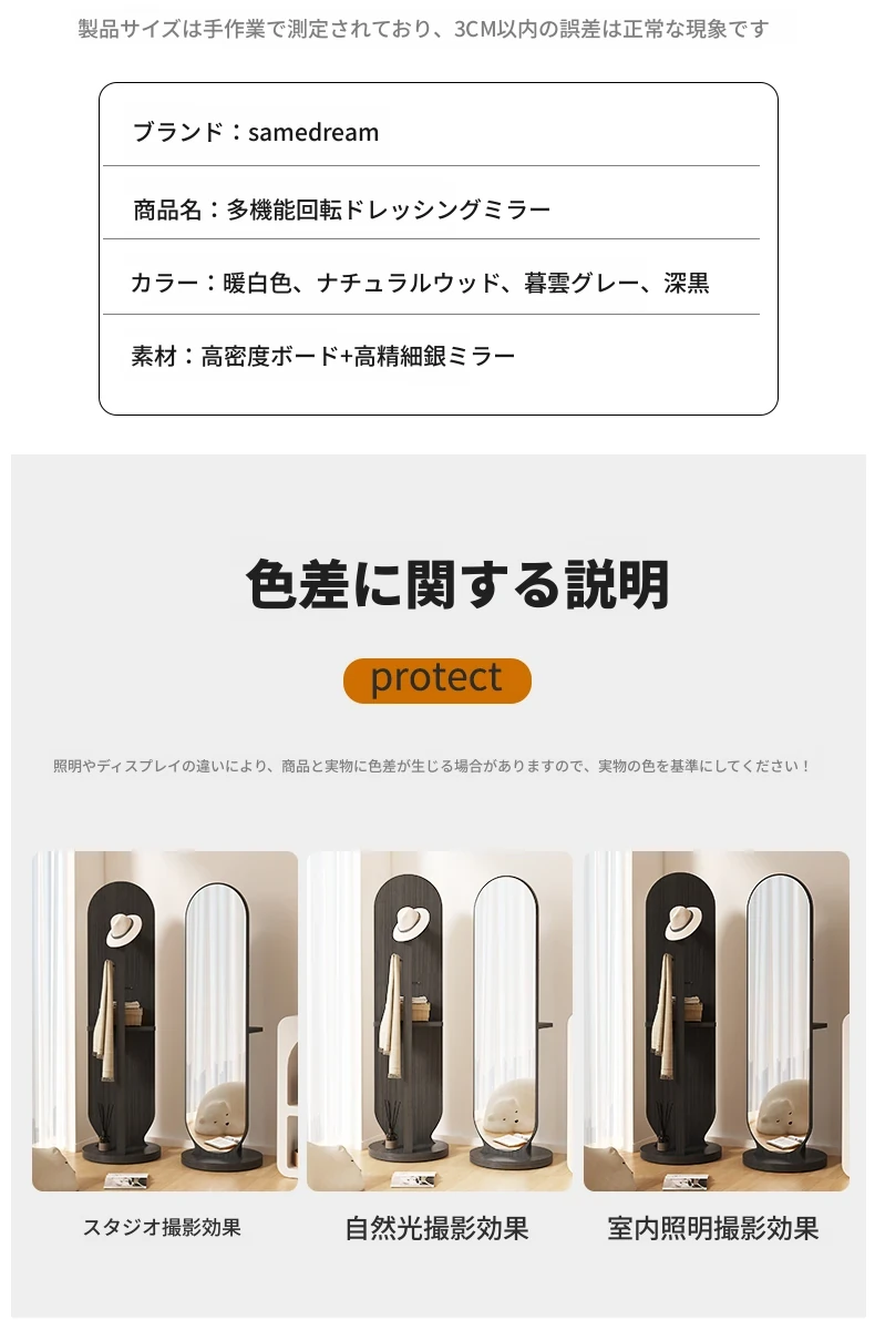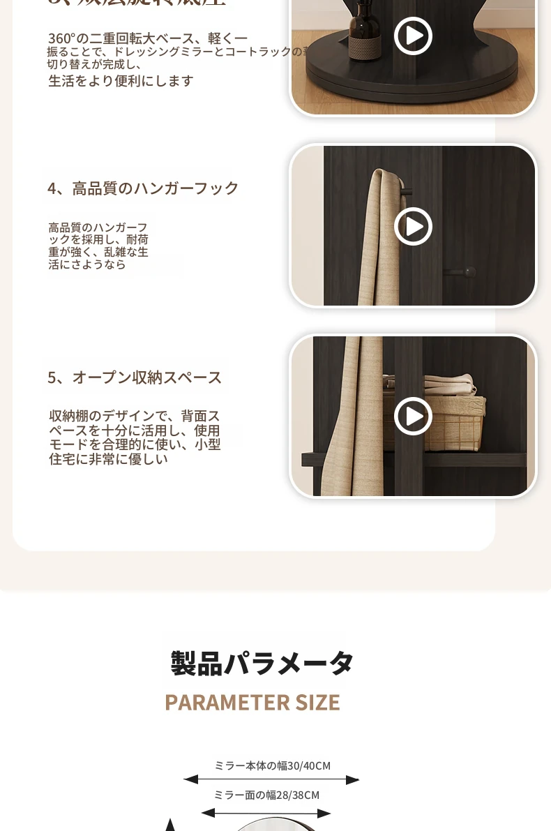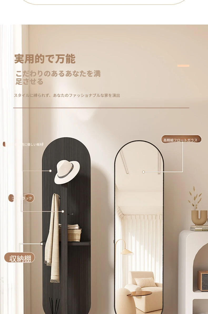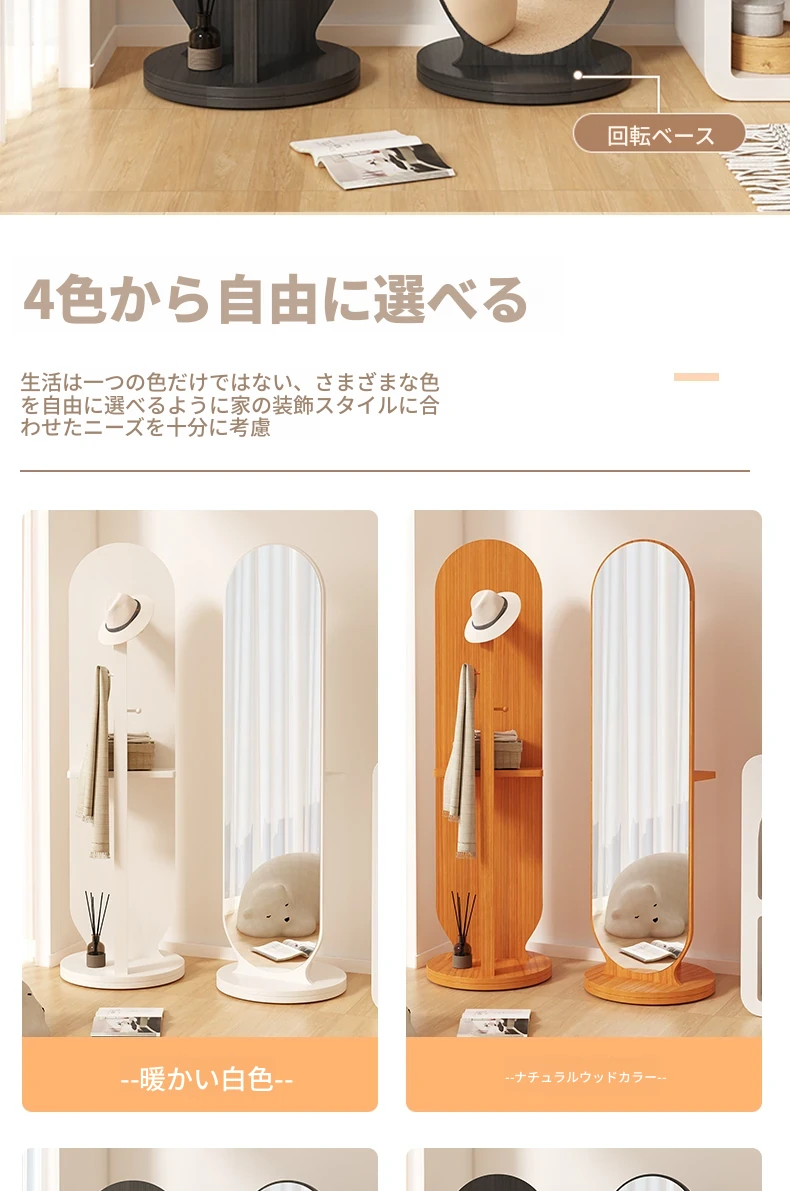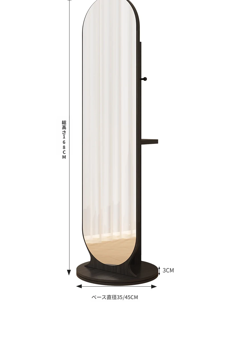 三夢の回転式全身鏡&ハンガーラック一体型!おしゃれで機能的な寝室用衣類キャビネット。移動も簡単、試着も楽々!あなたのスタイルを引き立てる必須アイテムです。