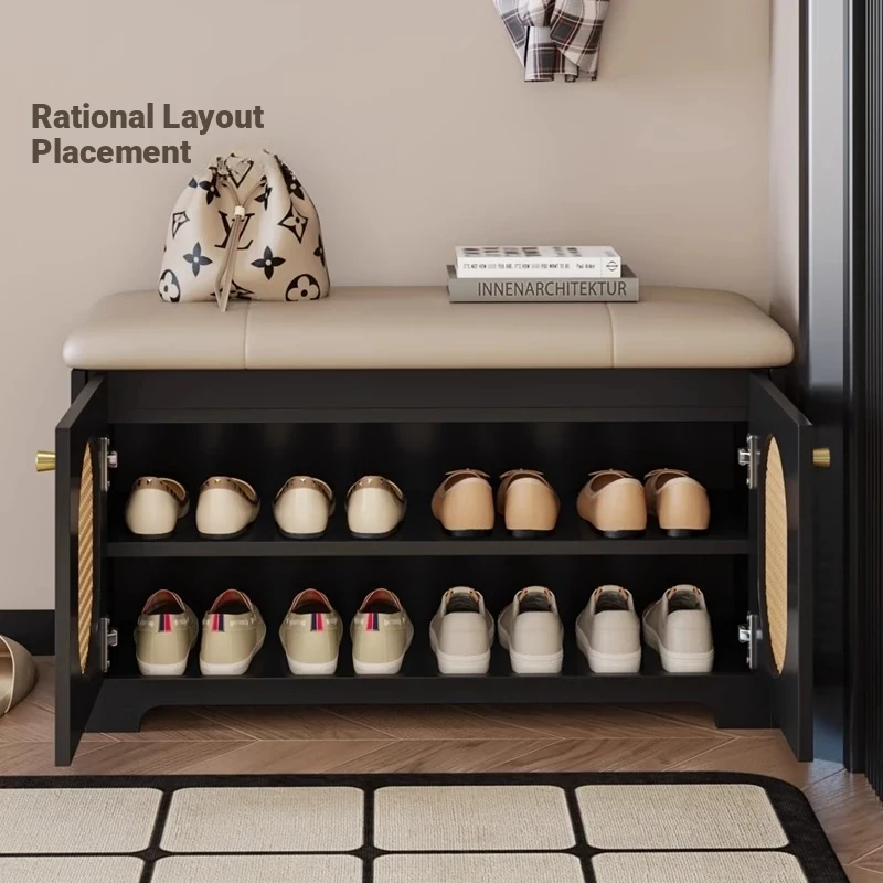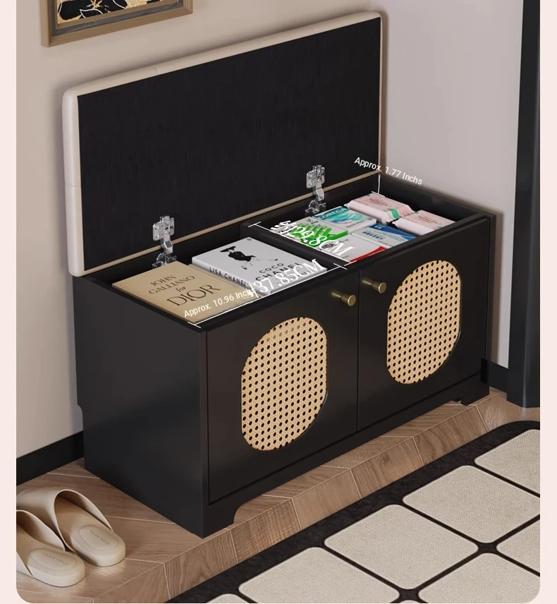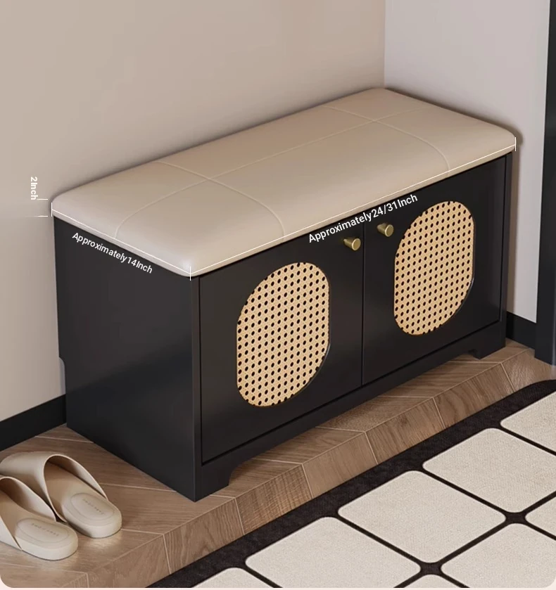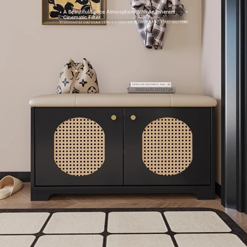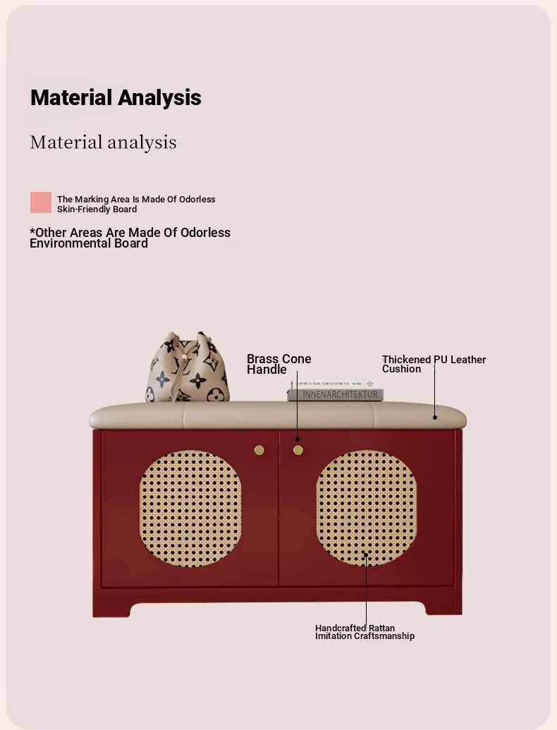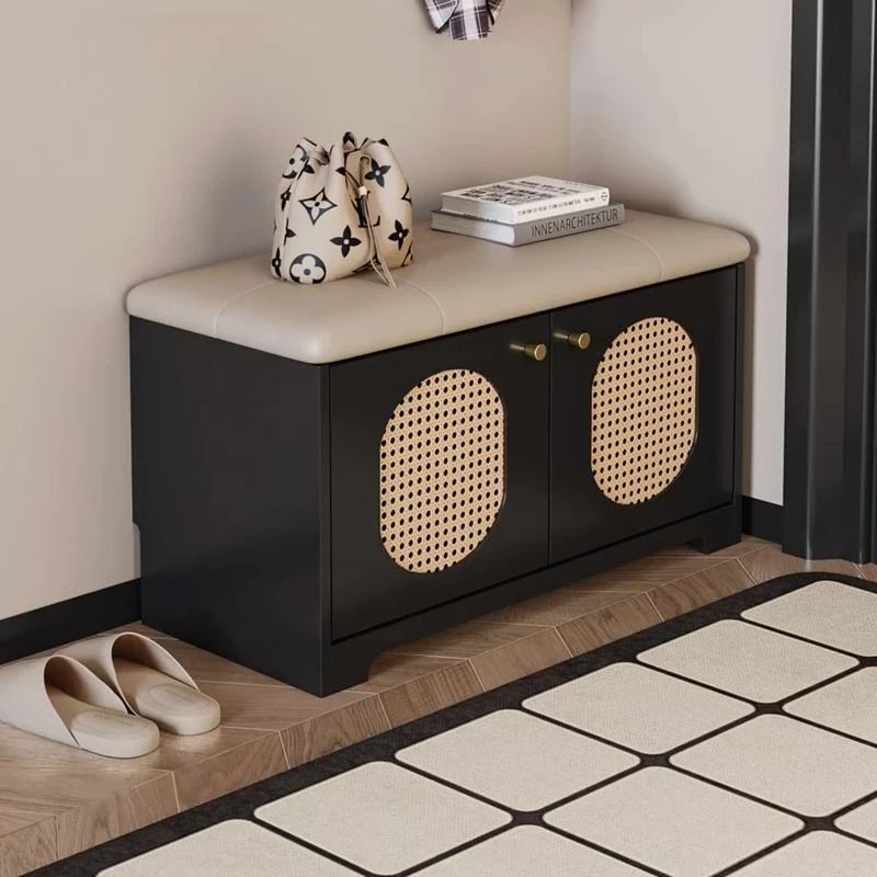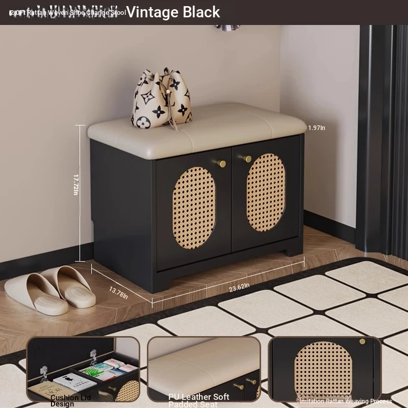 セントバーリーのアンティーク風ラタン収納スツール - おしゃれな玄関にぴったりなシューズベンチ!省スペースで実用的、魅力的なデザインでお部屋を彩ります。
