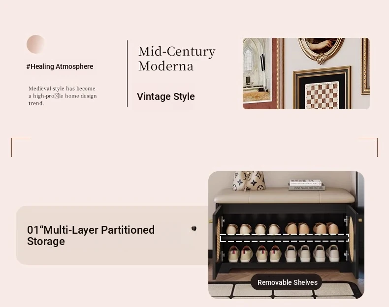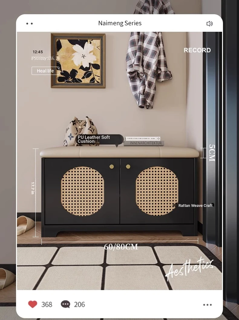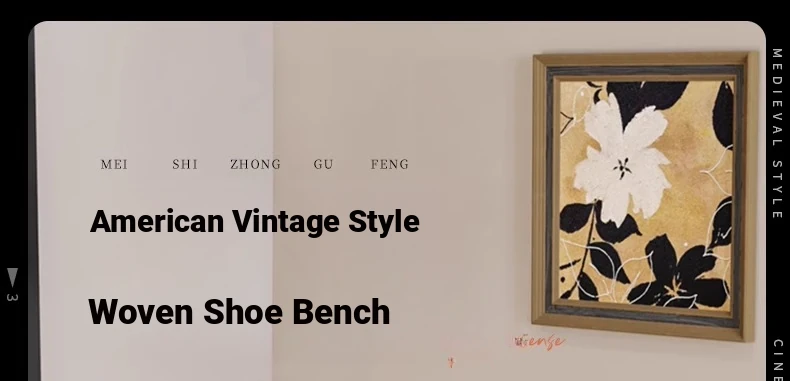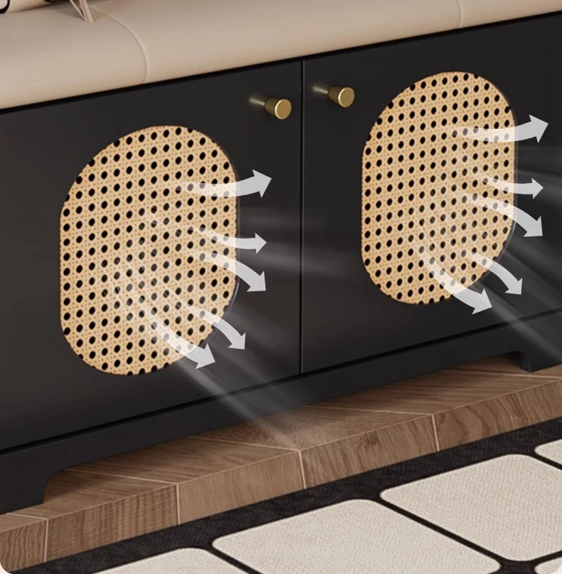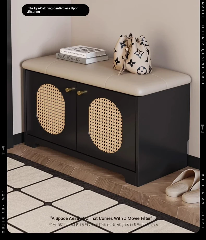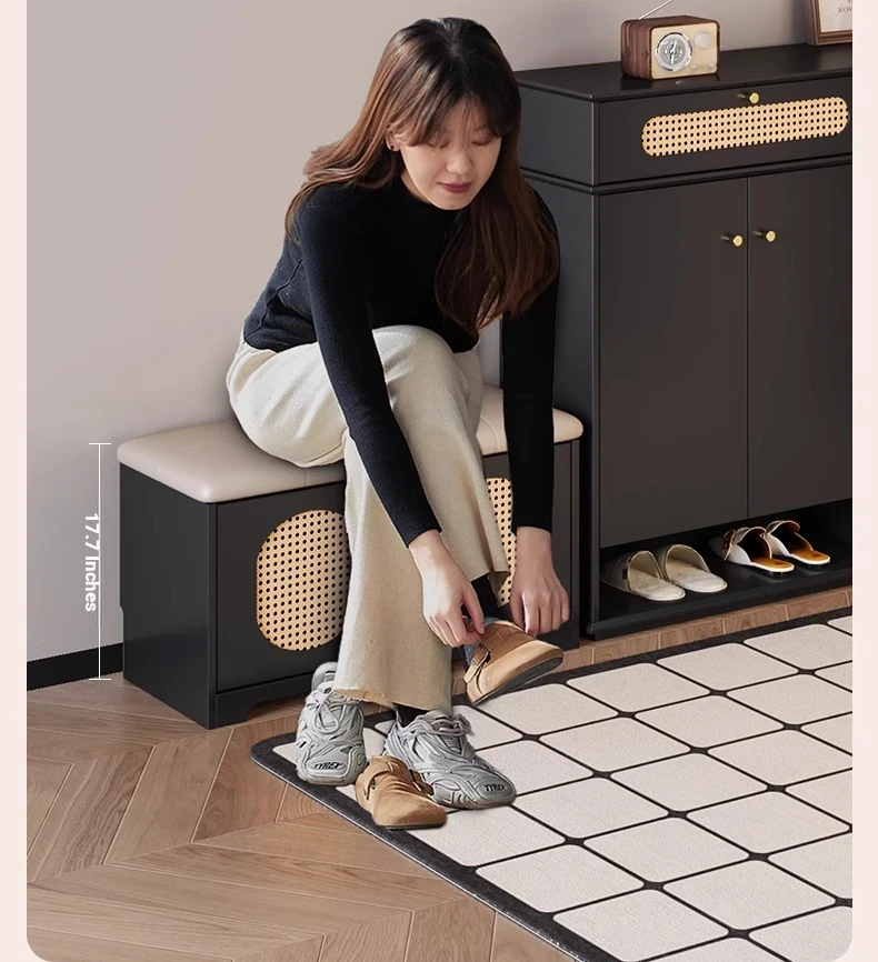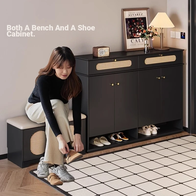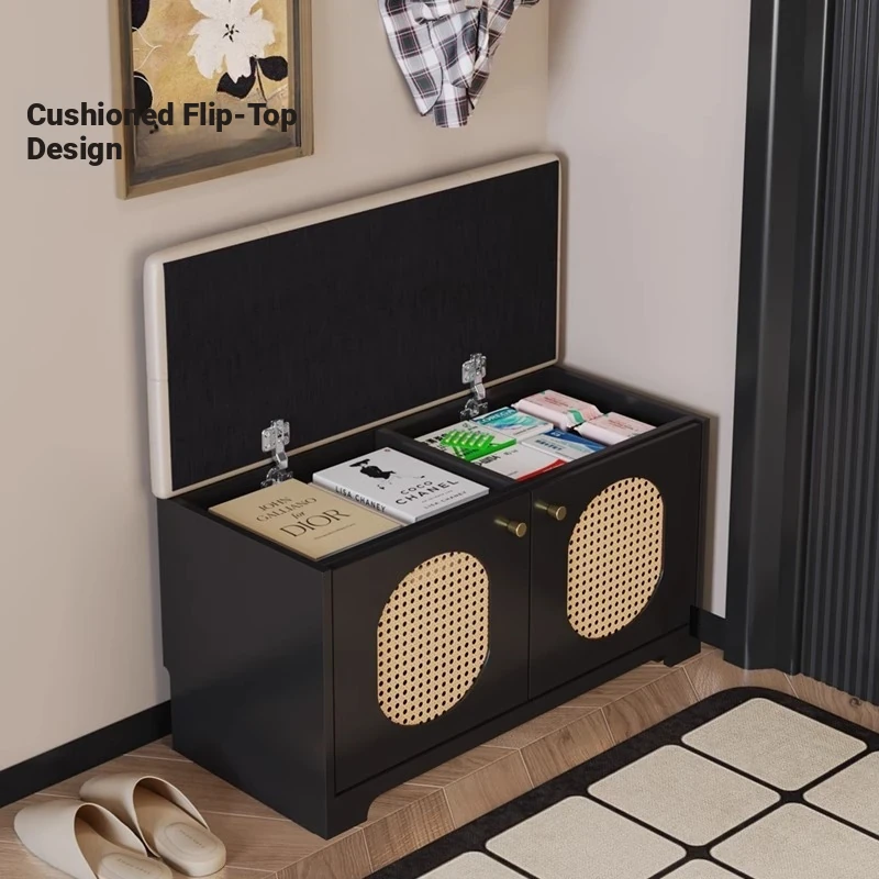 セントバーリーのアンティーク風ラタン収納スツール - おしゃれな玄関にぴったりなシューズベンチ!省スペースで実用的、魅力的なデザインでお部屋を彩ります。