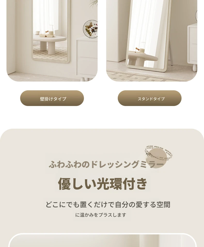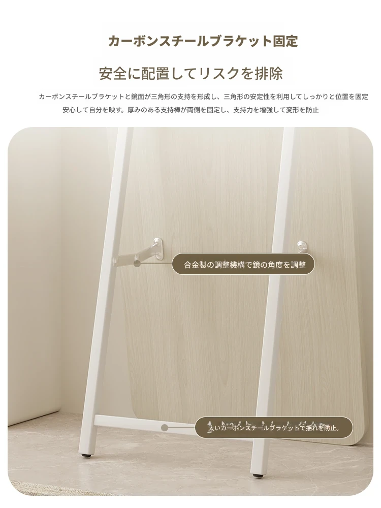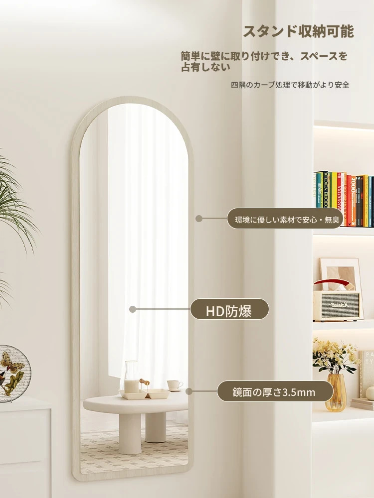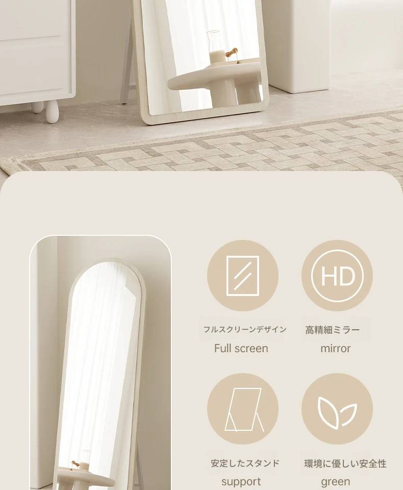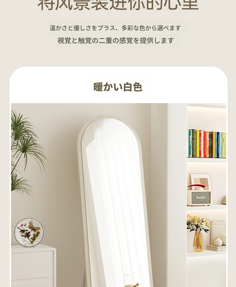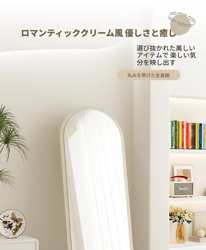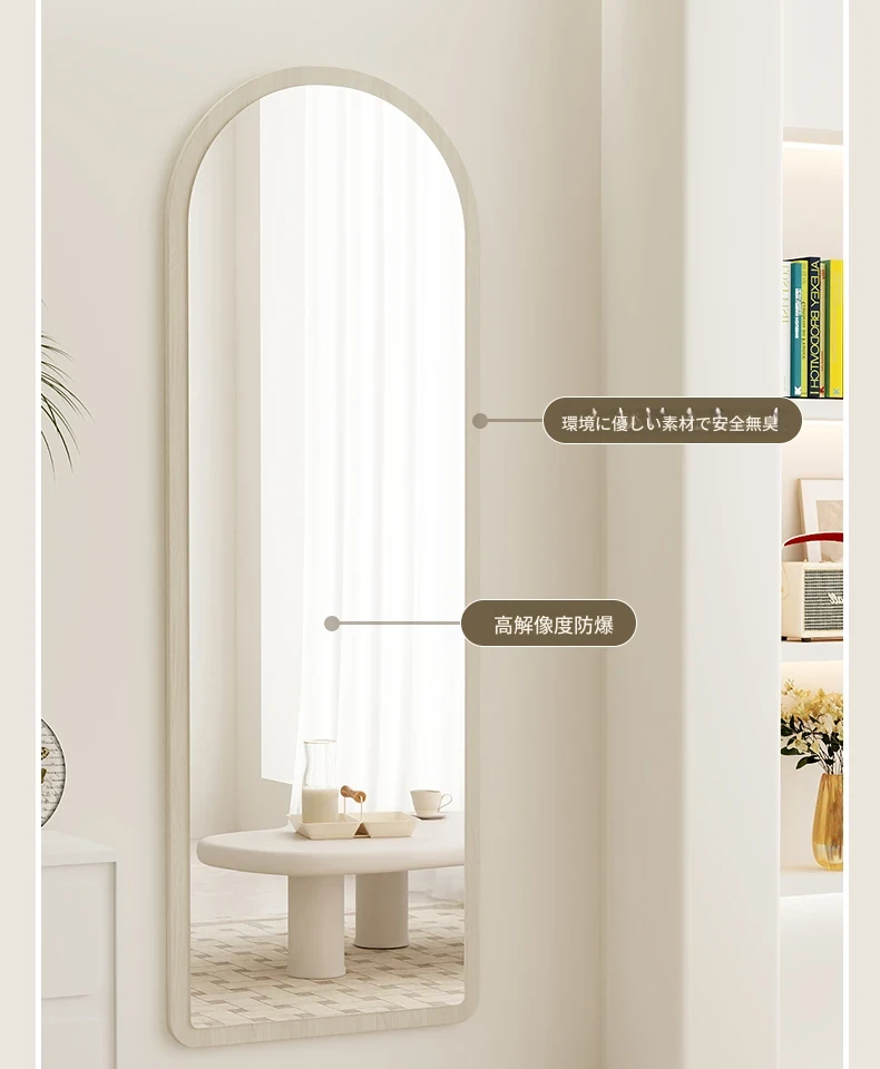 インフルエンサーおすすめ!おしゃれな全身鏡 自宅用フロアミラー 寝室用のコーディネート鏡 壁掛け試着ミラー クリーム風の高画質ミラーで、毎日のスタイリングを楽しもう!