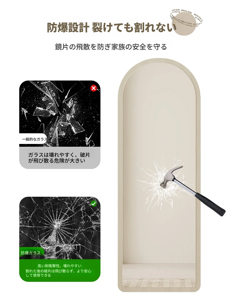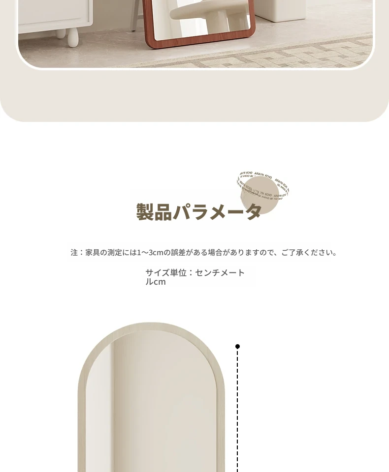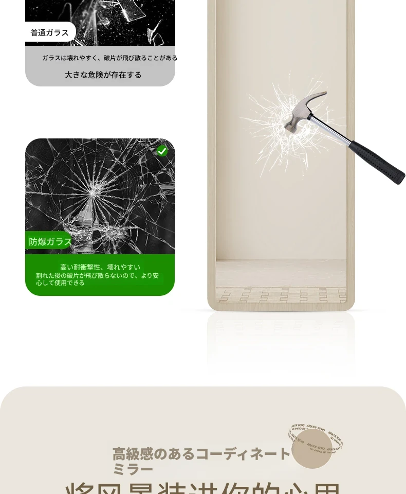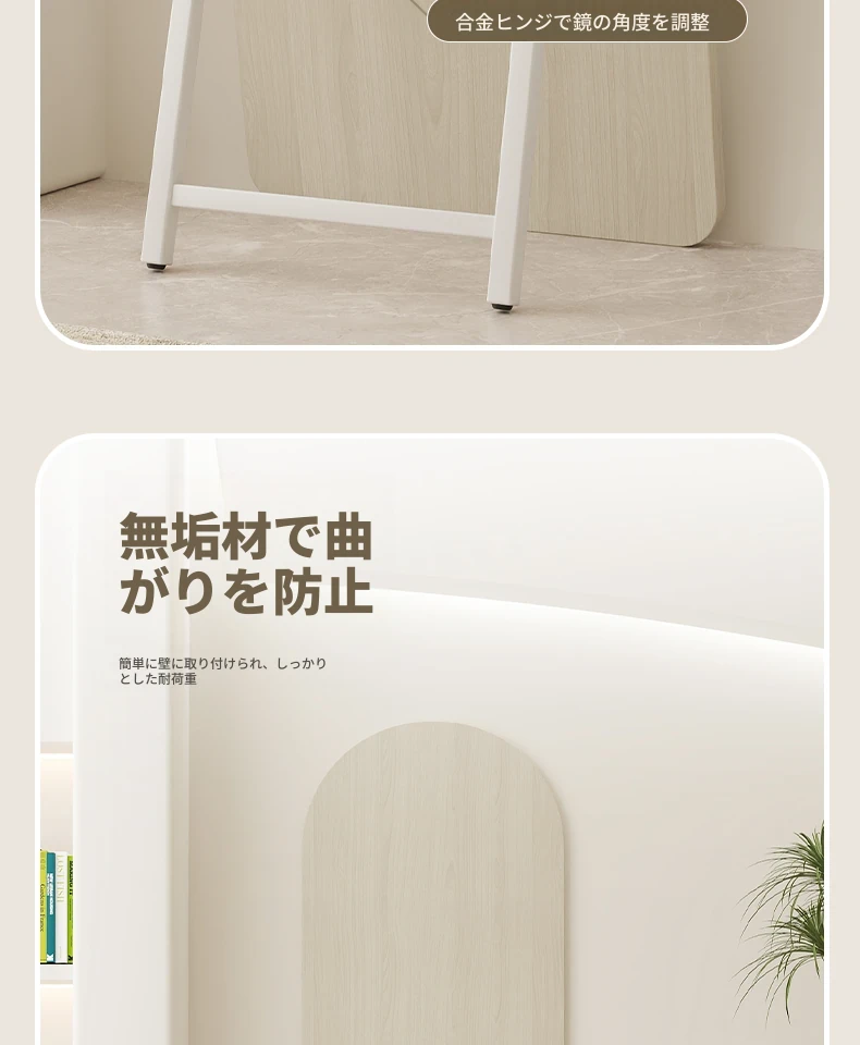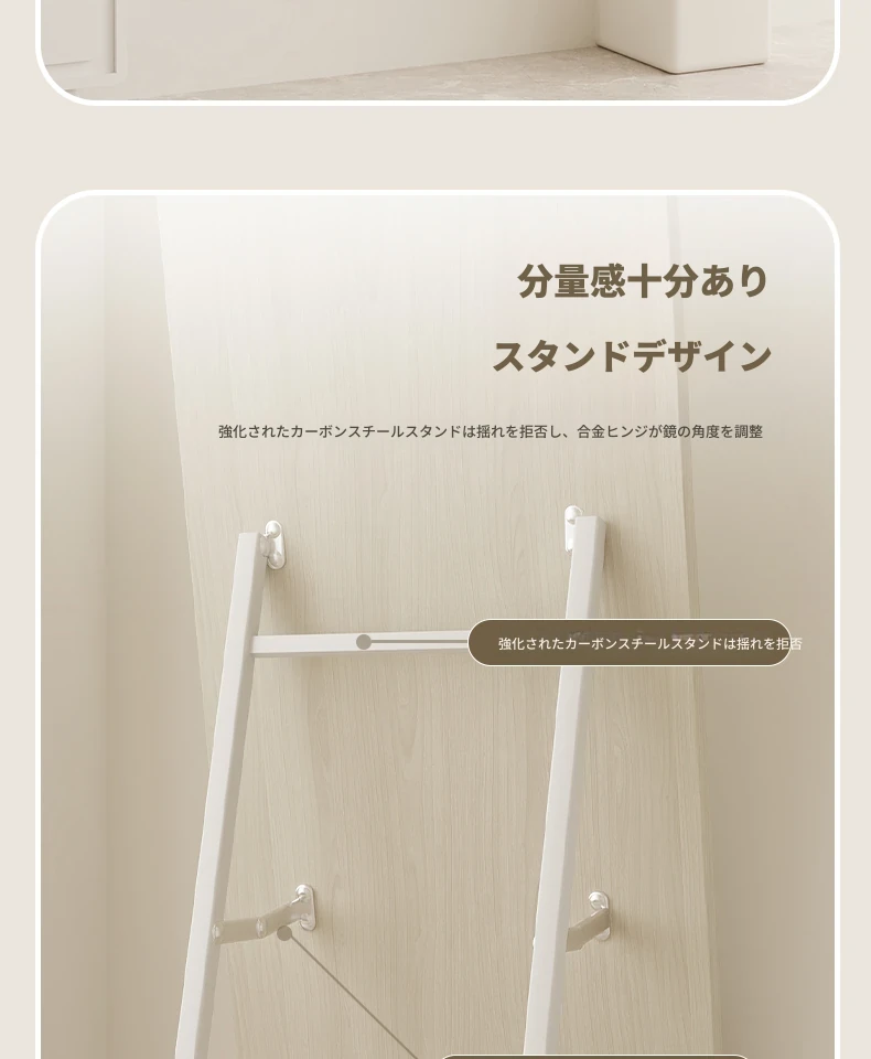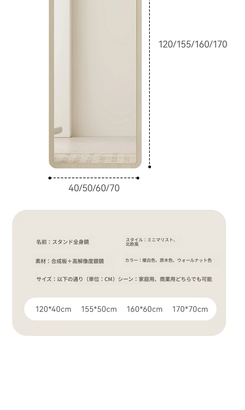 インフルエンサーおすすめ!おしゃれな全身鏡 自宅用フロアミラー 寝室用のコーディネート鏡 壁掛け試着ミラー クリーム風の高画質ミラーで、毎日のスタイリングを楽しもう!