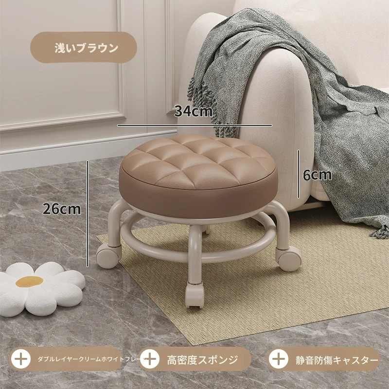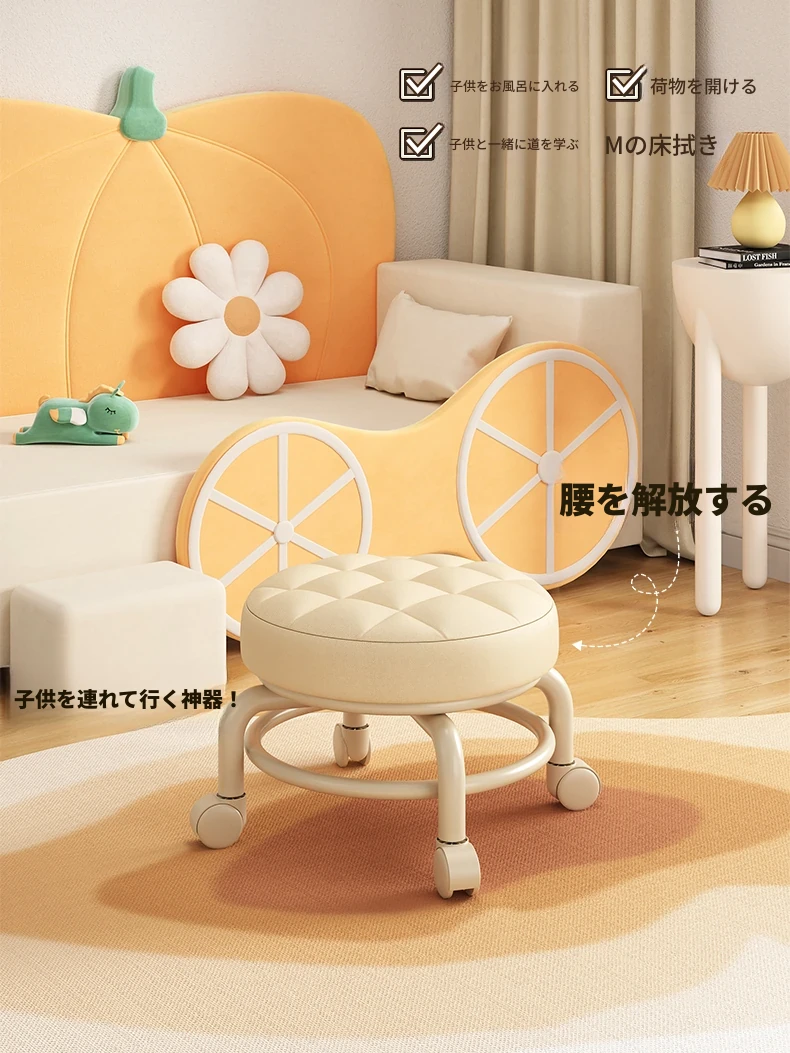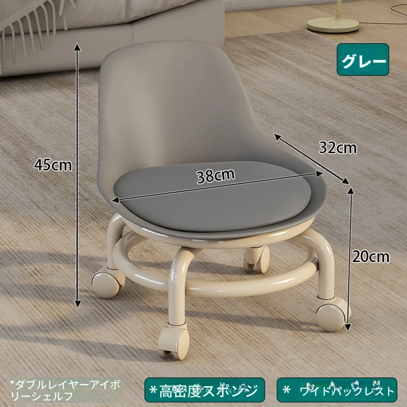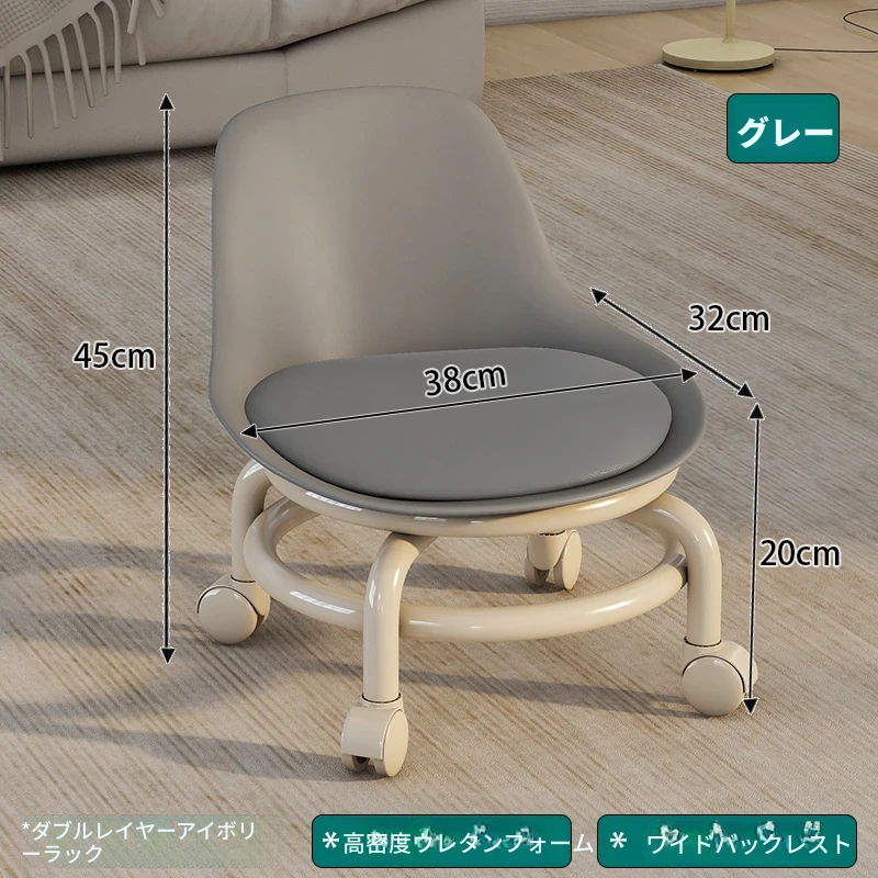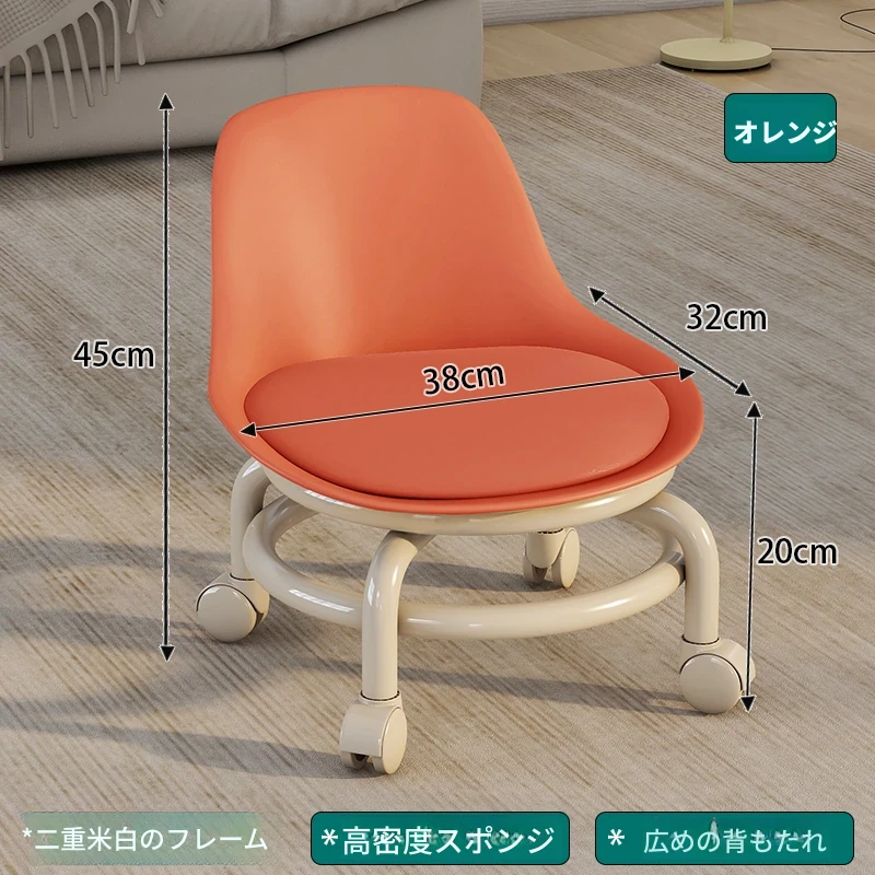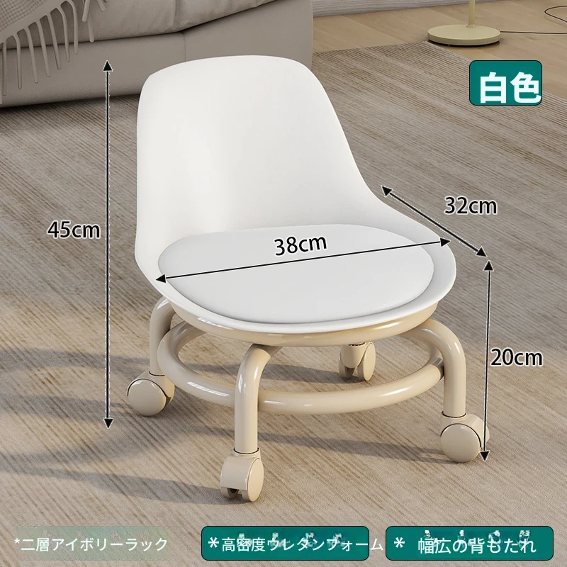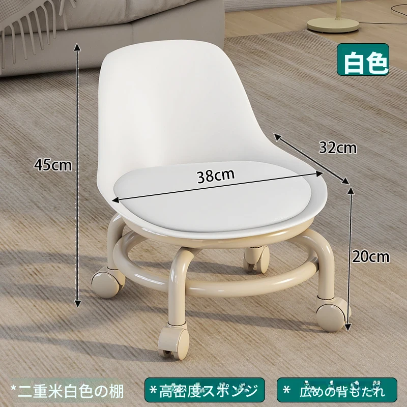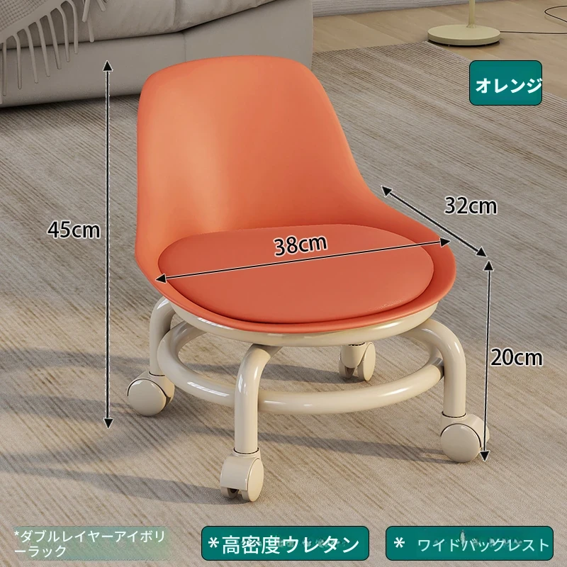 三夢スワivelローラー付きスツール - 家庭用・キャスター付き・丸型・子供用背もたれ付き・クッション交換用スツールで、快適な靴の履き替えをサポート!