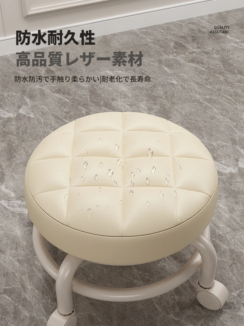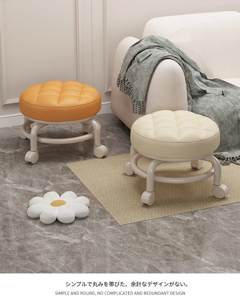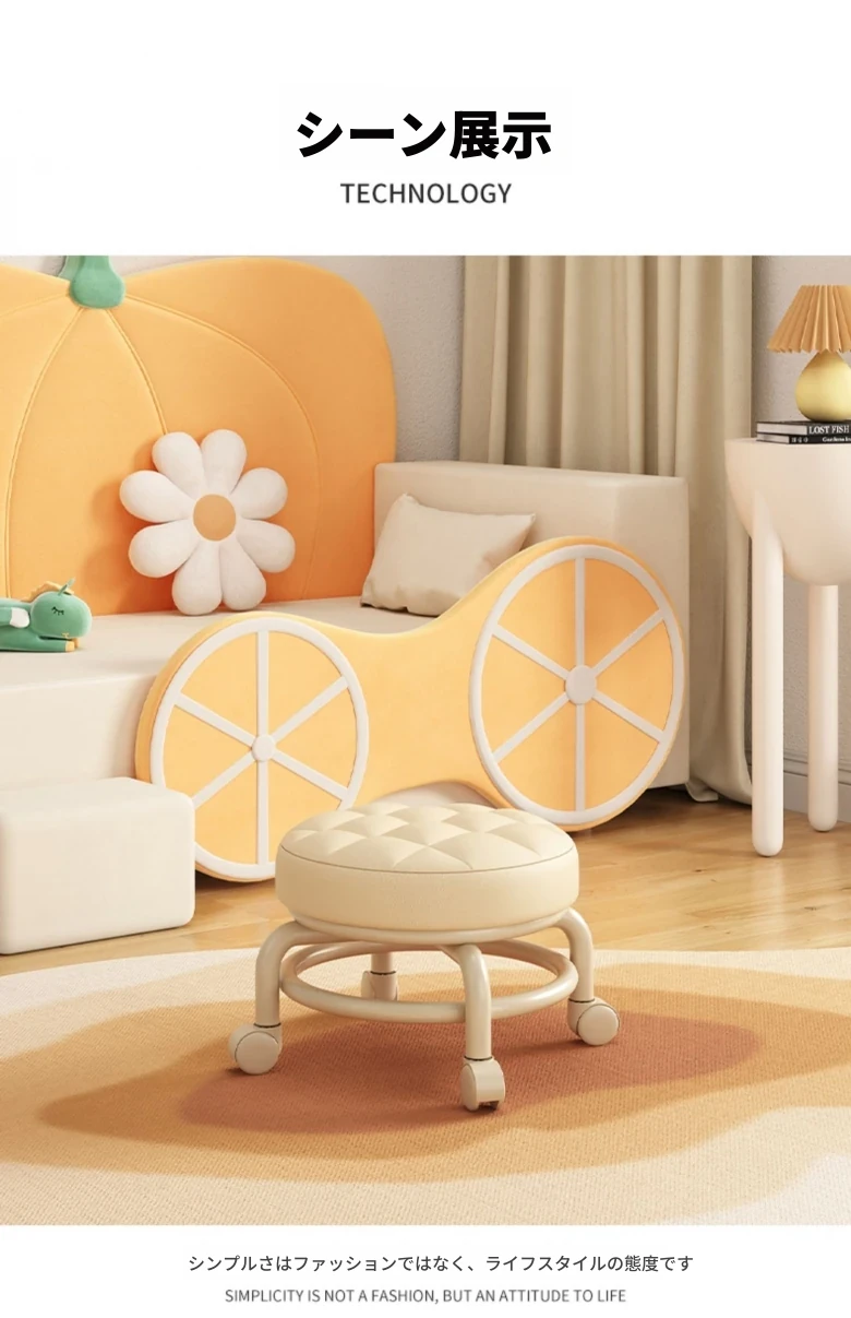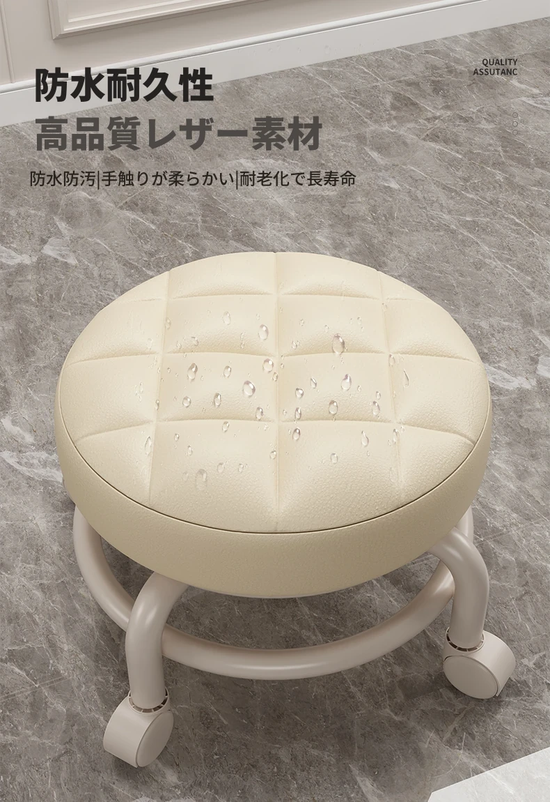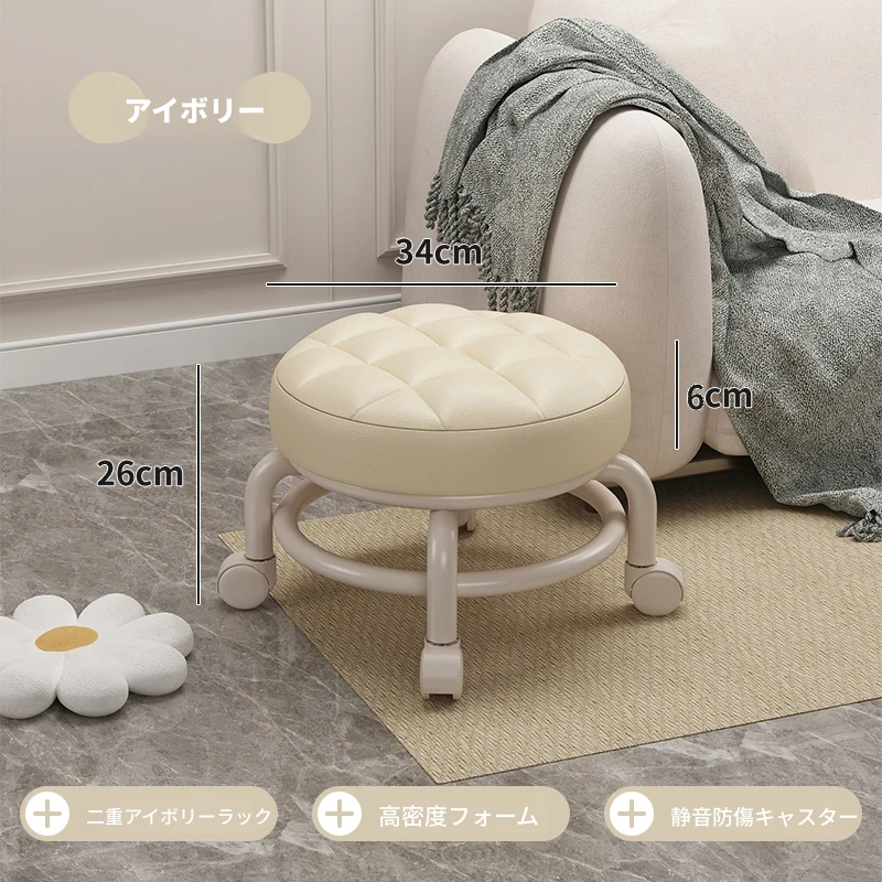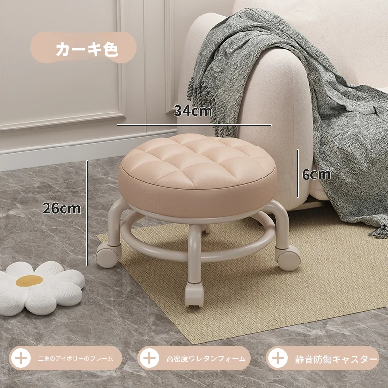 三夢スワivelローラー付きスツール - 家庭用・キャスター付き・丸型・子供用背もたれ付き・クッション交換用スツールで、快適な靴の履き替えをサポート!