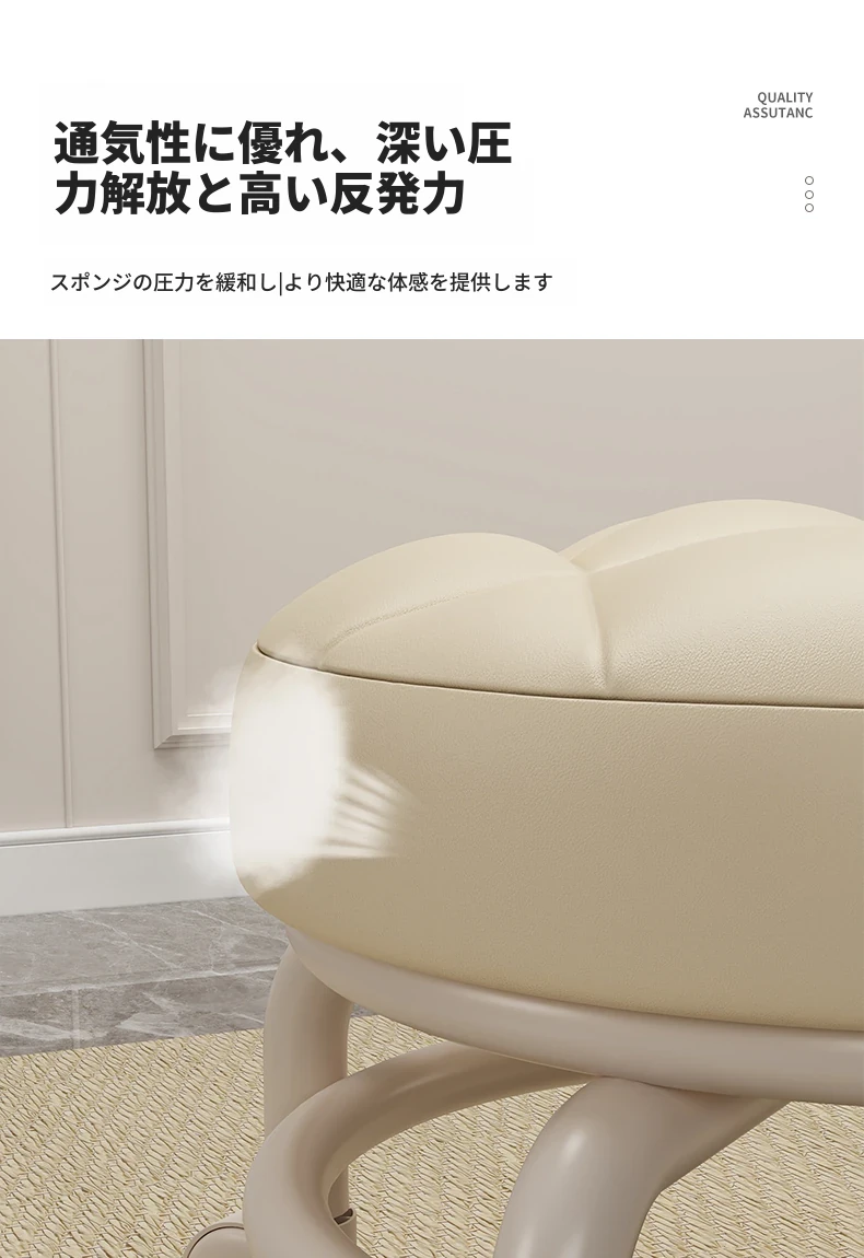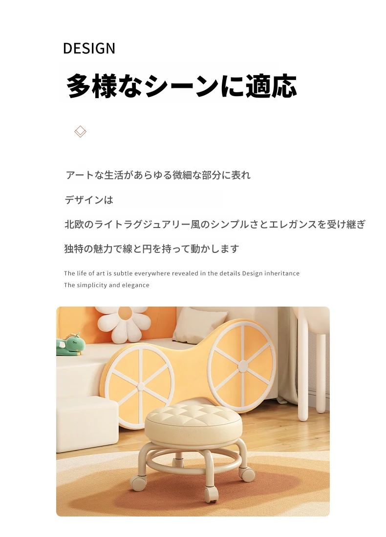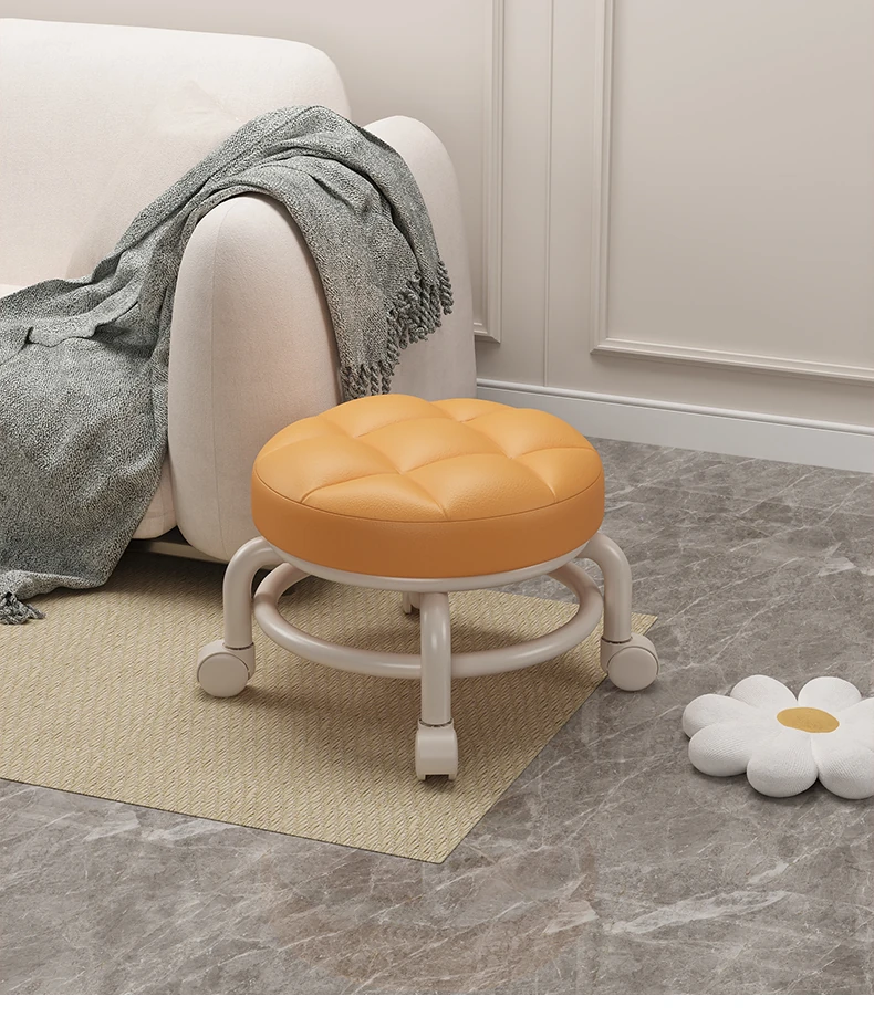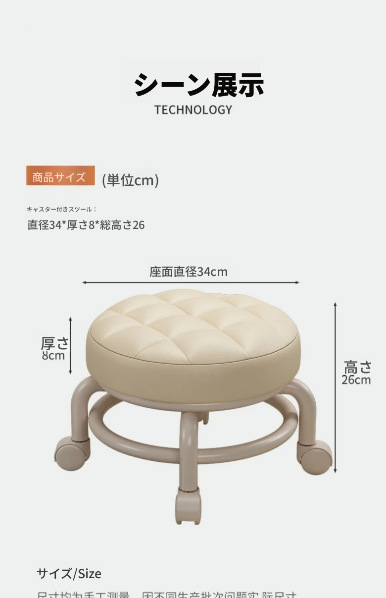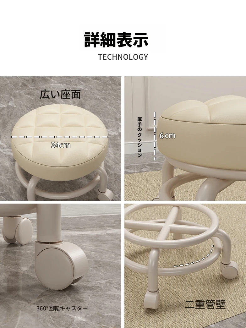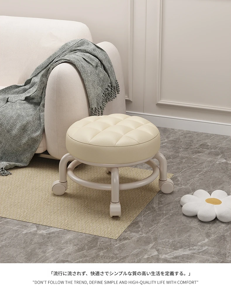 三夢スワivelローラー付きスツール - 家庭用・キャスター付き・丸型・子供用背もたれ付き・クッション交換用スツールで、快適な靴の履き替えをサポート!