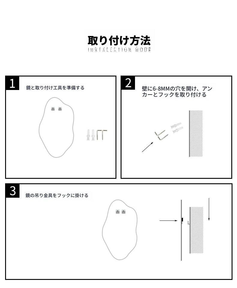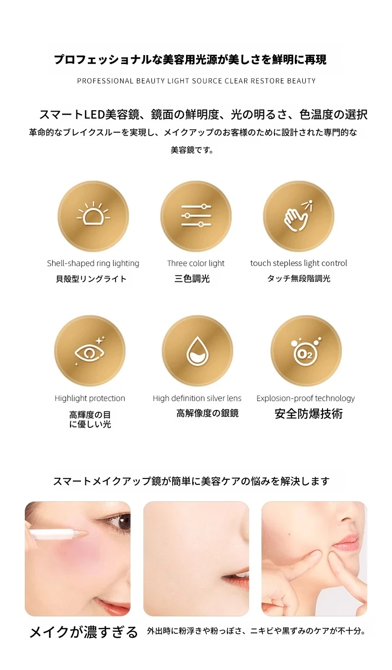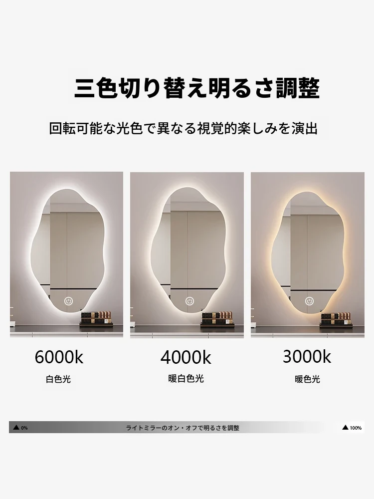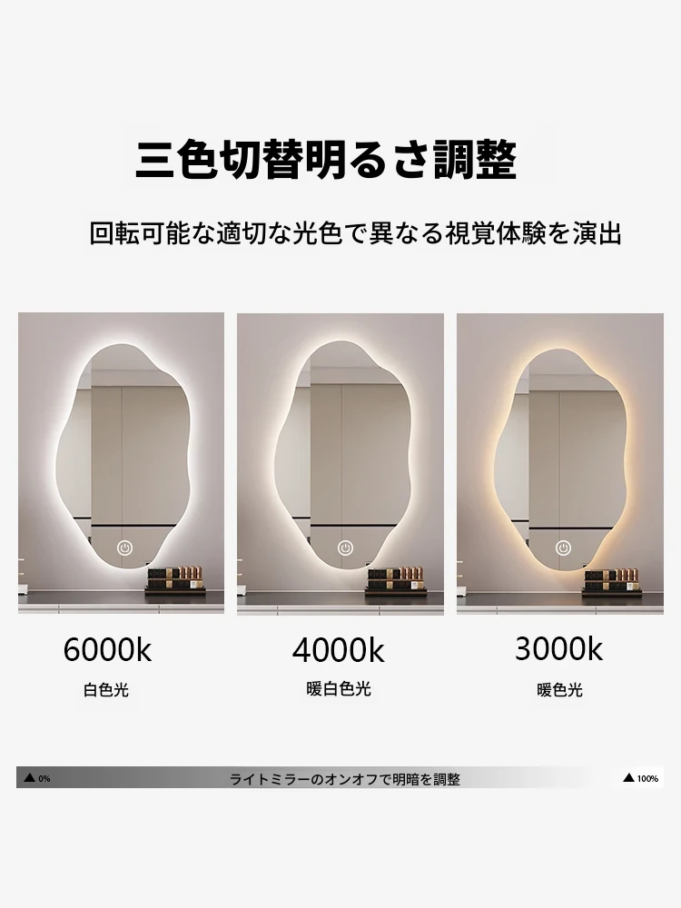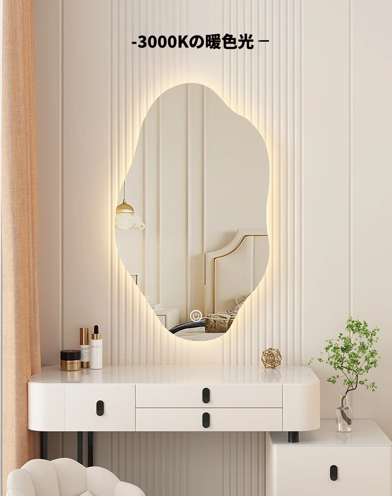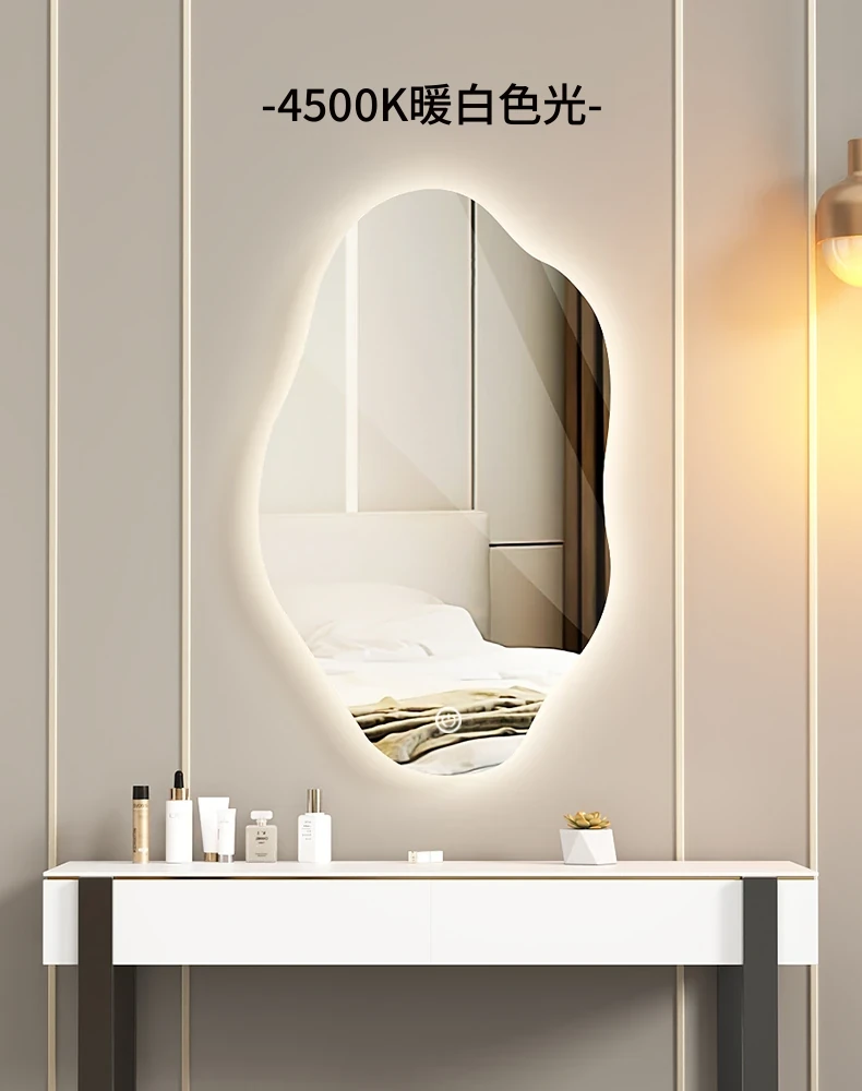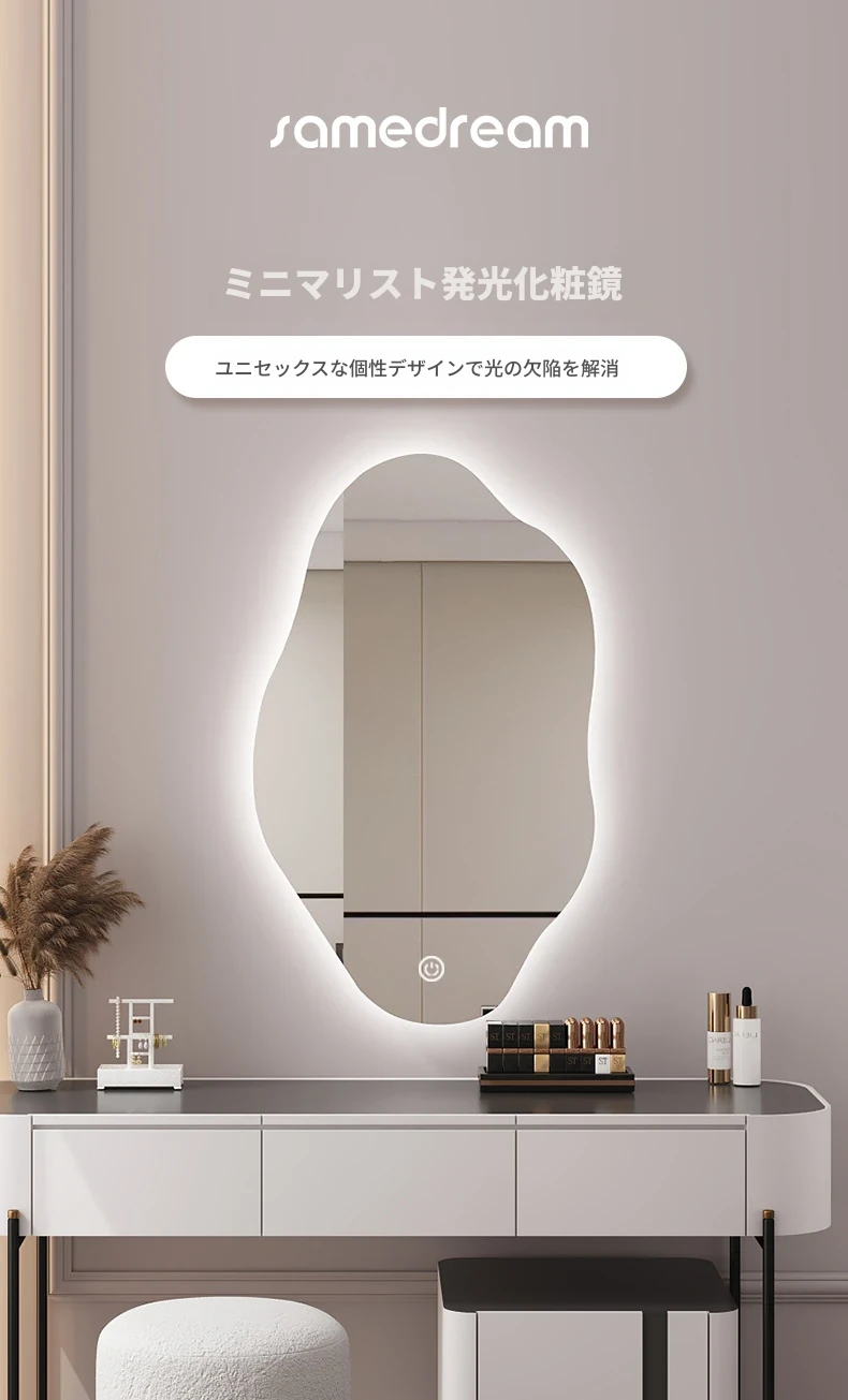 個性的LED化粧鏡!壁掛け式で寝室やドレッサーにぴったり。不規則なデザインと明るい照明で、あなたの美しさを引き立てます。おしゃれな空間を演出し、毎日のメイクアップを楽しく!