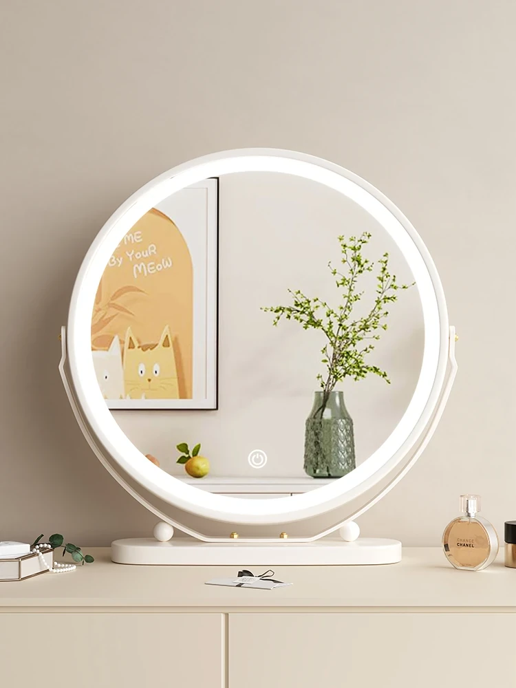卓越なデザインのデスクトップLEDライト付き化粧鏡!インフルエンサーも愛用する、モダンでシンプルなスタイル。主寝室にぴったりな、明るさ調整機能で美しさを引き立てるアイテムです。